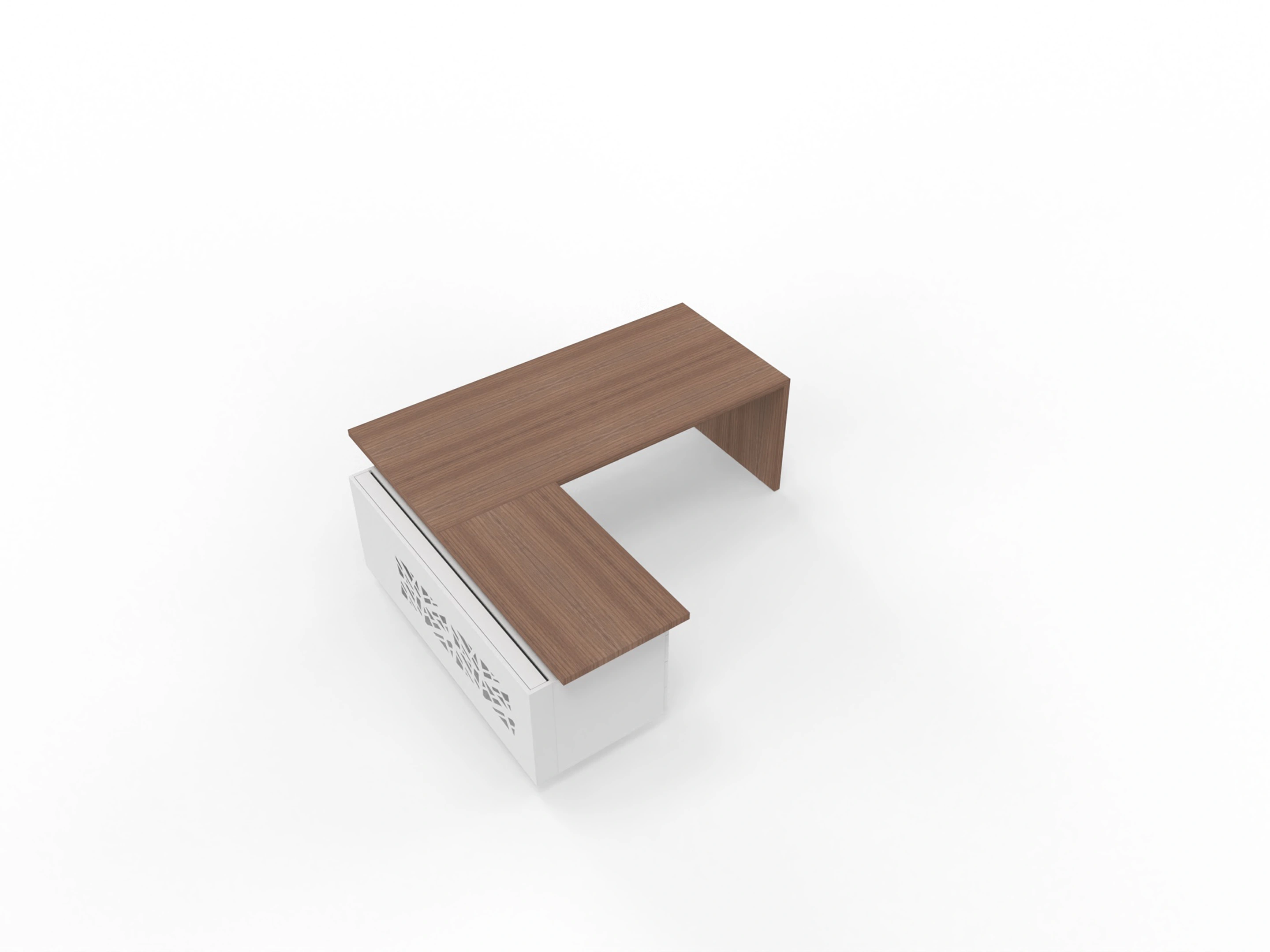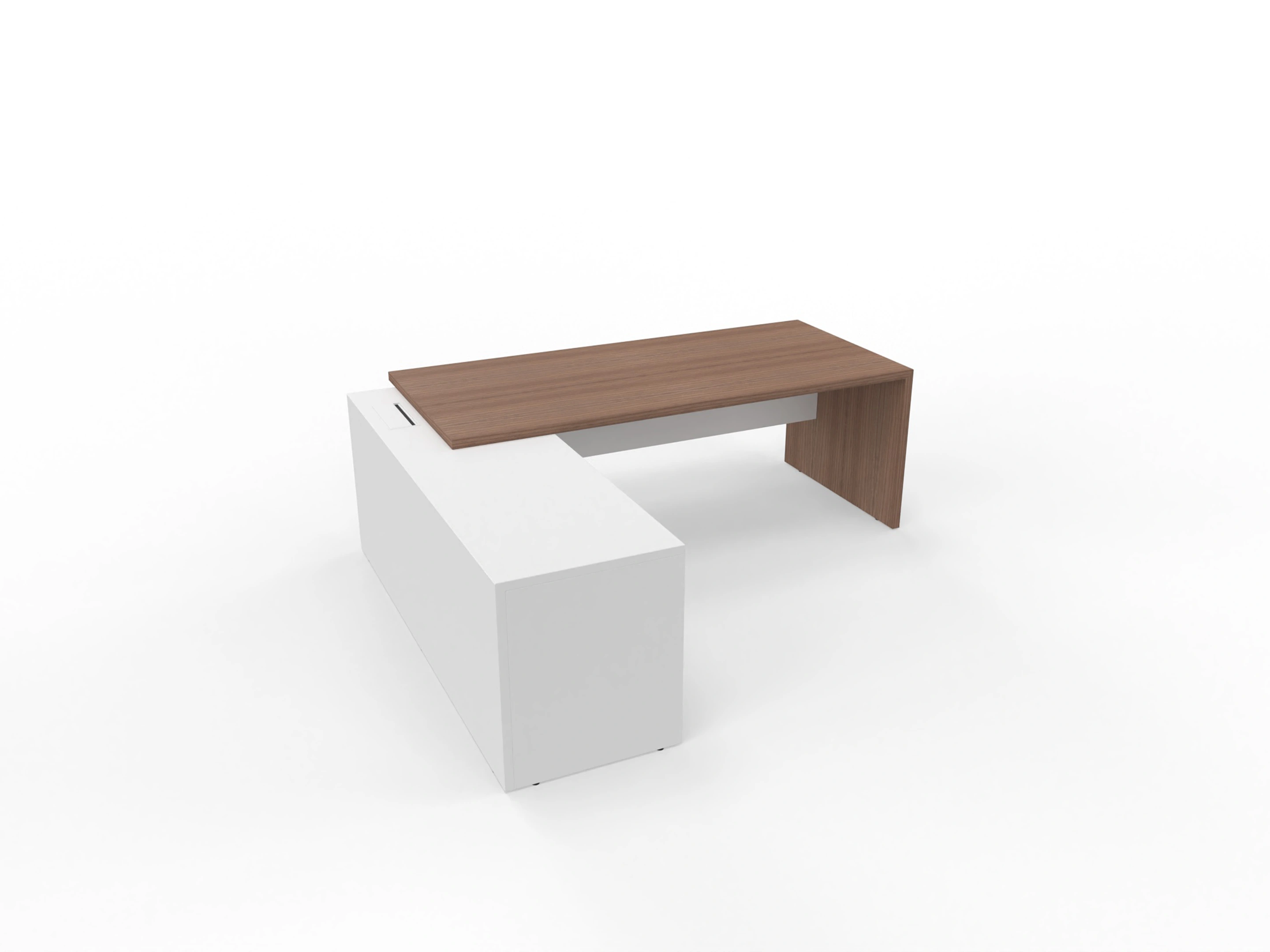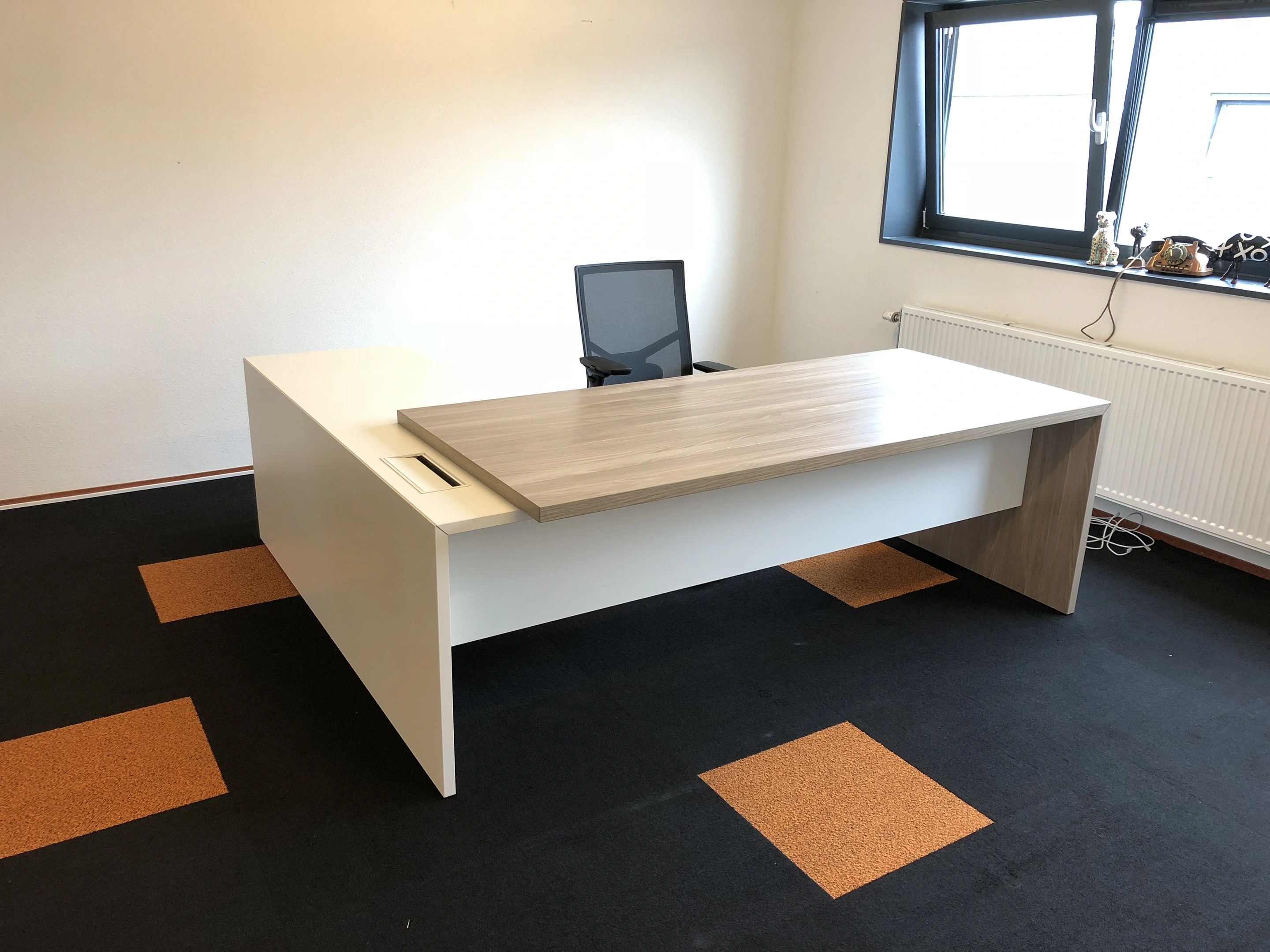 T45 directiebureau - Met hoekladenblok (rechts), 212cm, sier achterwand