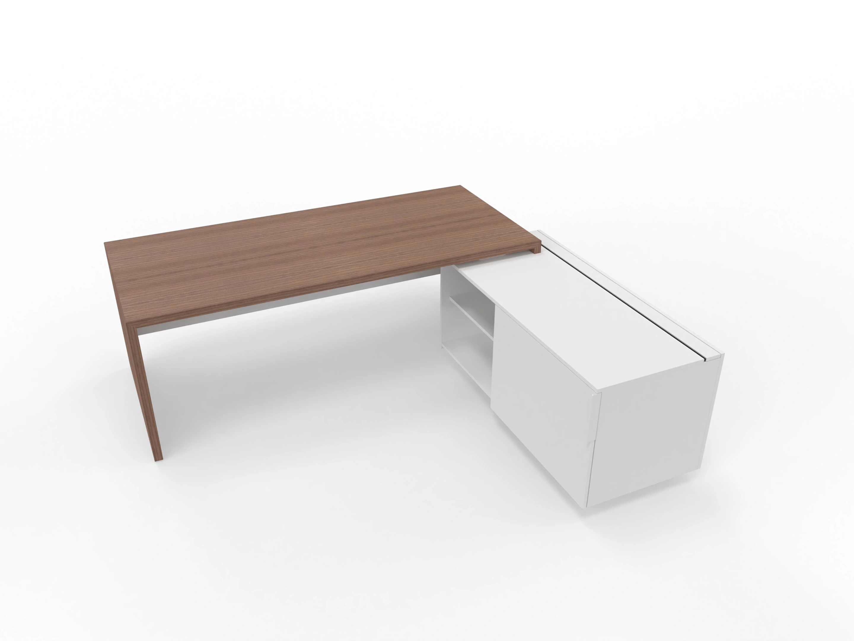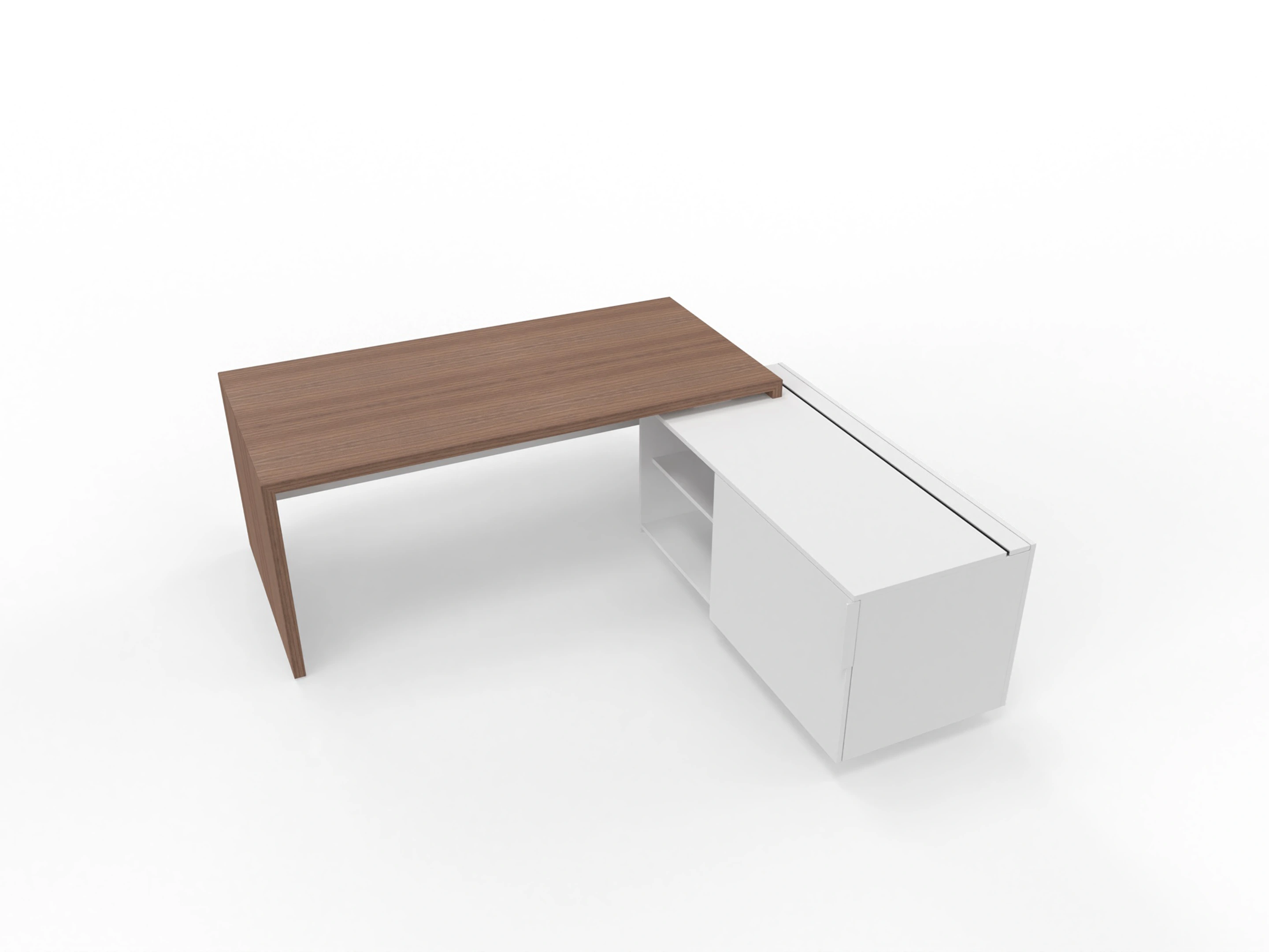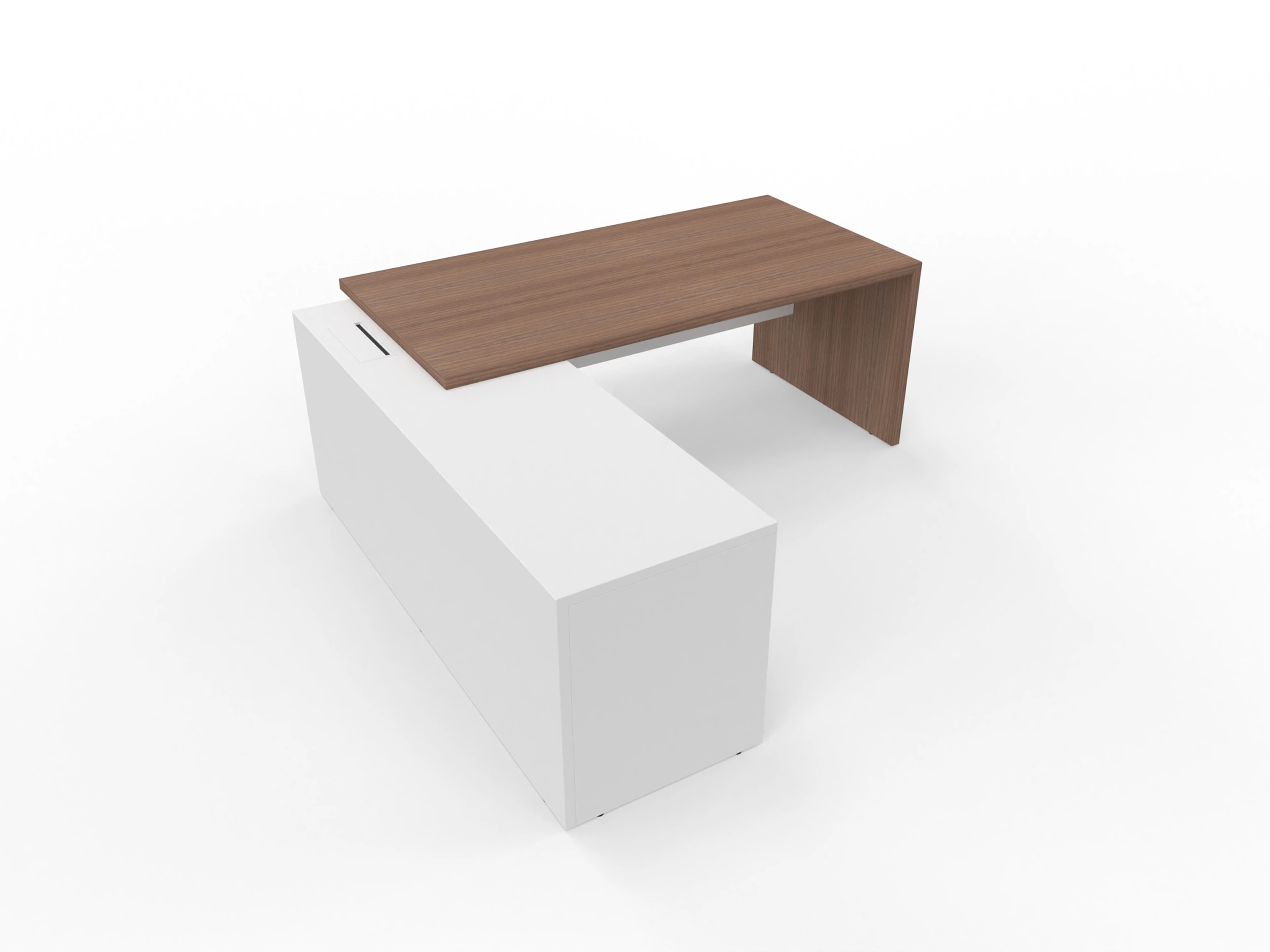 T45 directiebureau - Met hoekladenblok (links), 192cm, sier achterwand