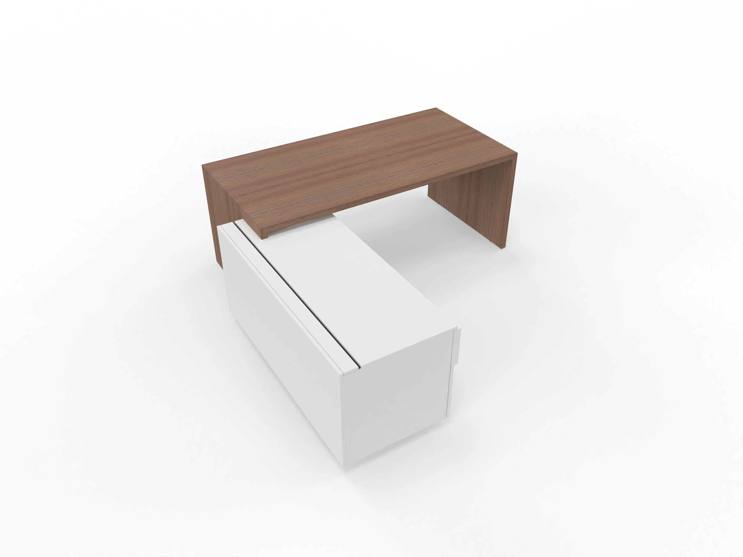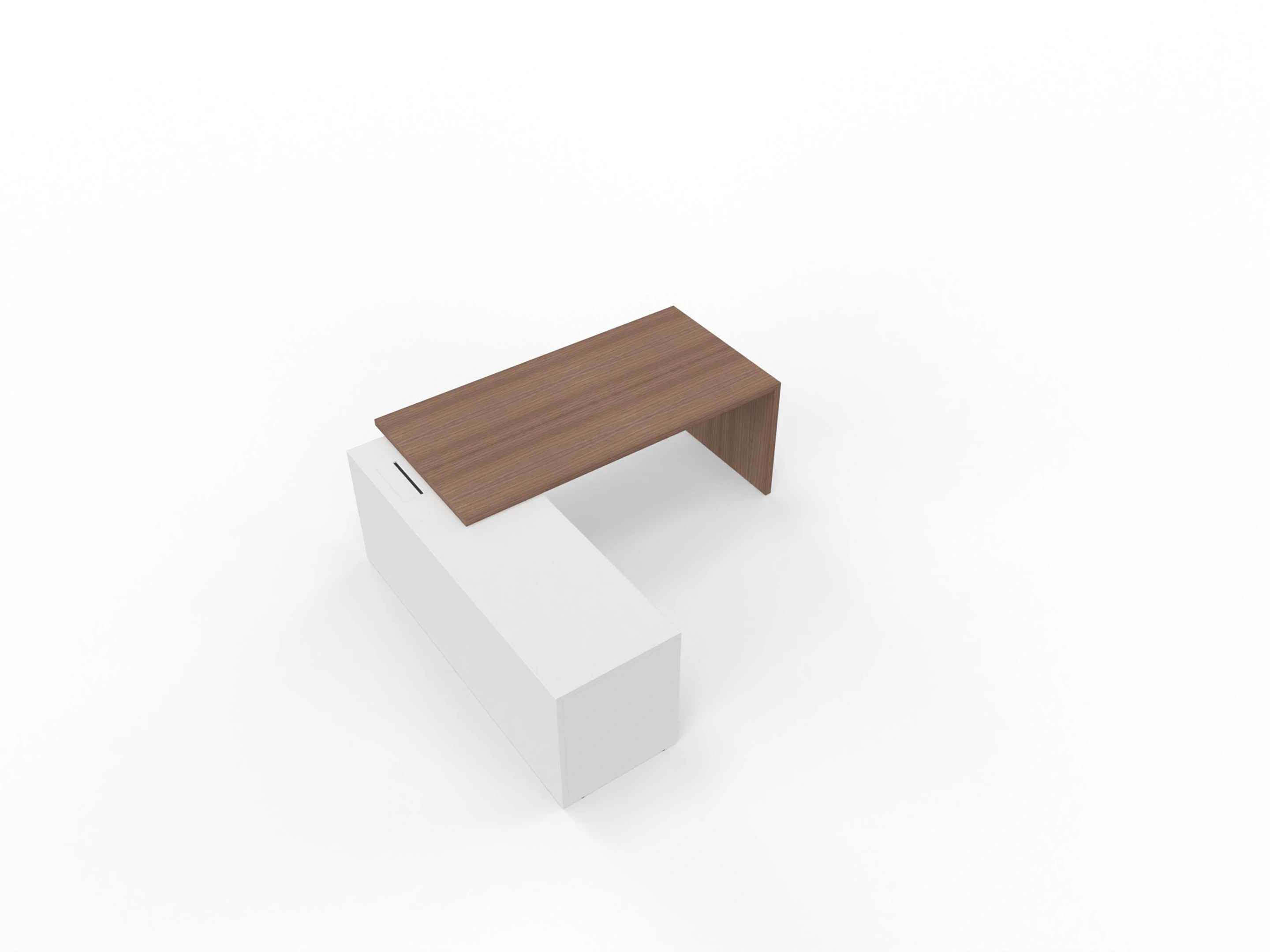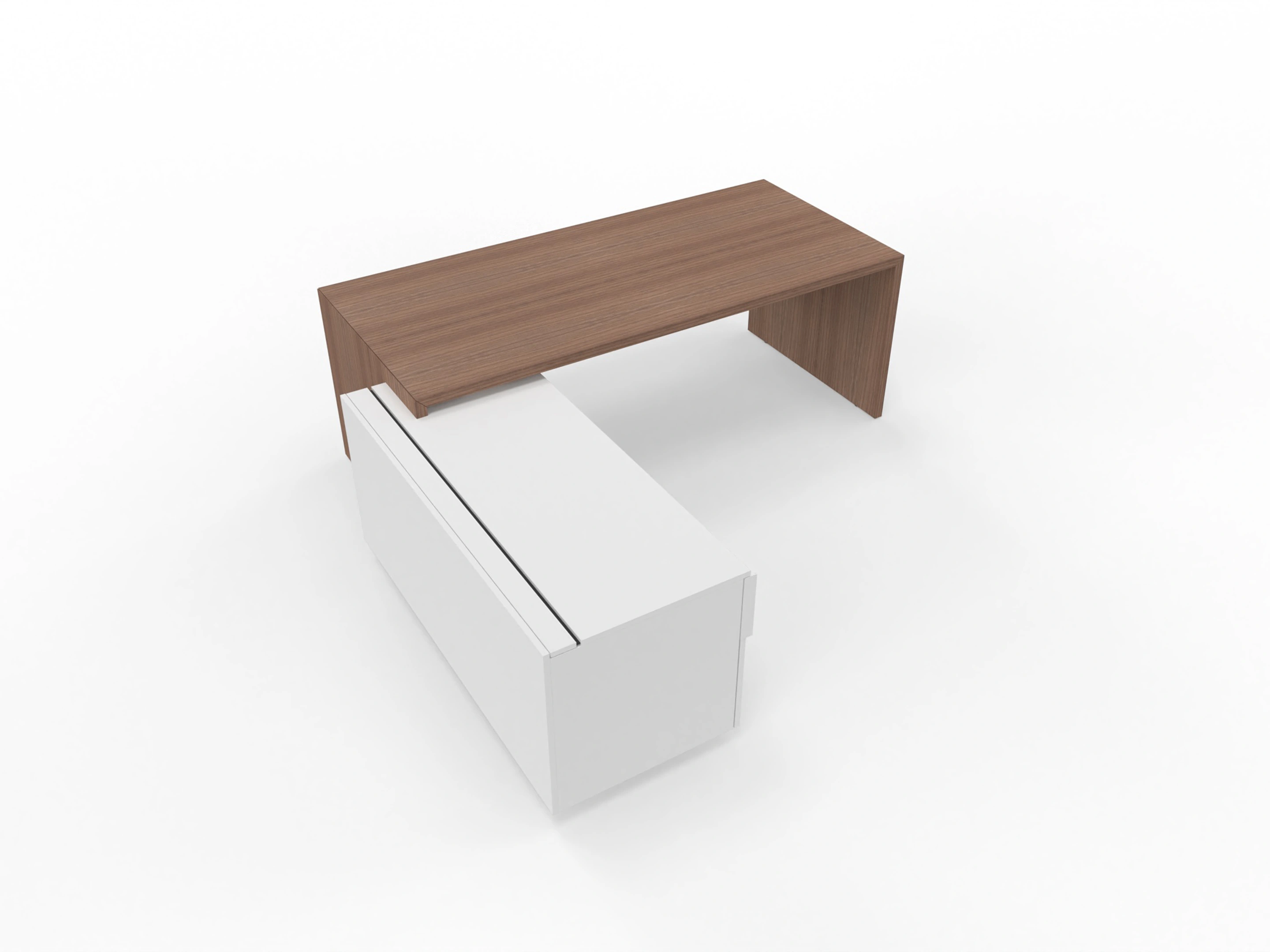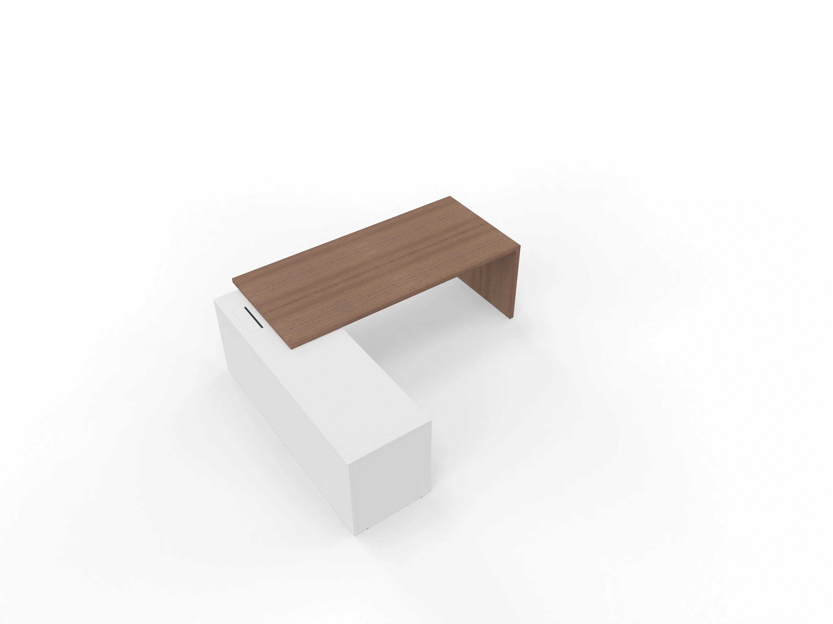 T45 directiebureau - Met hoekladenblok (links), 192cm, sier achterwand