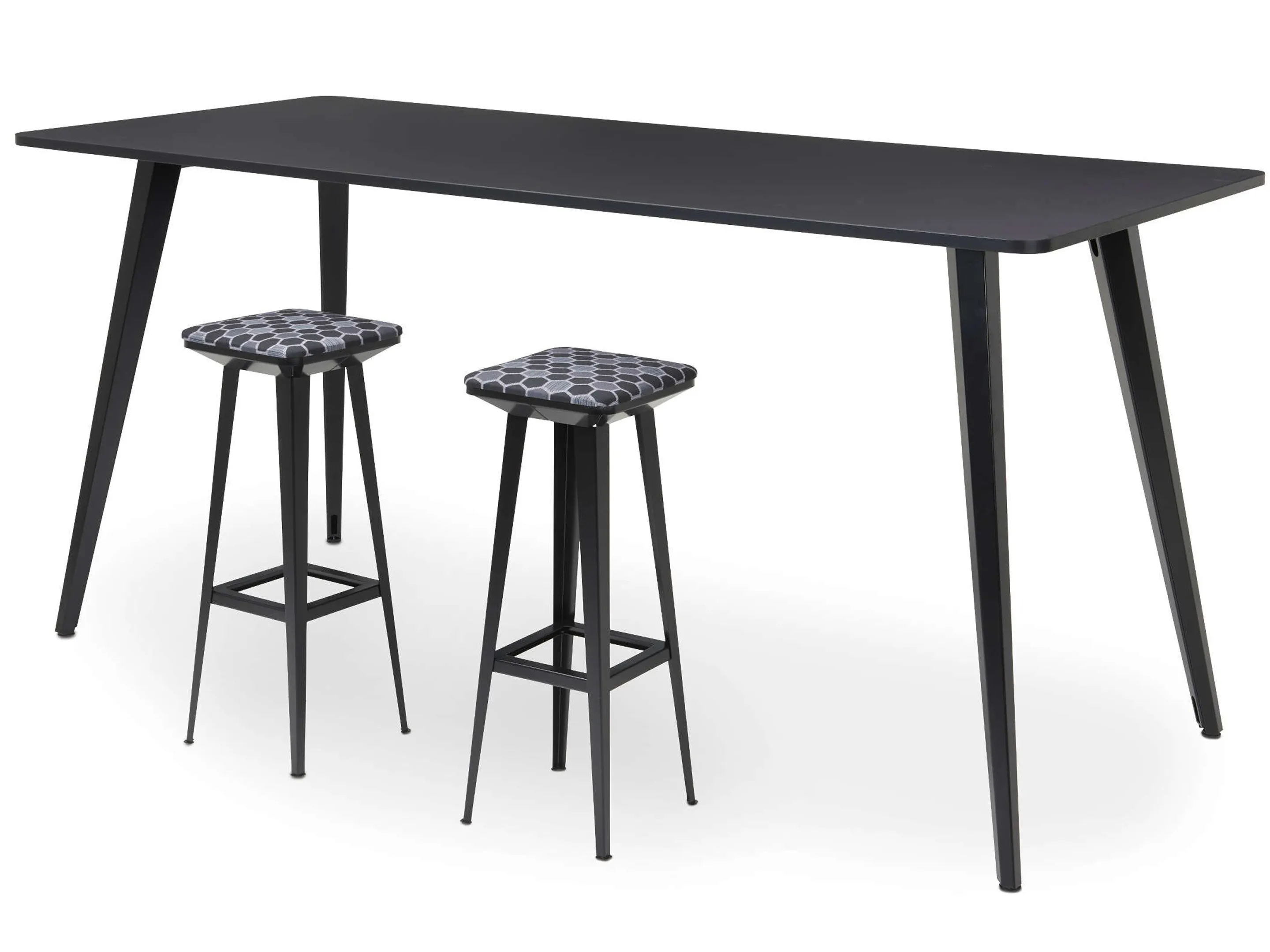 Bartafel met 4 schuine poten met kabelvoorziening en een rechthoekig blad. Afmeting: 1800 x 900 x 1100mm (BxHxD)