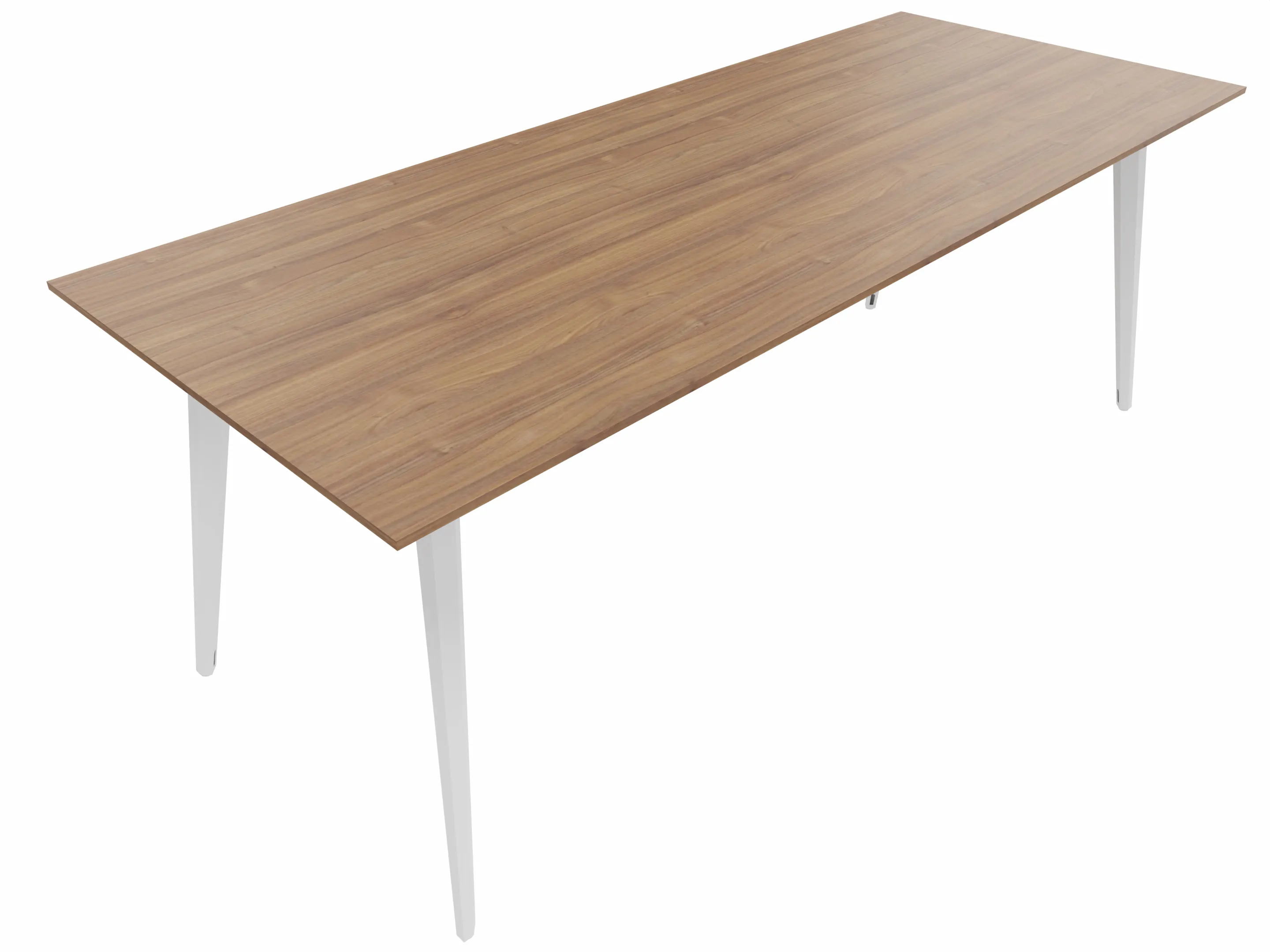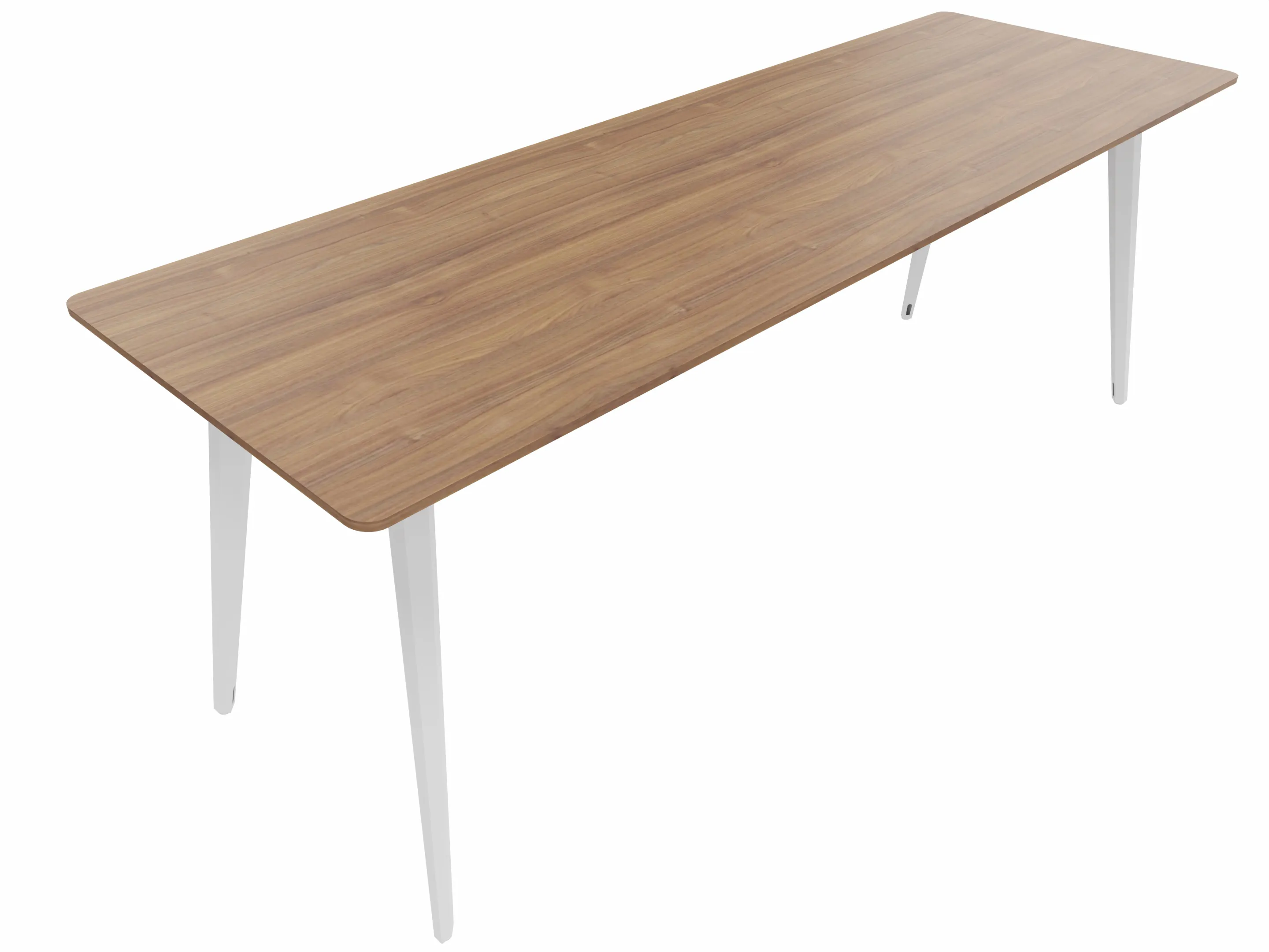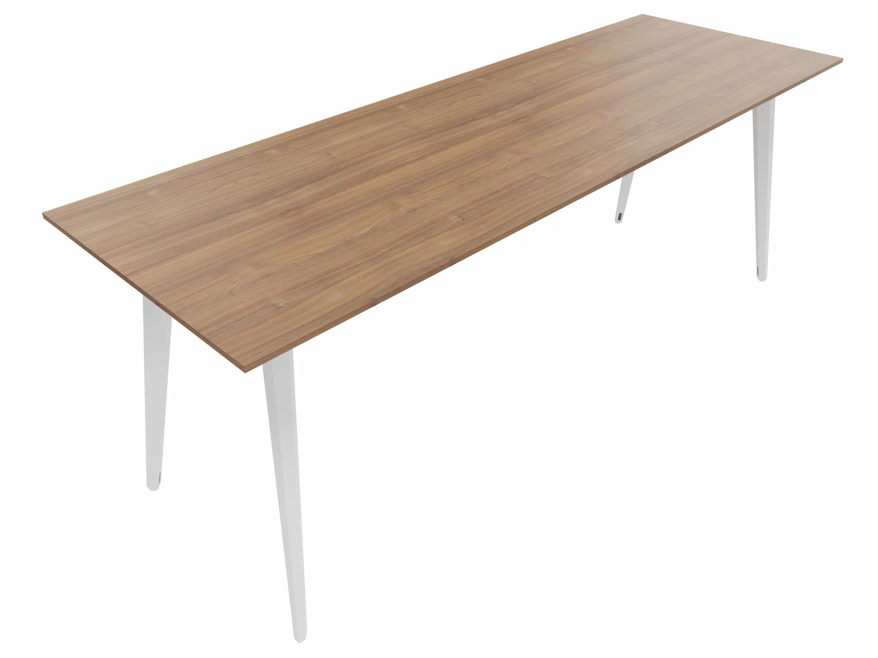 Bartafel met 4 schuine poten met kabelvoorziening en een rechthoekig blad. Afmeting: 2400 x 1000 x 1100mm (BxHxD)