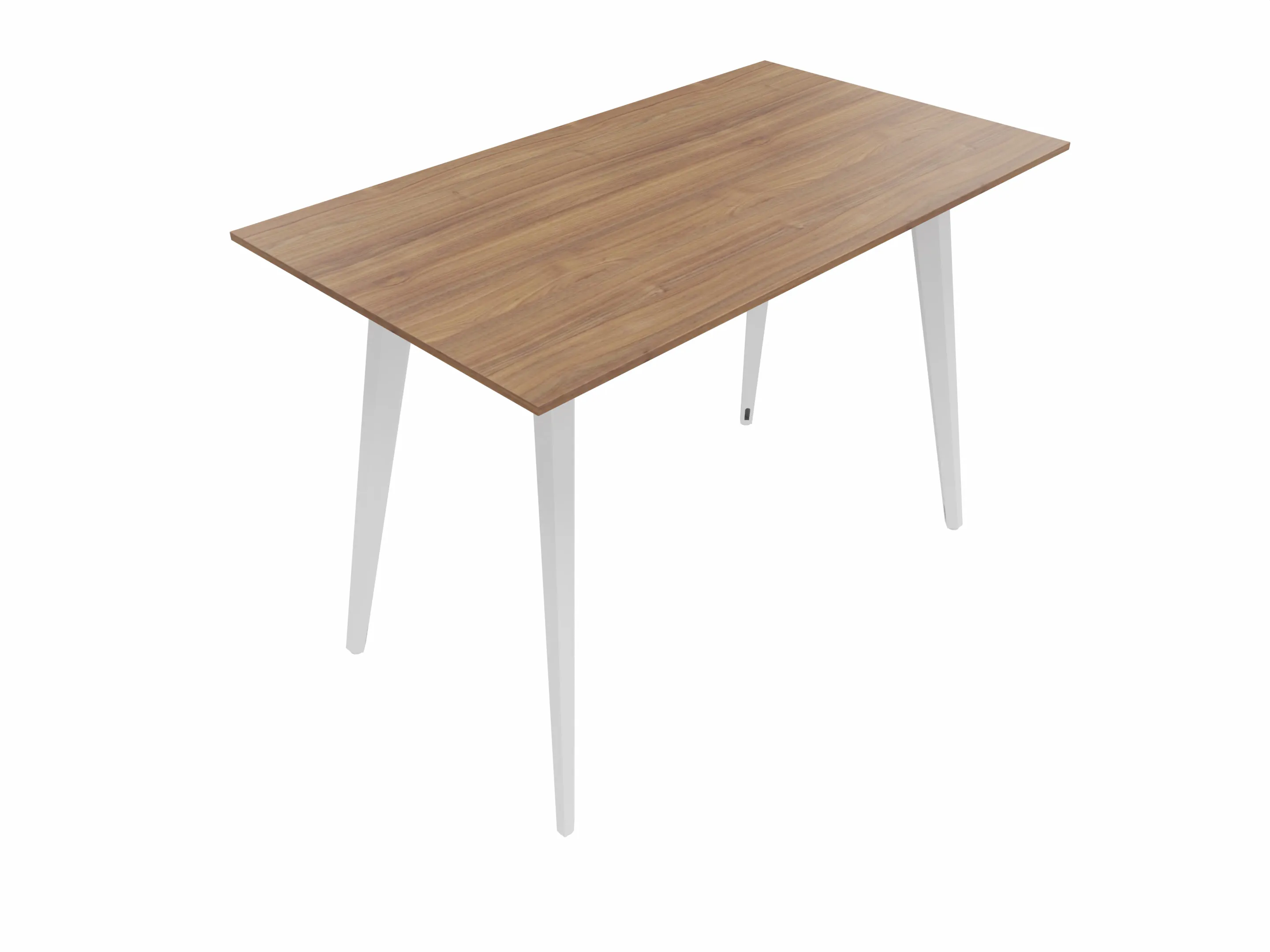 Bartafel met 4 schuine poten met kabelvoorziening en een rechthoekig blad. Afmeting: 1400 x 900 x 1100mm (BxHxD)
