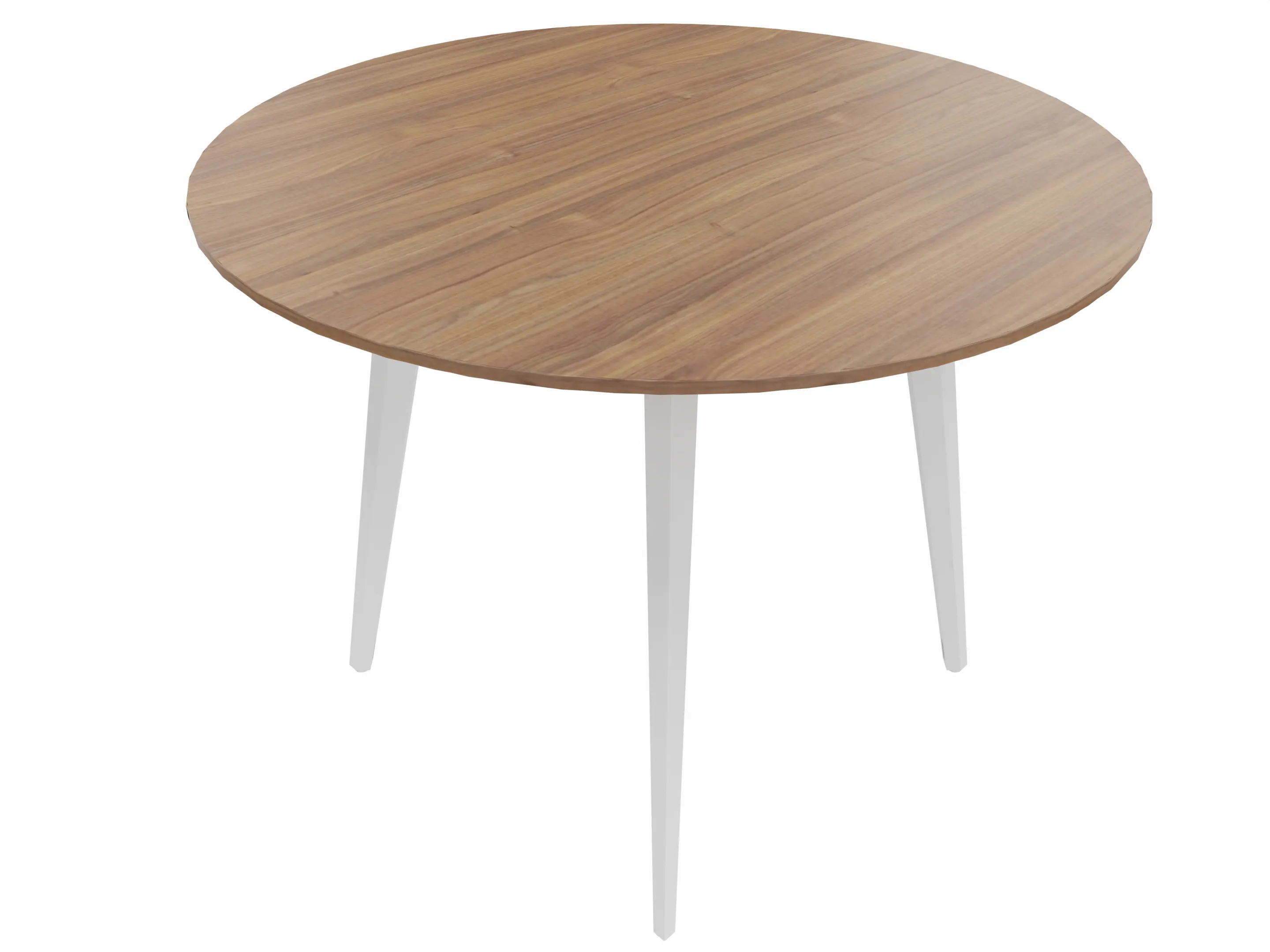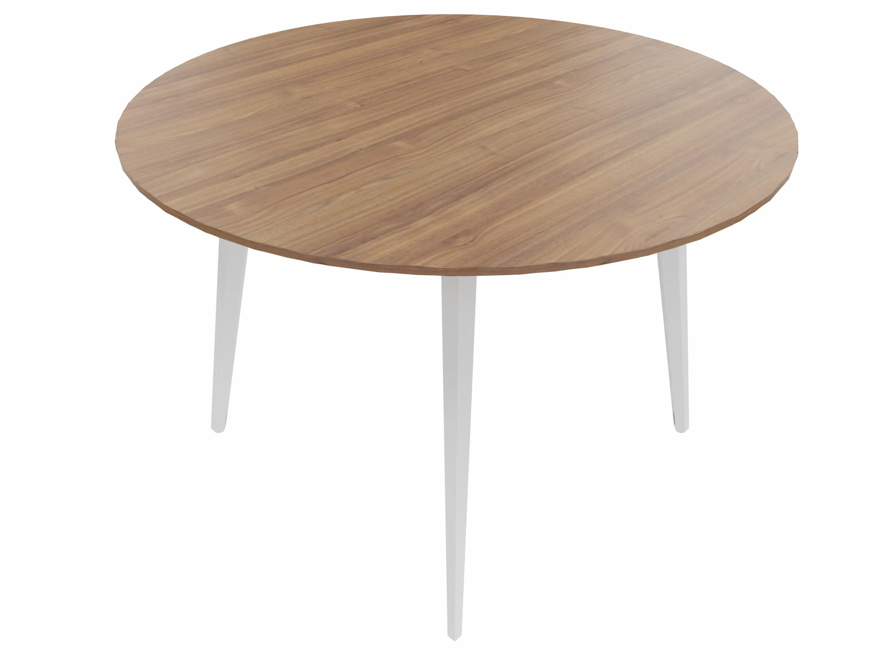Bartafel met 4 schuine poten met kabelvoorziening en een rond blad. Afmeting: 1200 x 1200 x 1100mm (BxHxD)