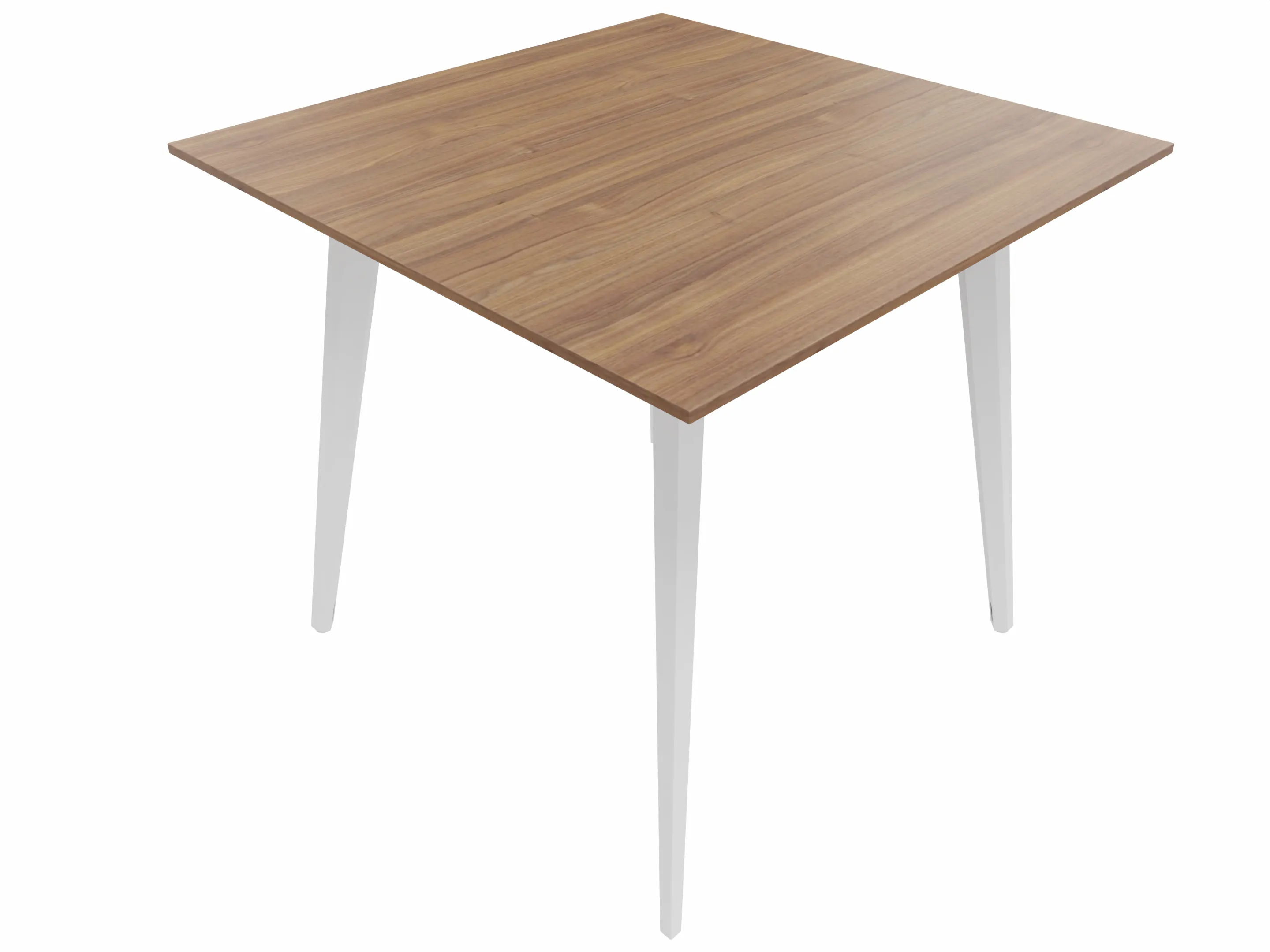 Bartafel met 4 schuine poten met kabelvoorziening en een vierkant blad. Afmeting: 1600 x 1600 x 1100mm (BxHxD)