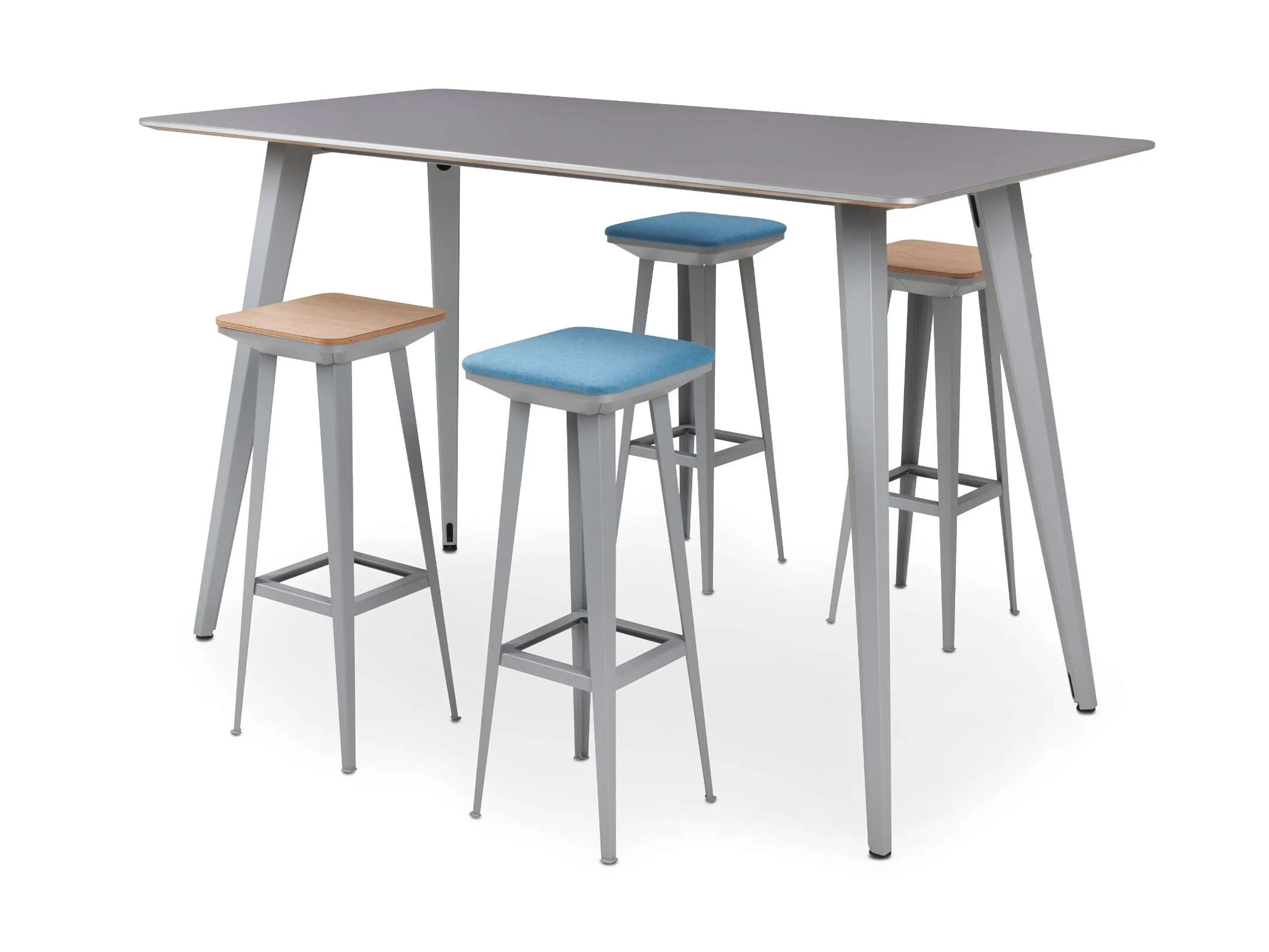 Bartafel met 4 schuine poten met kabelvoorziening en een rechthoekig blad. Afmeting: 1600 x 1000 x 1100mm (BxHxD)