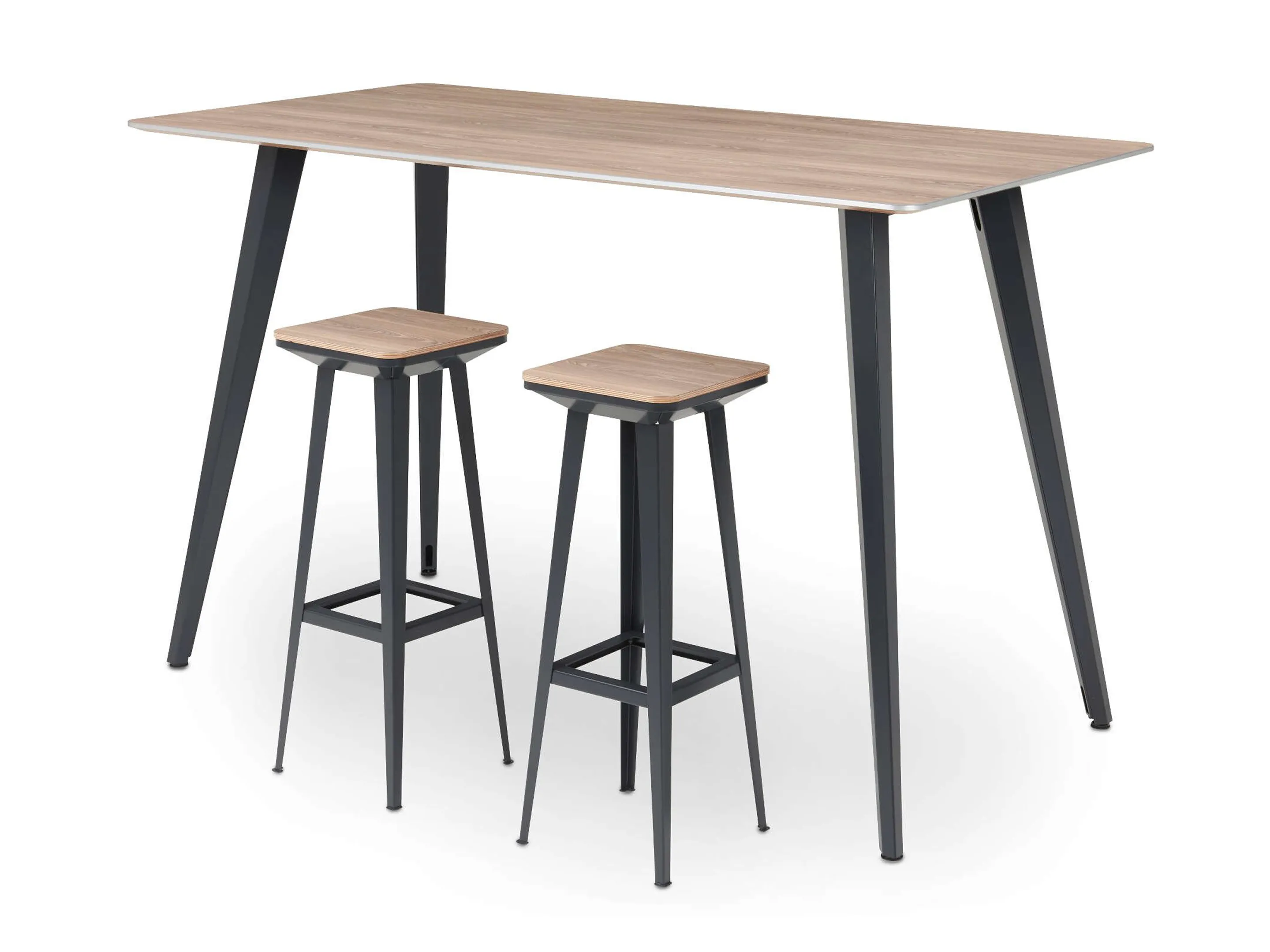 Bartafel met 4 schuine poten met kabelvoorziening en een rechthoekig blad. Afmeting: 1400 x 800 x 1100mm (BxHxD)