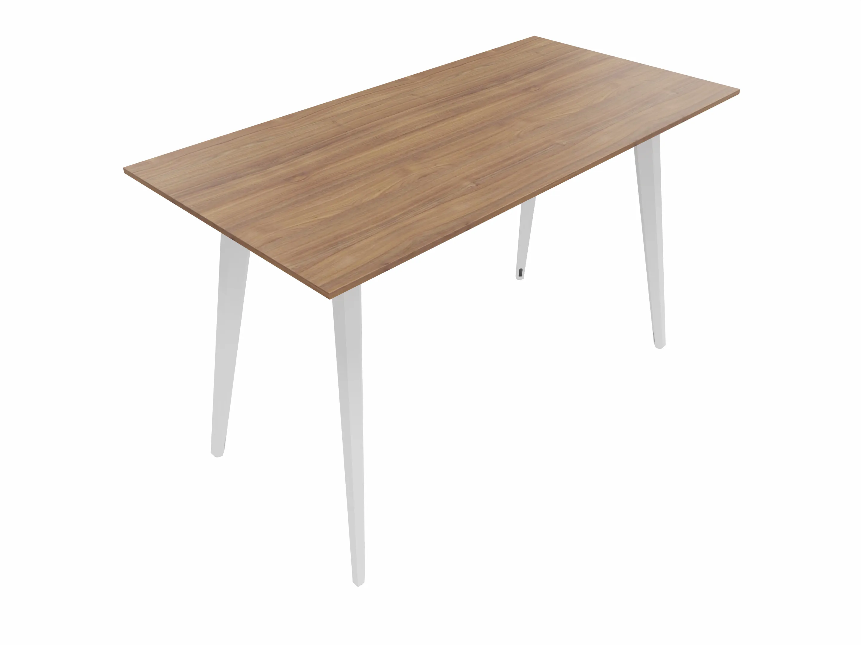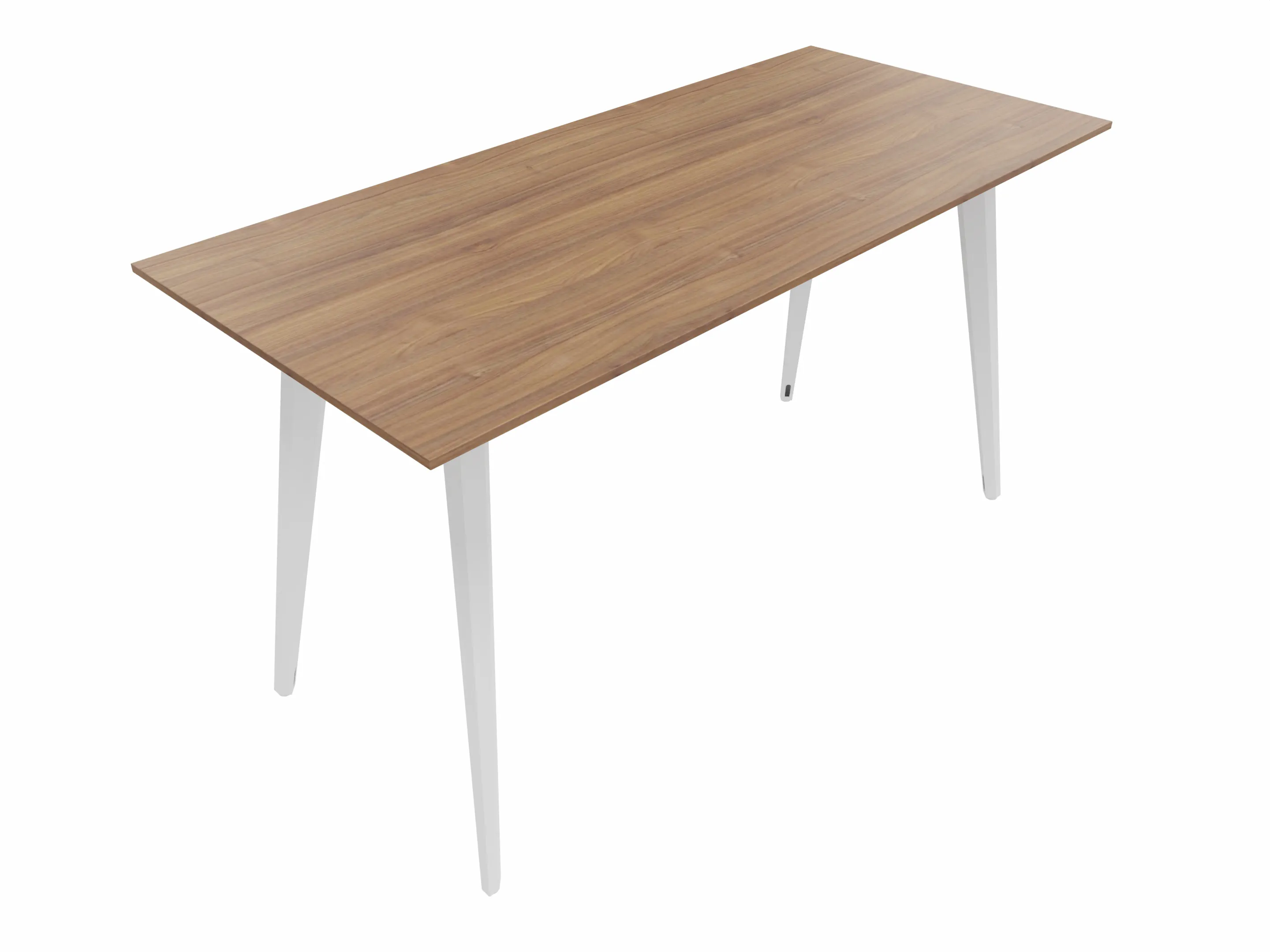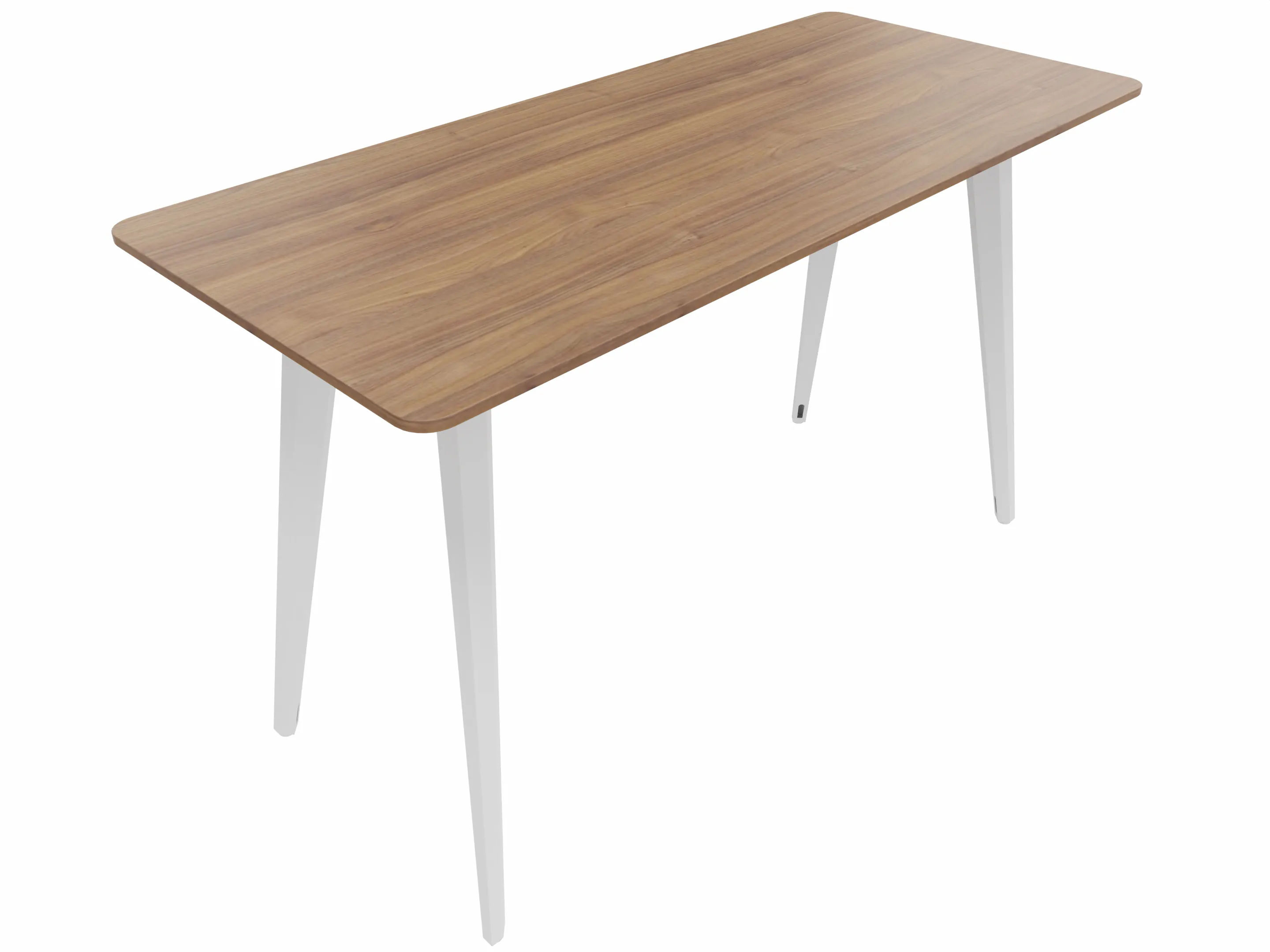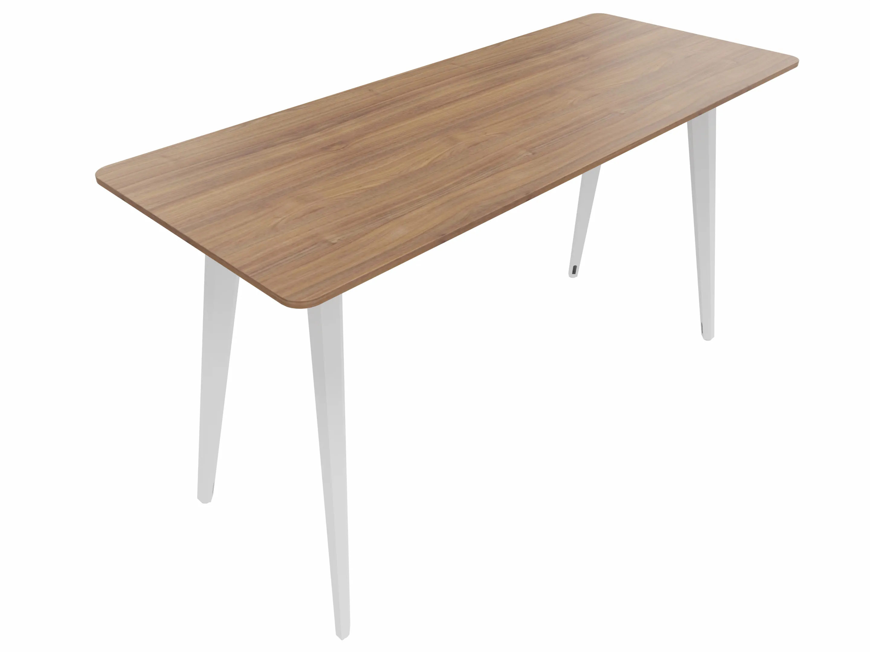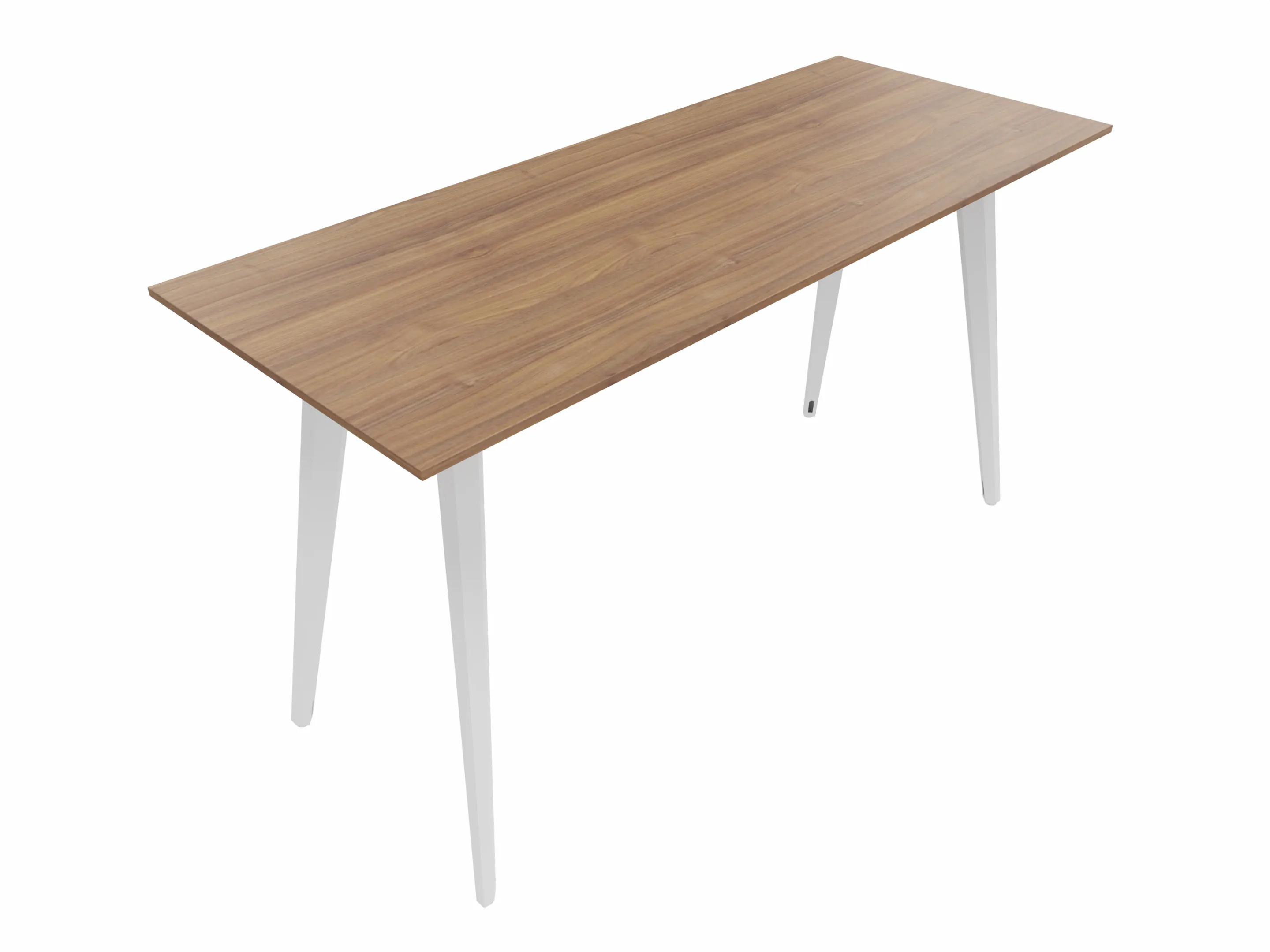 Bartafel met 4 schuine poten met kabelvoorziening en een rechthoekig blad. Afmeting: 1600 x 900 x 1100mm (BxHxD)