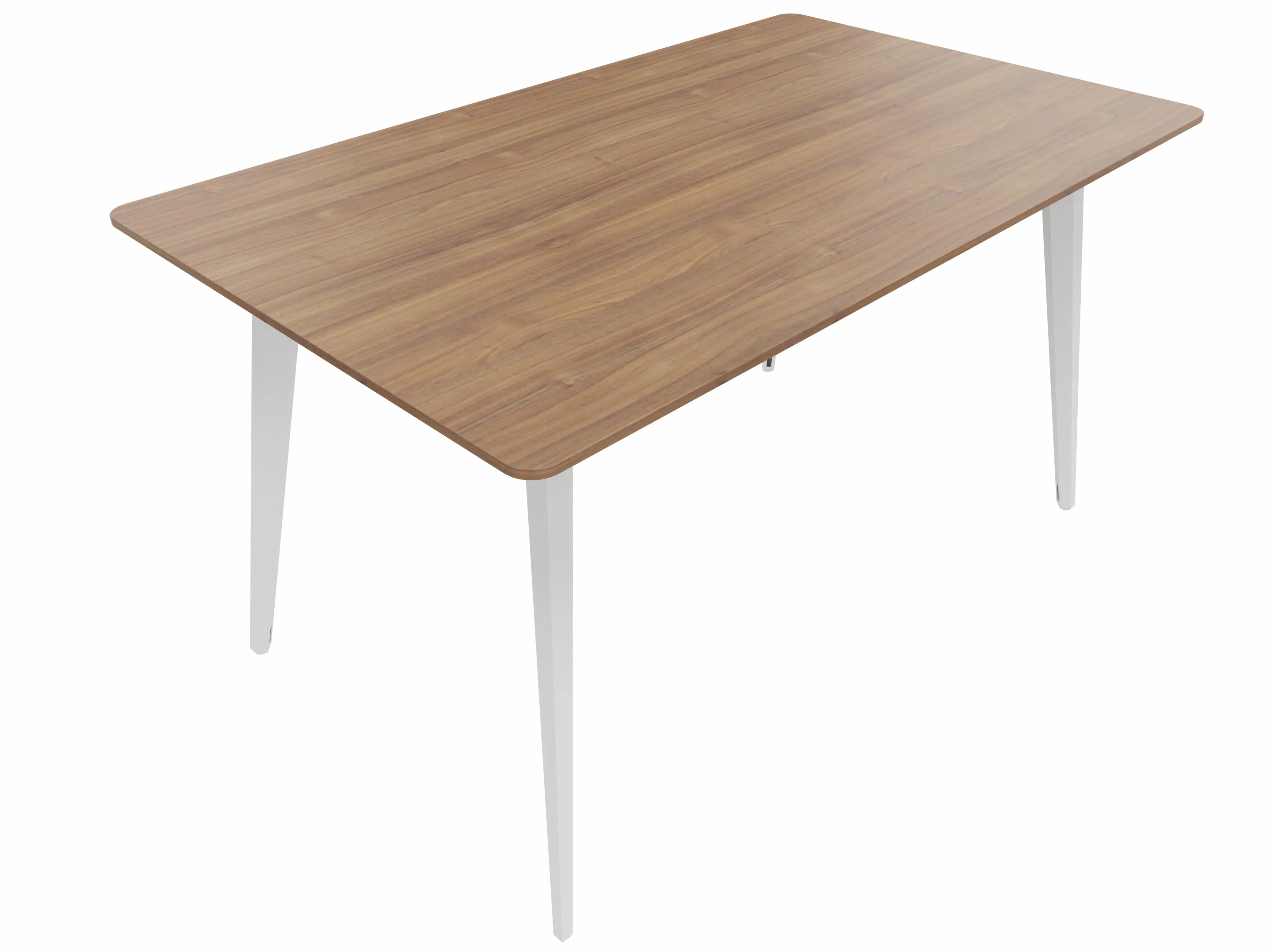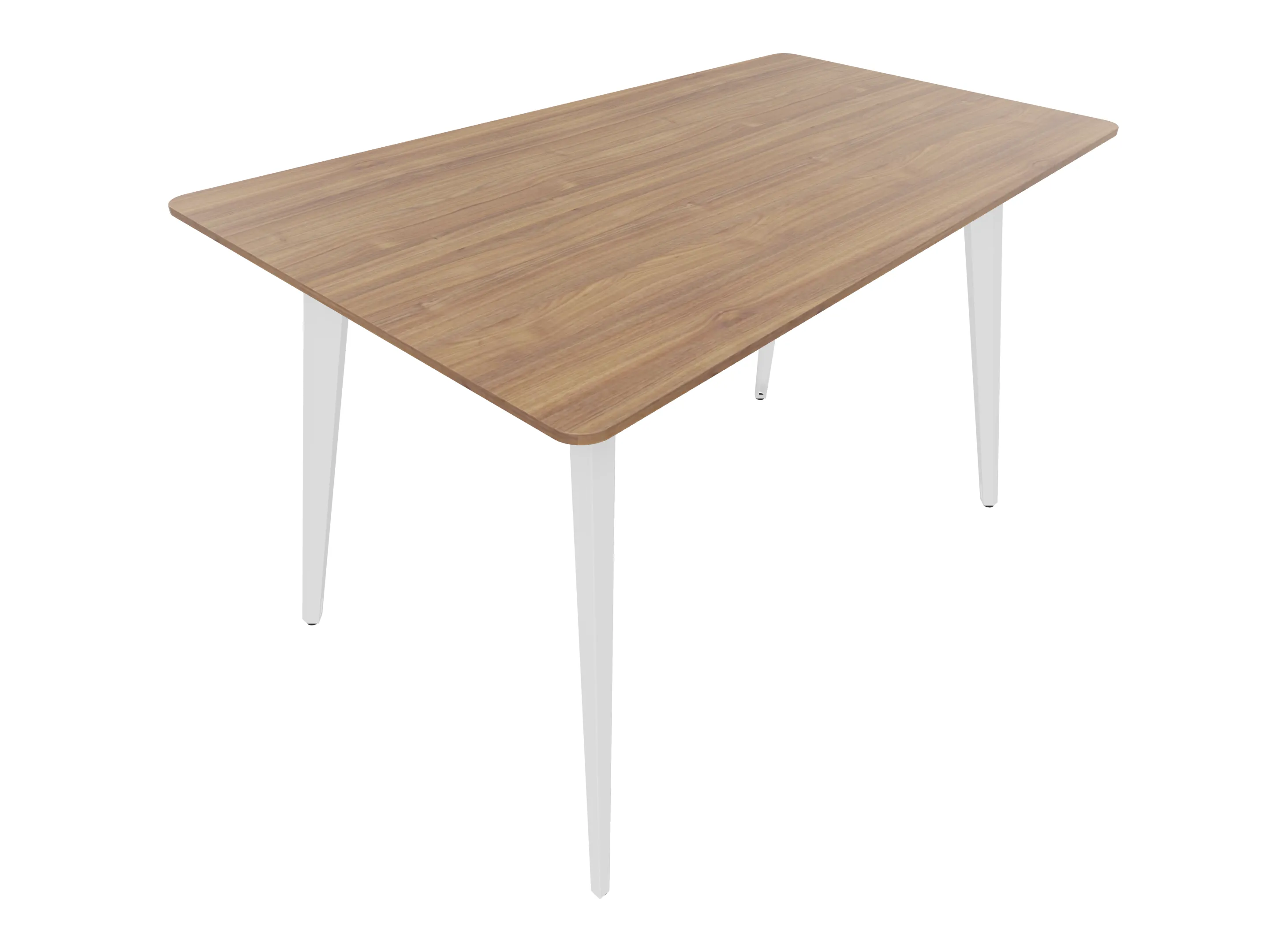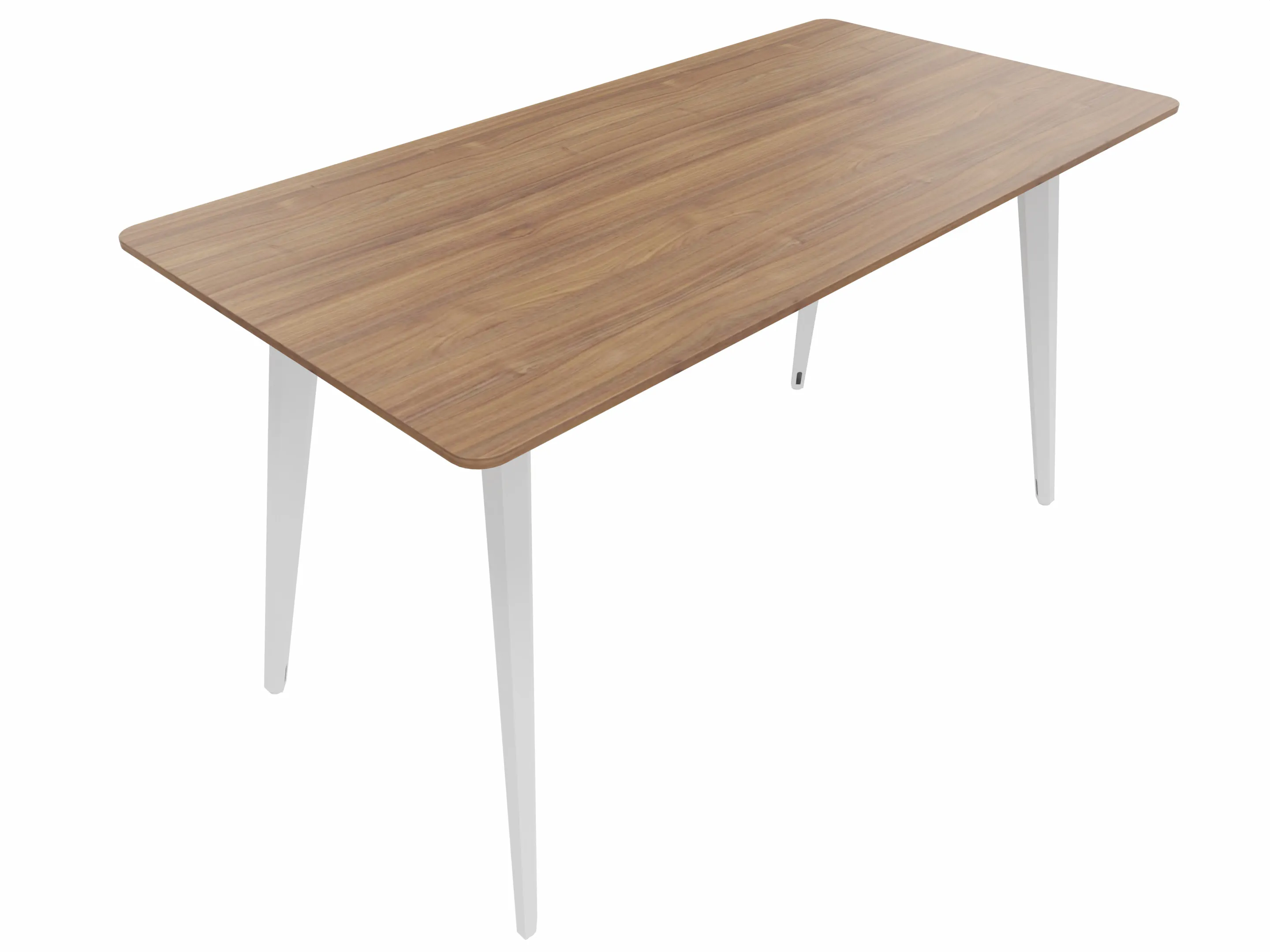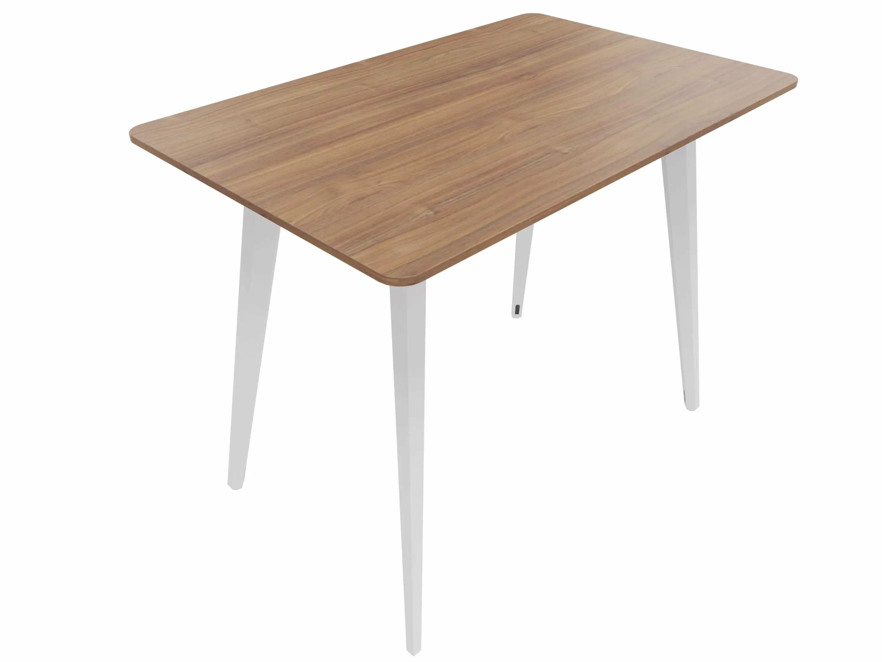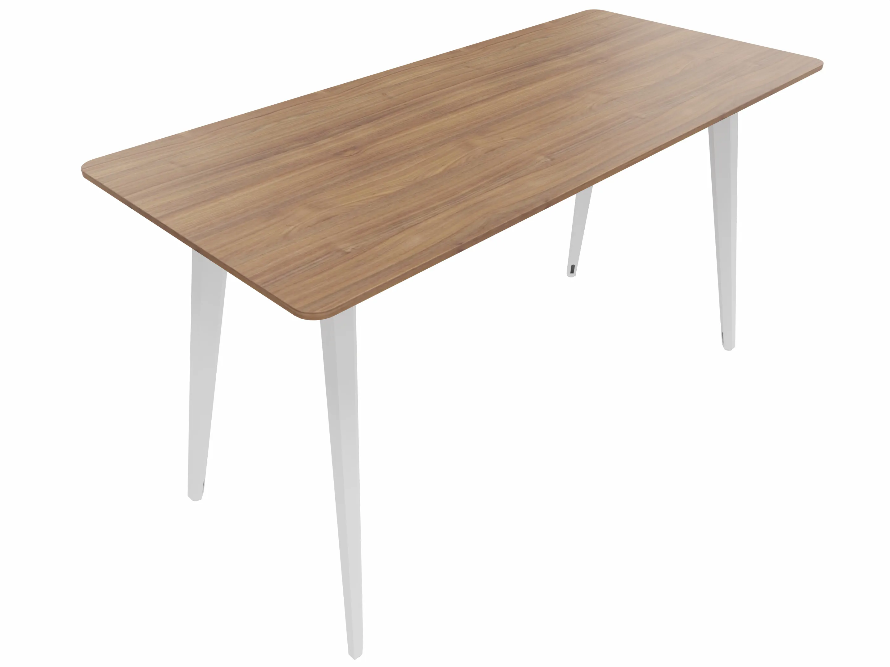 Bartafel met 4 schuine poten met kabelvoorziening en een rechthoekig blad. Afmeting: 1600 x 900 x 1100mm (BxHxD)