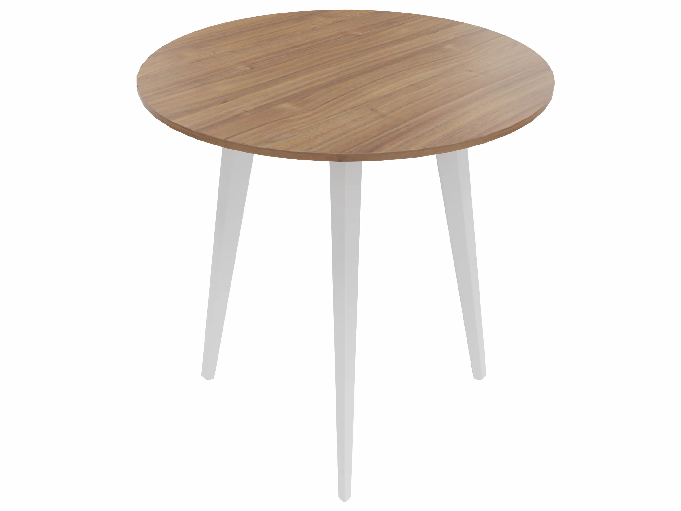 Bartafel met 4 schuine poten met kabelvoorziening en een rond blad. Afmeting: 1400 x 1400 x 1100mm (BxHxD)