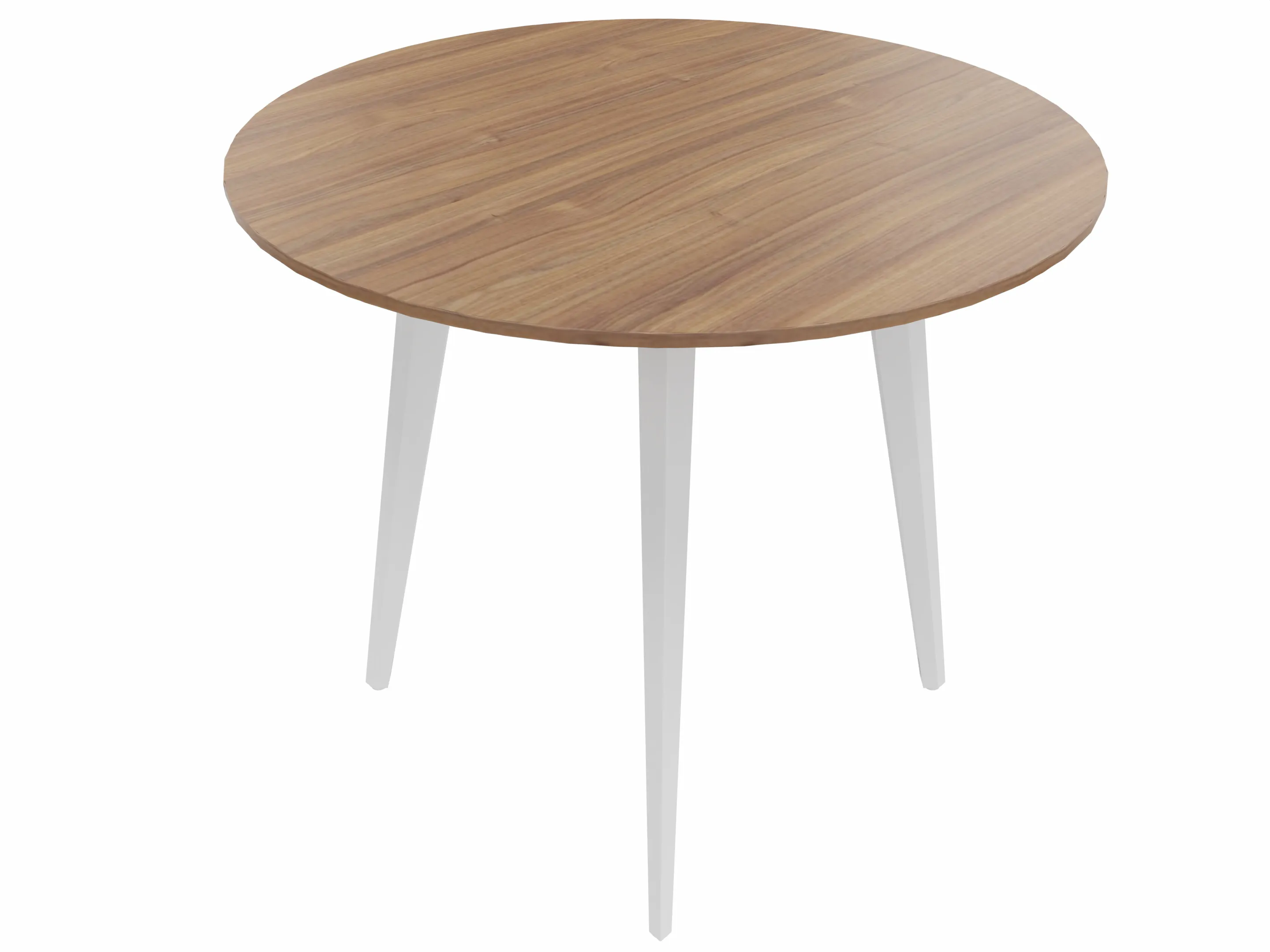 Bartafel met 4 schuine poten met kabelvoorziening en een rond blad. Afmeting: 1000 x 1000 x 1100mm (BxHxD)