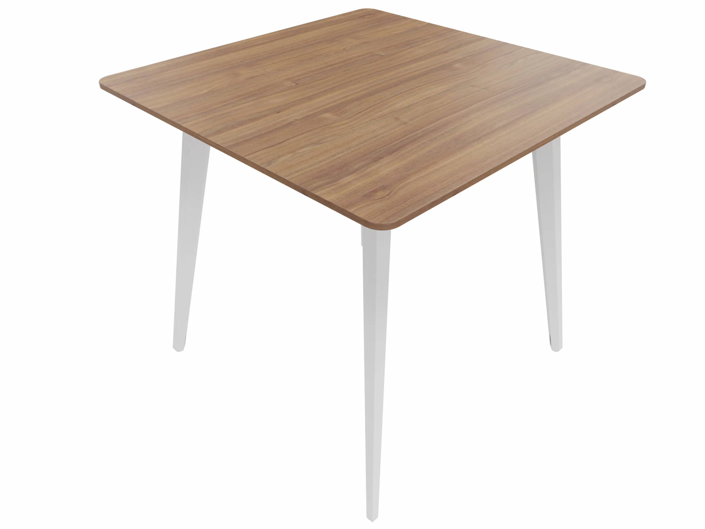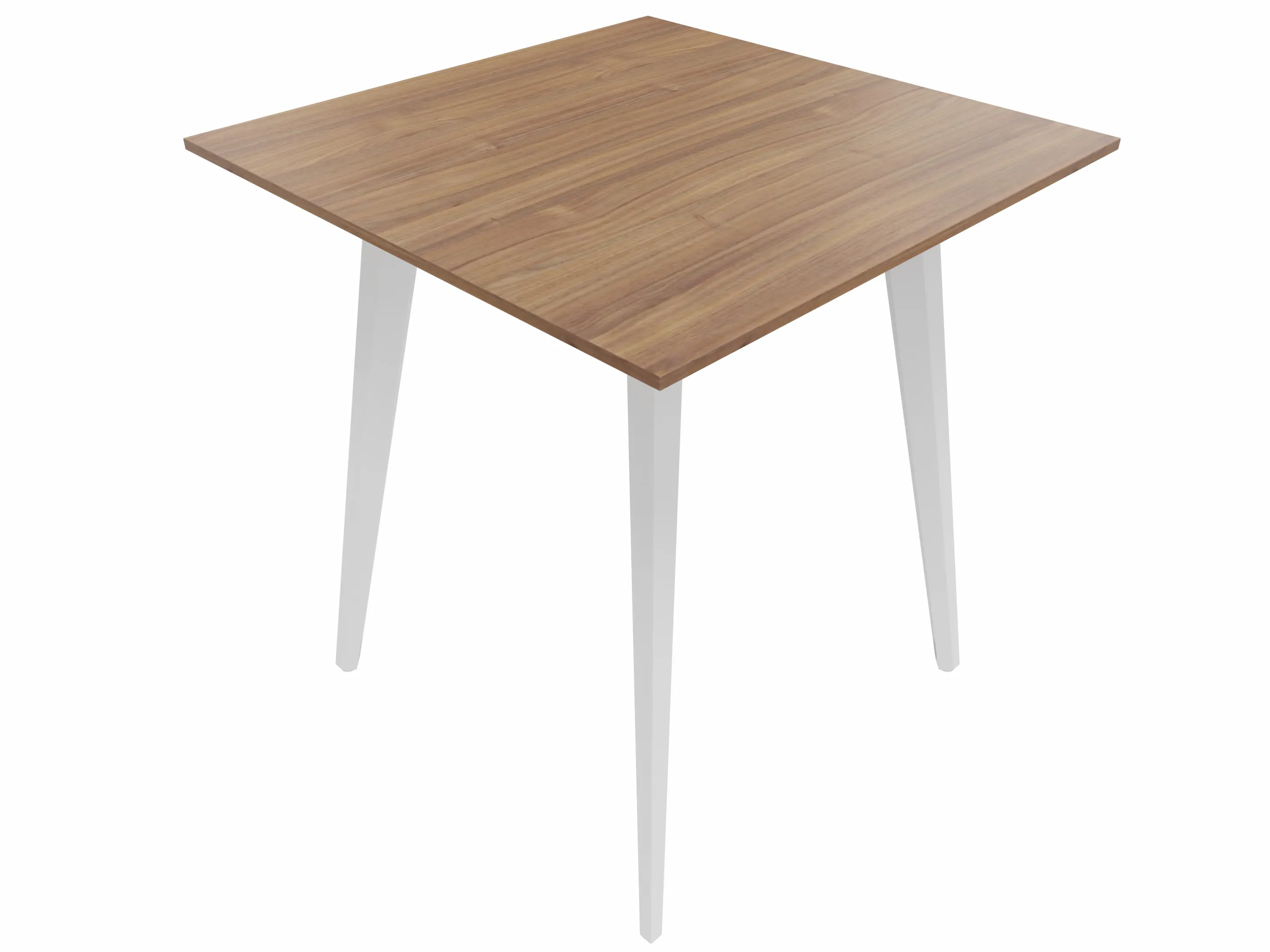 Bartafel met 4 schuine poten met kabelvoorziening en een vierkant blad. Afmeting: 1000 x 1000 x 1100mm (BxHxD)