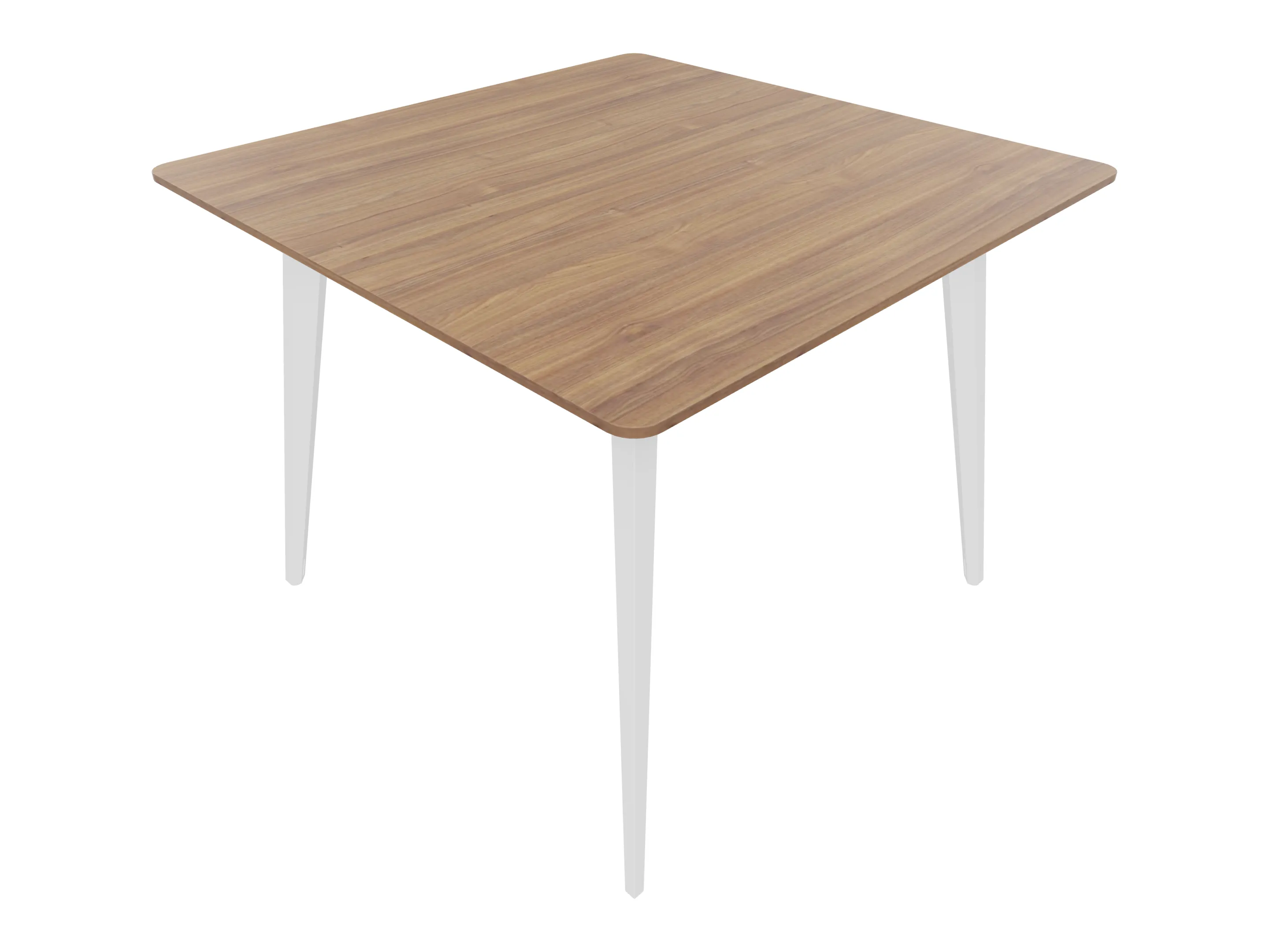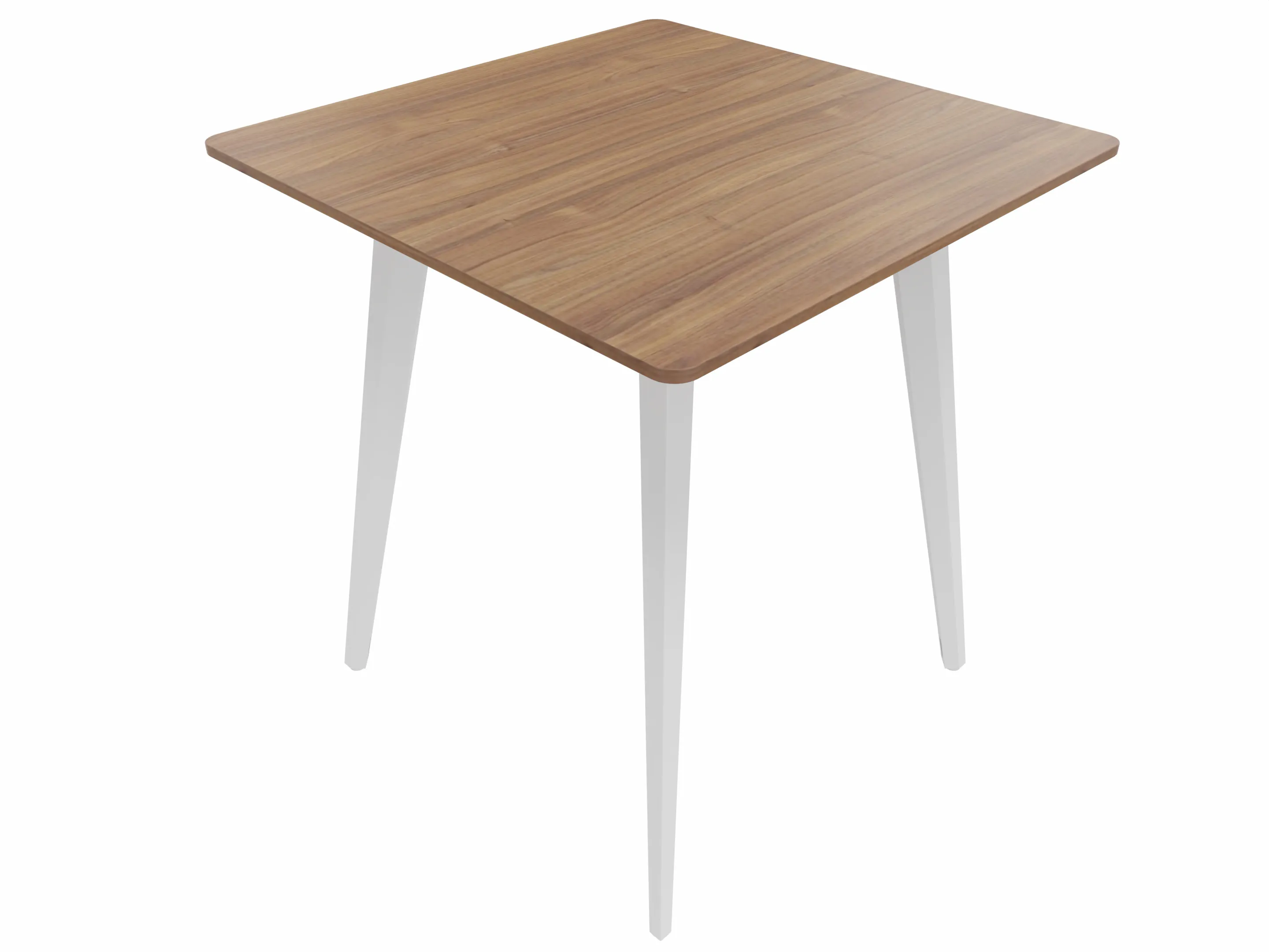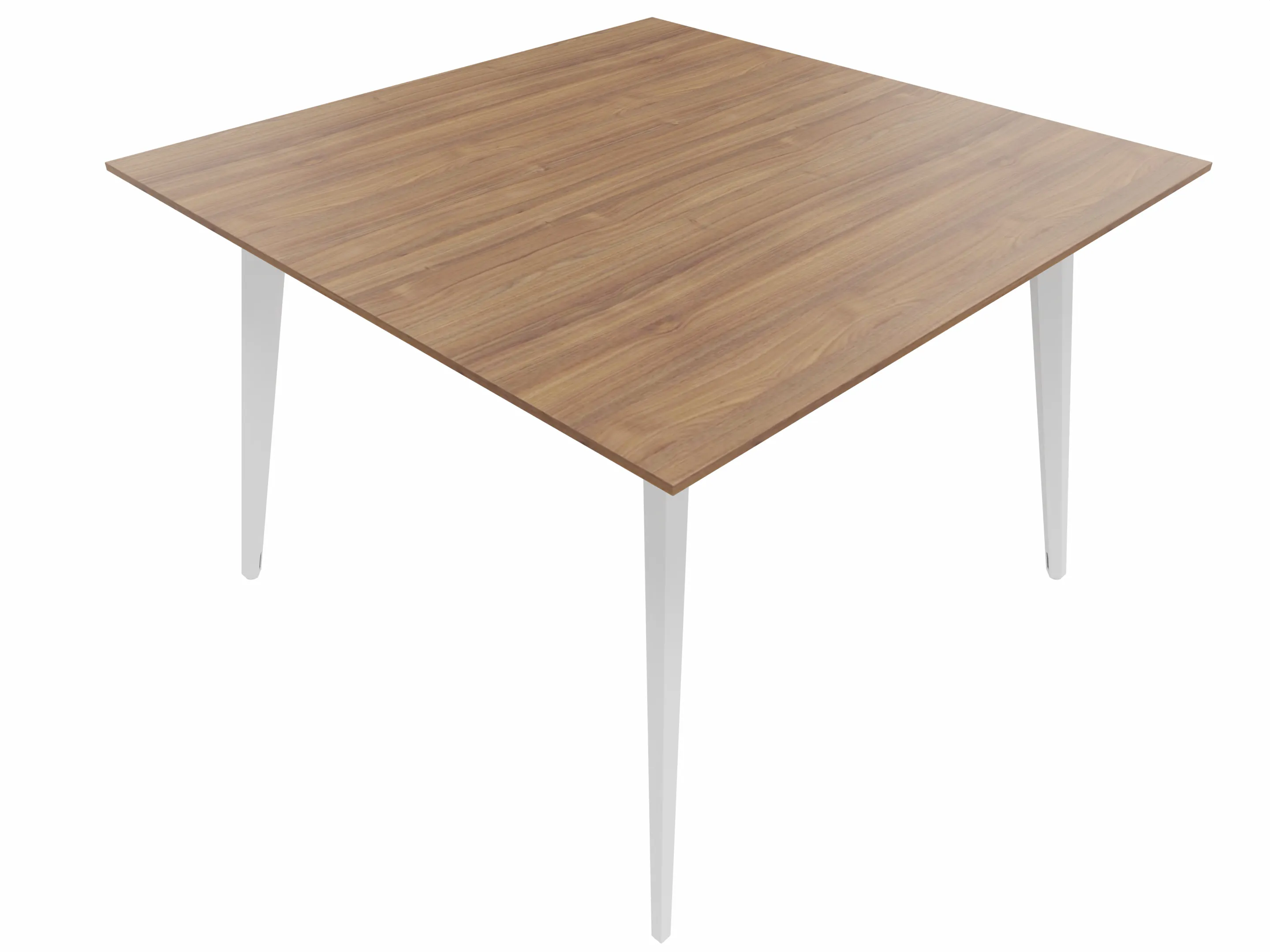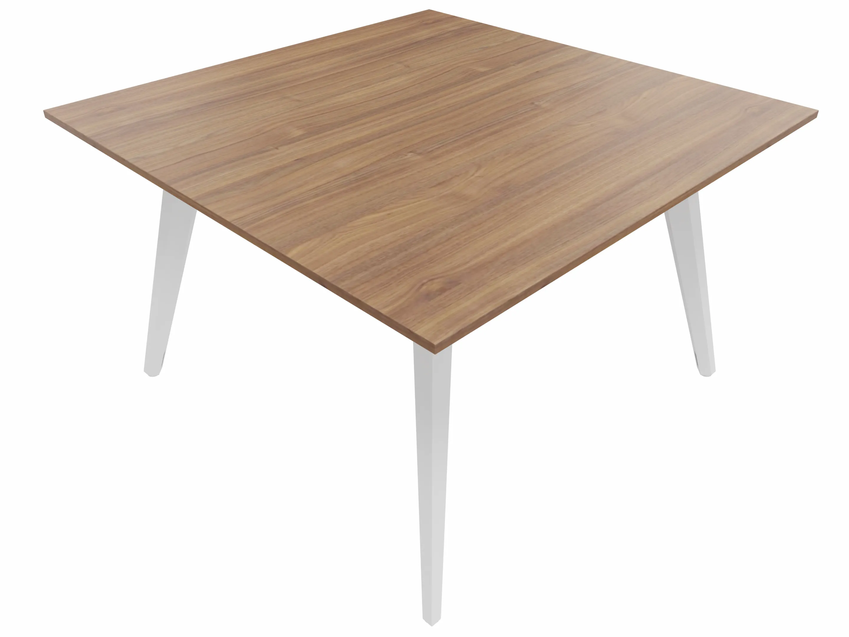 Bartafel met 4 schuine poten met kabelvoorziening en een vierkant blad. Afmeting: 1400 x 1400 x 1100mm (BxHxD)