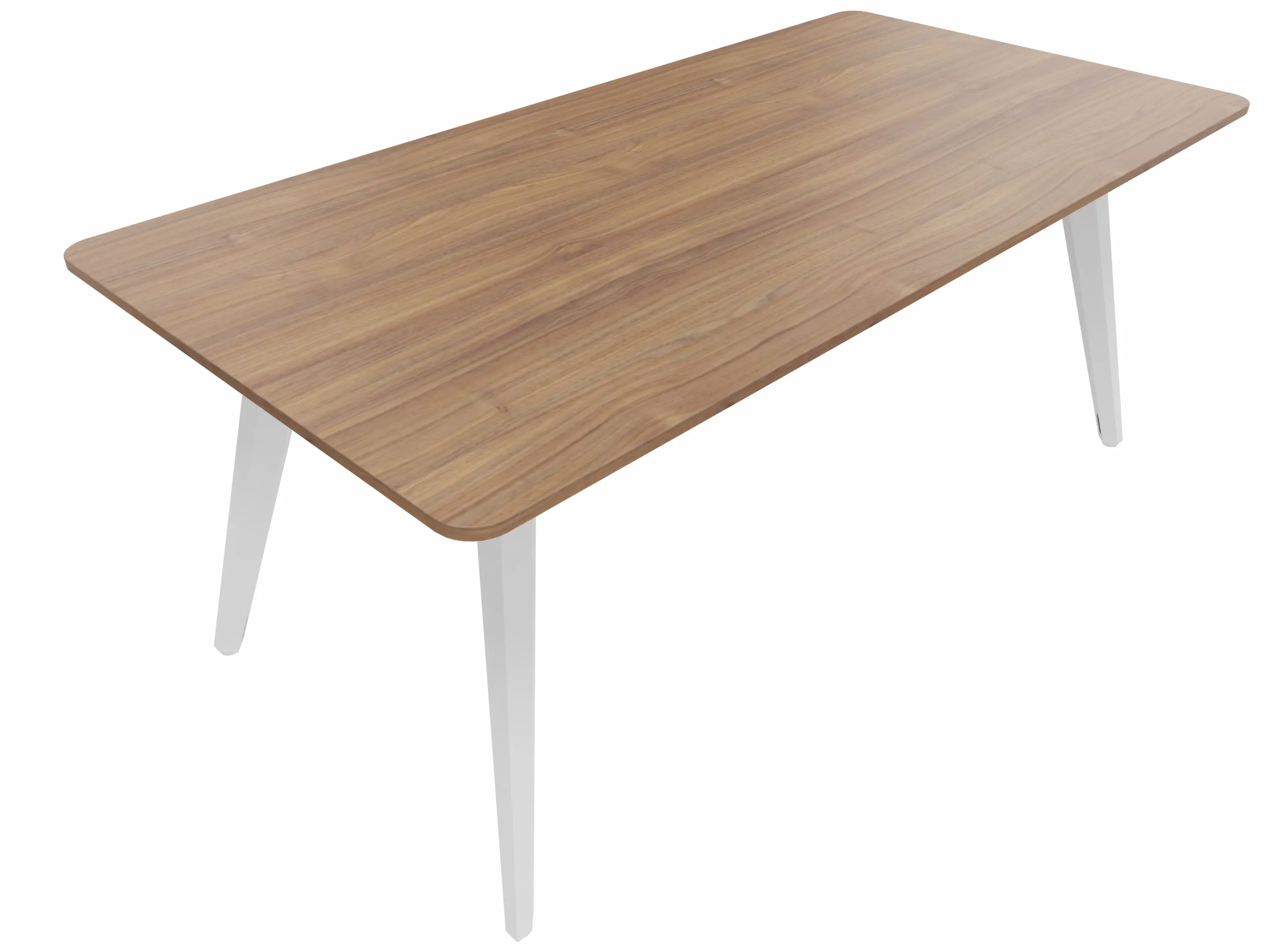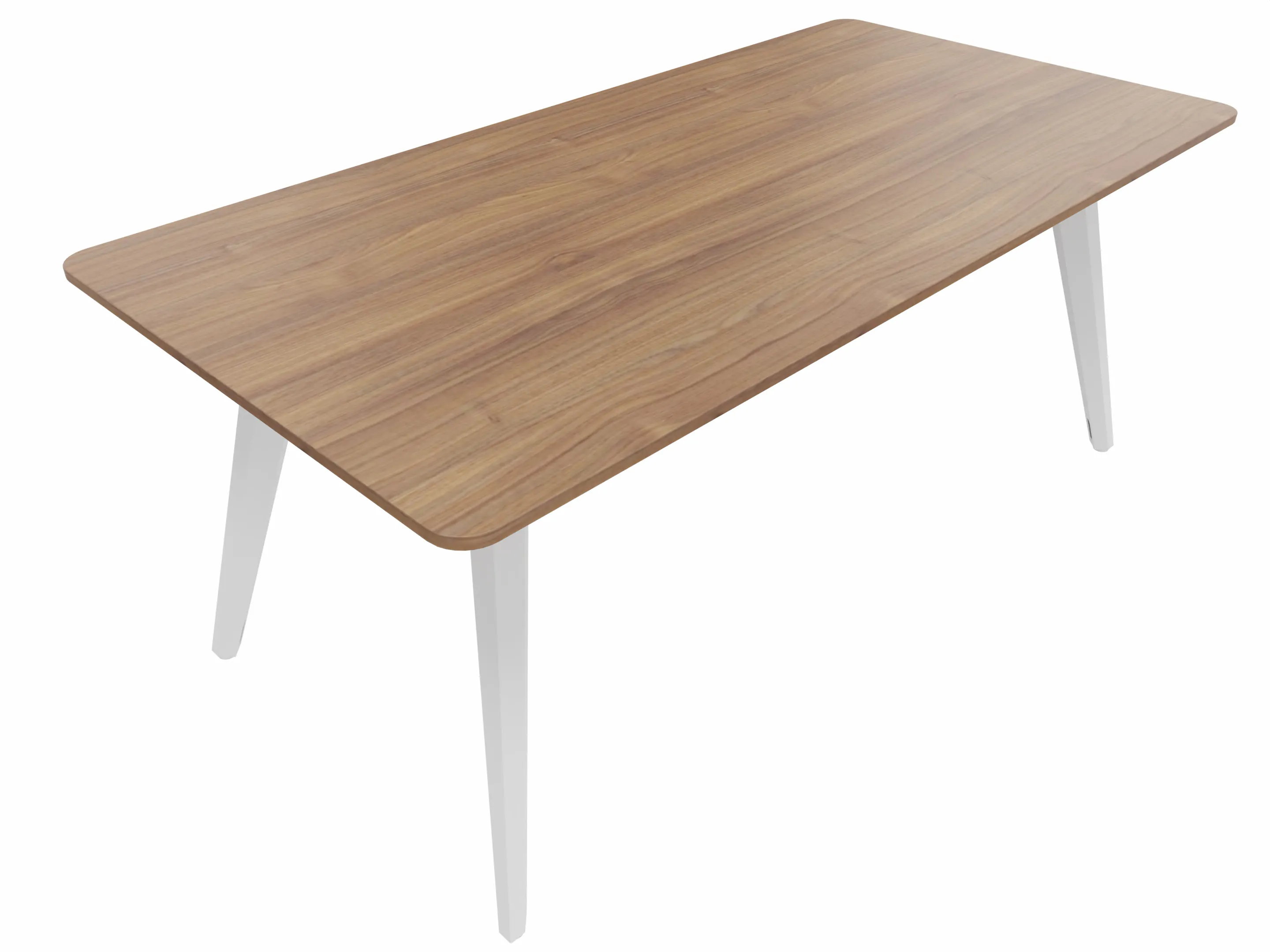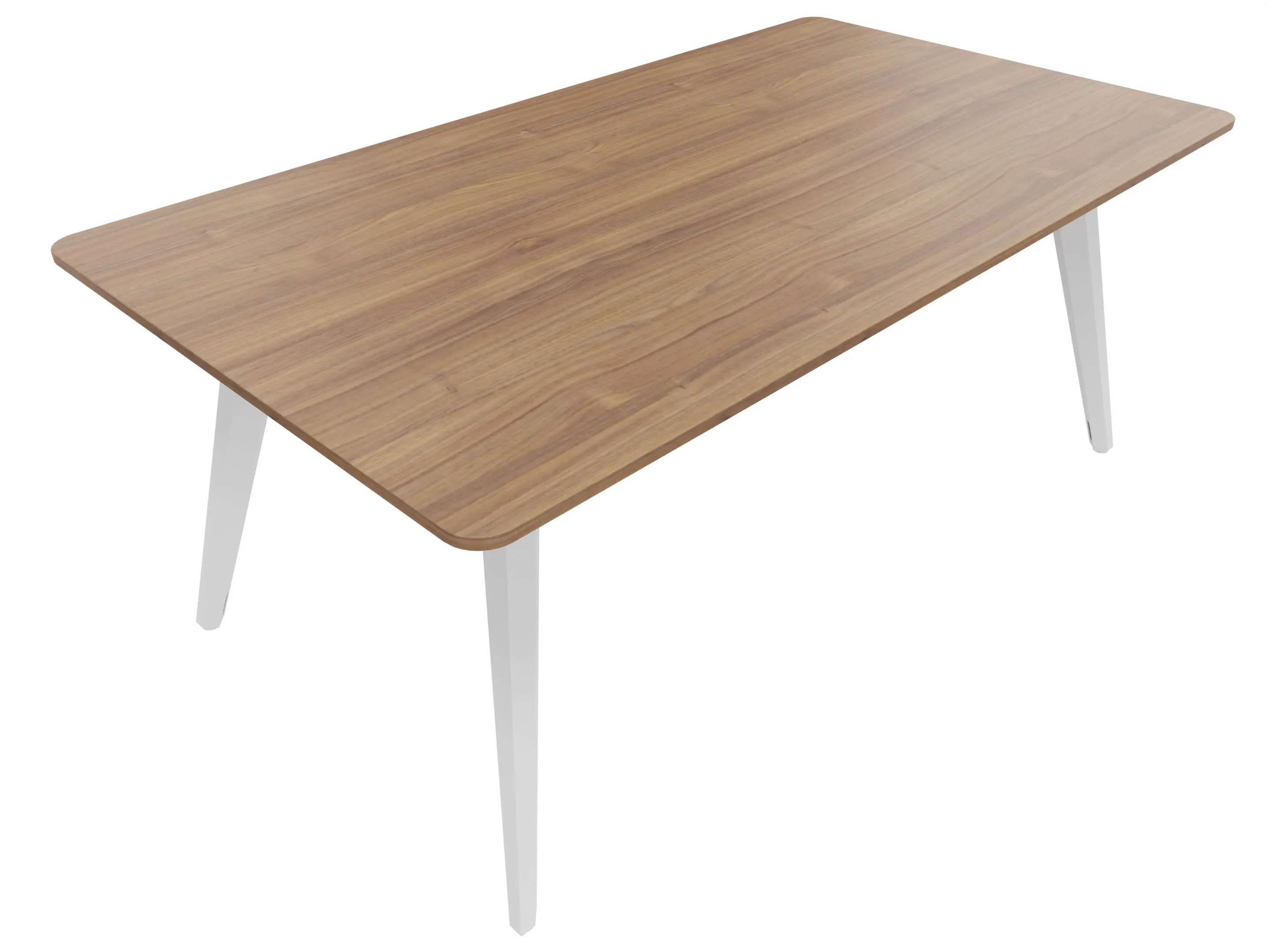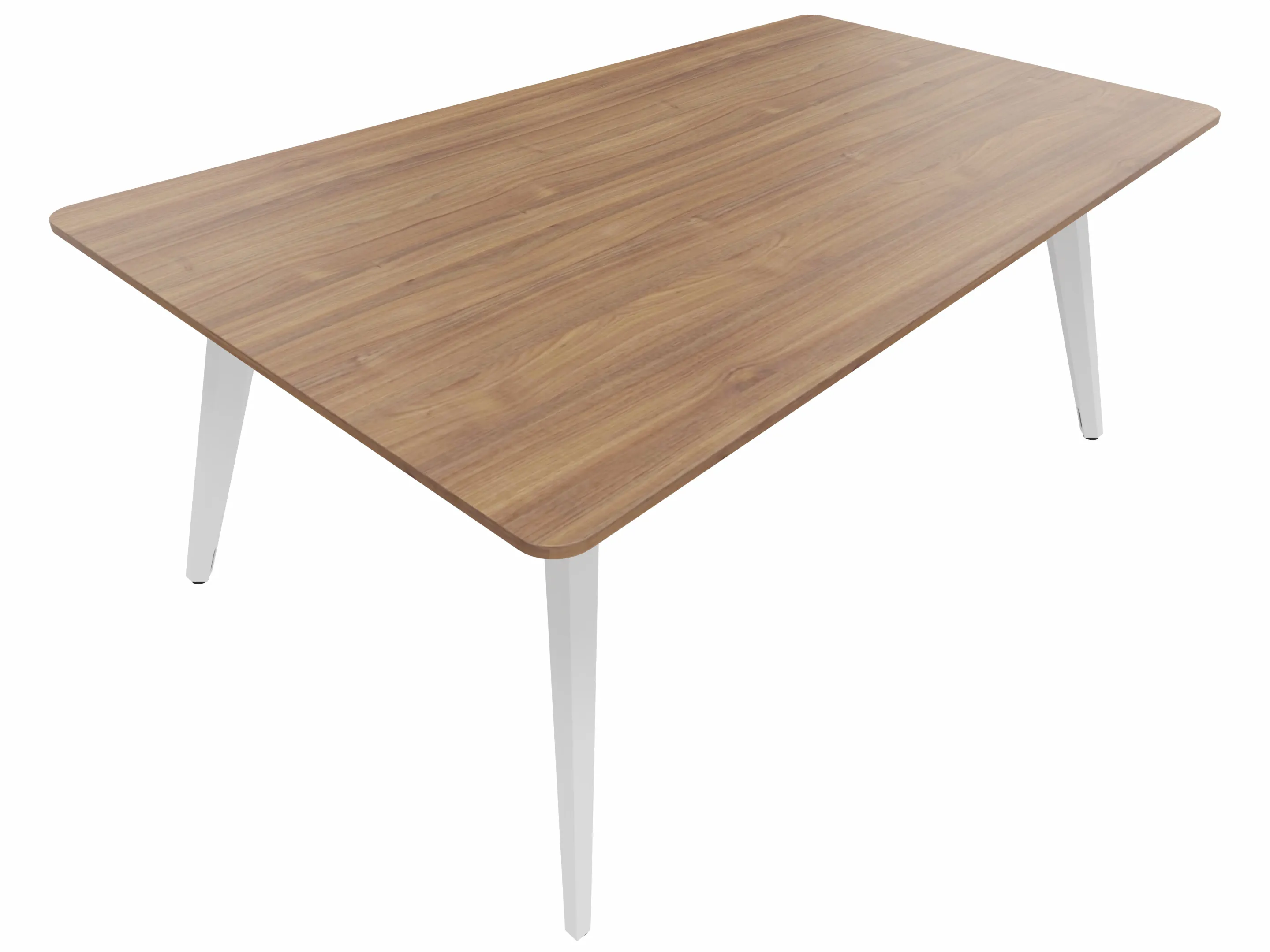 Vergadertafel met 4 schuine poten met kabelvoorziening en een rechthoekig blad. Afmeting: 1800 x 1000 x 740mm (BxHxD)