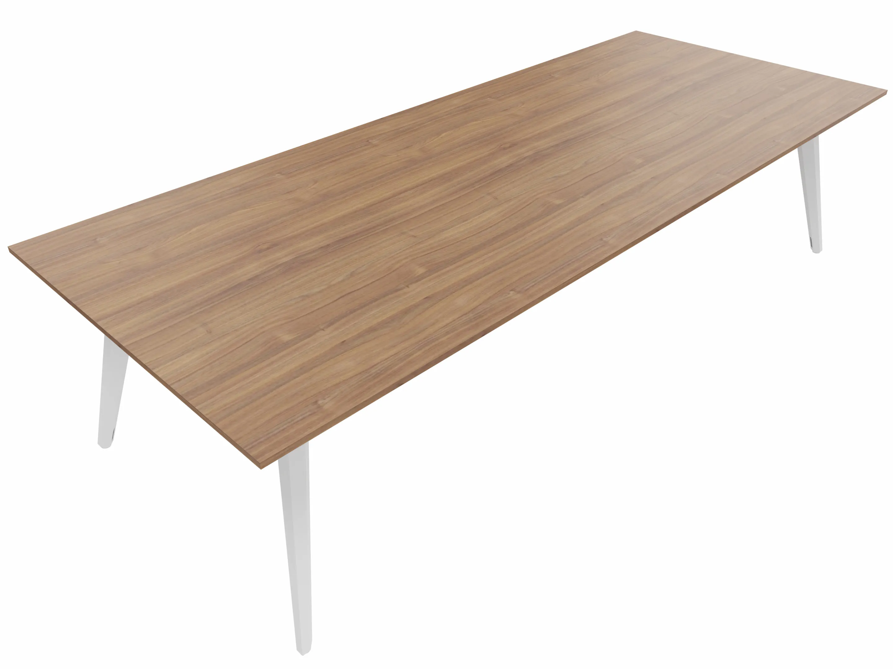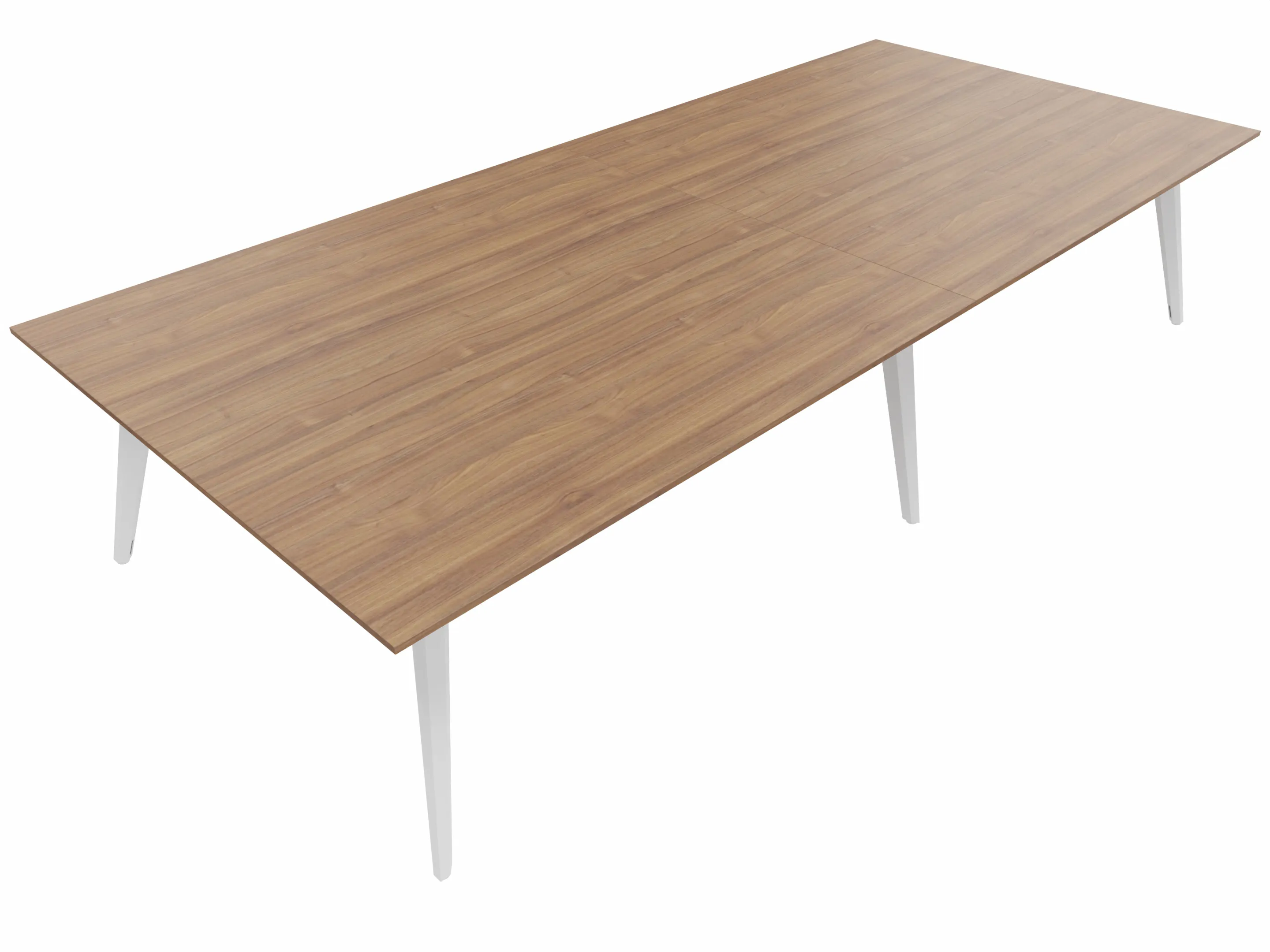 Vergadertafel met 6 schuine poten met kabelvoorziening en een rechthoekig blad. Afmeting: 3600 x 1200 x 740mm (BxHxD)