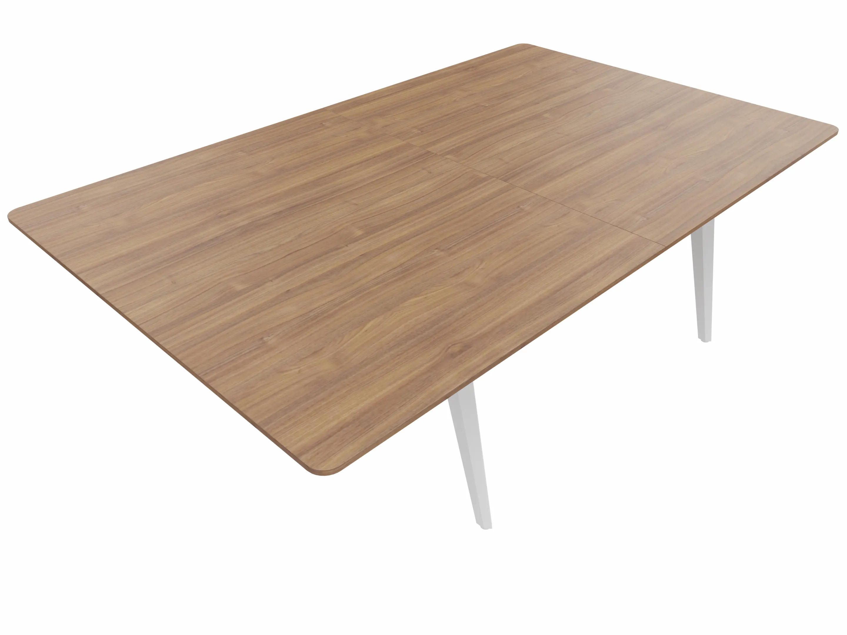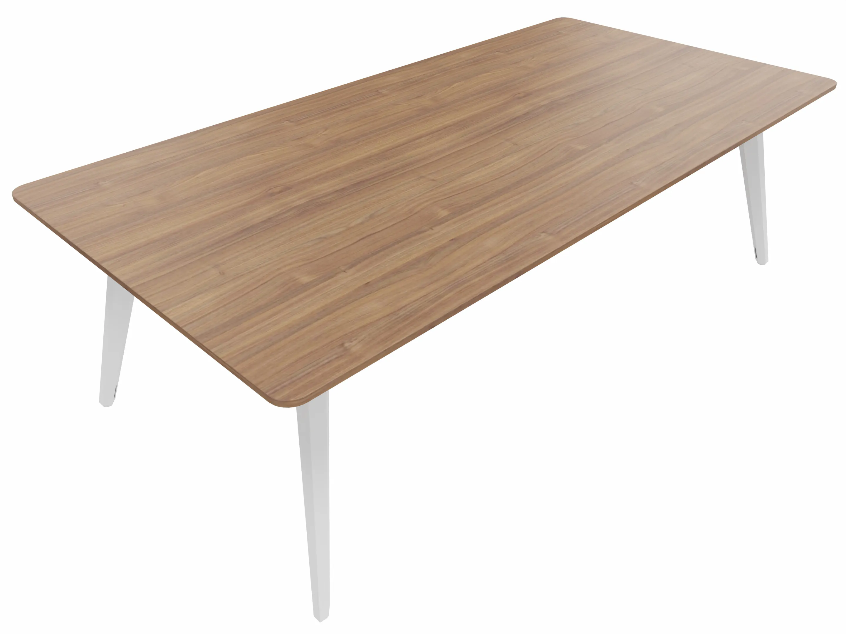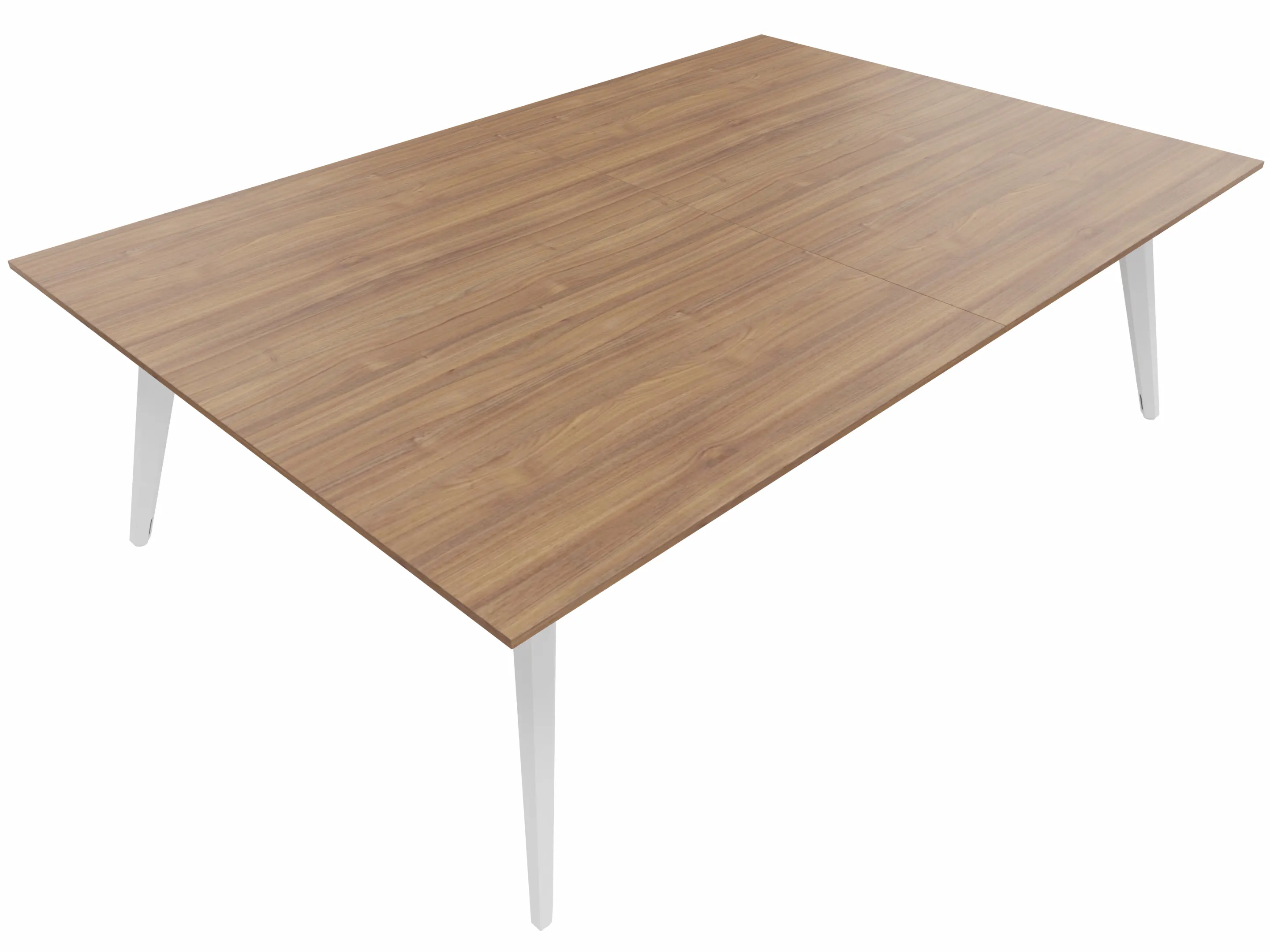 Vergadertafel met 4 schuine poten met kabelvoorziening en een rechthoekig blad. Afmeting: 2400 x 1600 x 740mm (BxHxD)