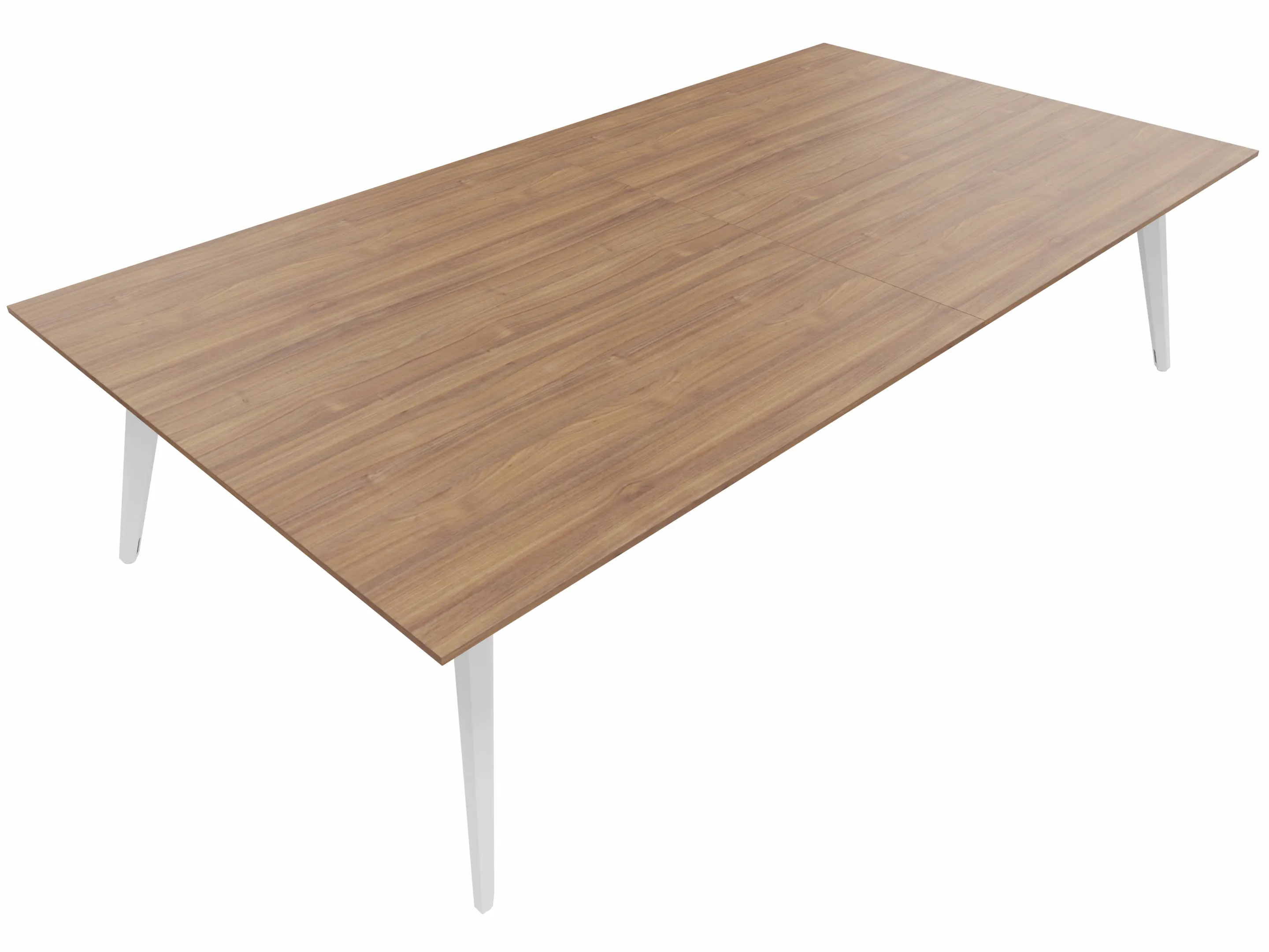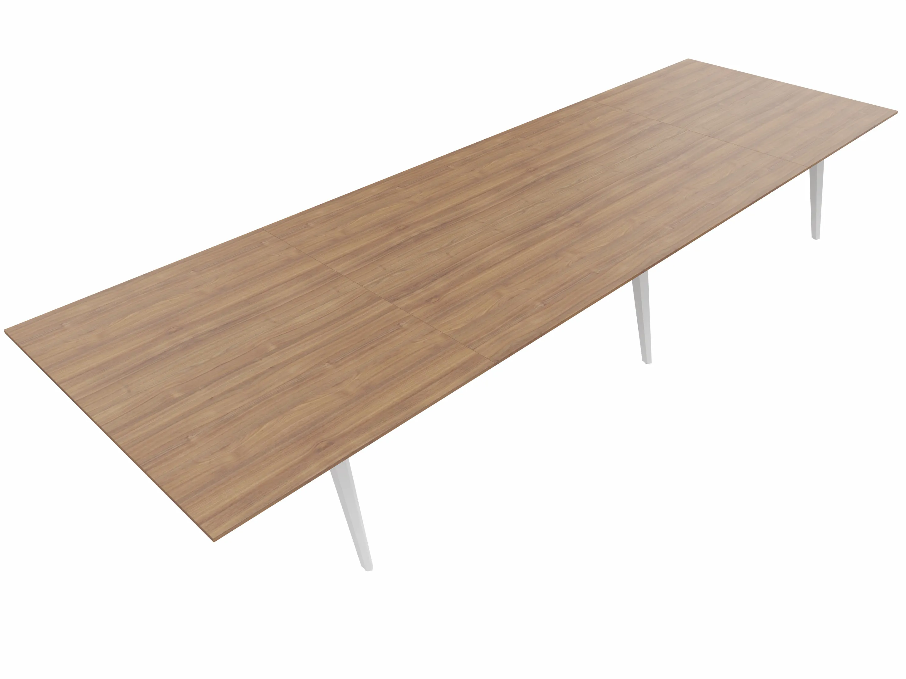 Vergadertafel met 4 schuine poten met kabelvoorziening en een rechthoekig blad. Afmeting: 3800 x 1600 x 740mm (BxHxD)