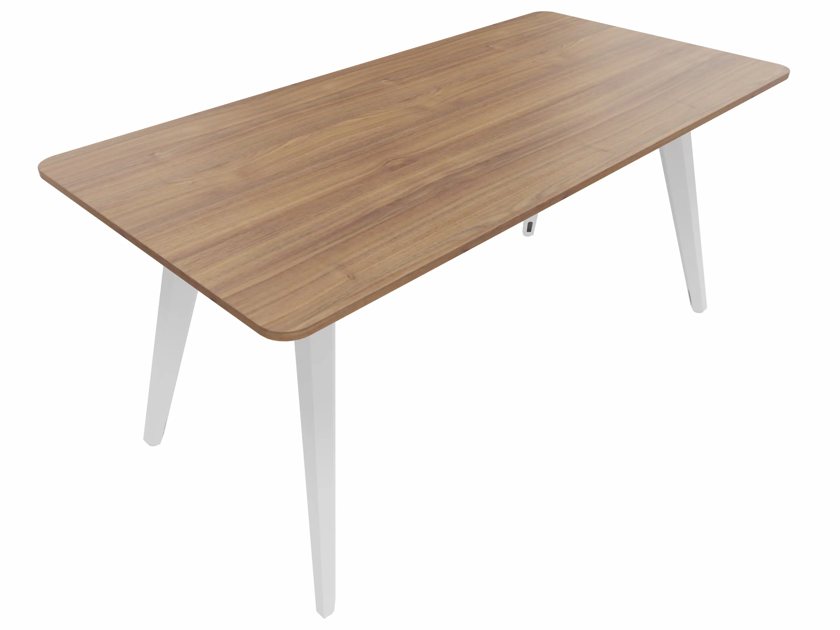 Vergadertafel met 4 schuine poten met kabelvoorziening en een rechthoekig blad. Afmeting: 1600 x 900 x 740mm (BxHxD)