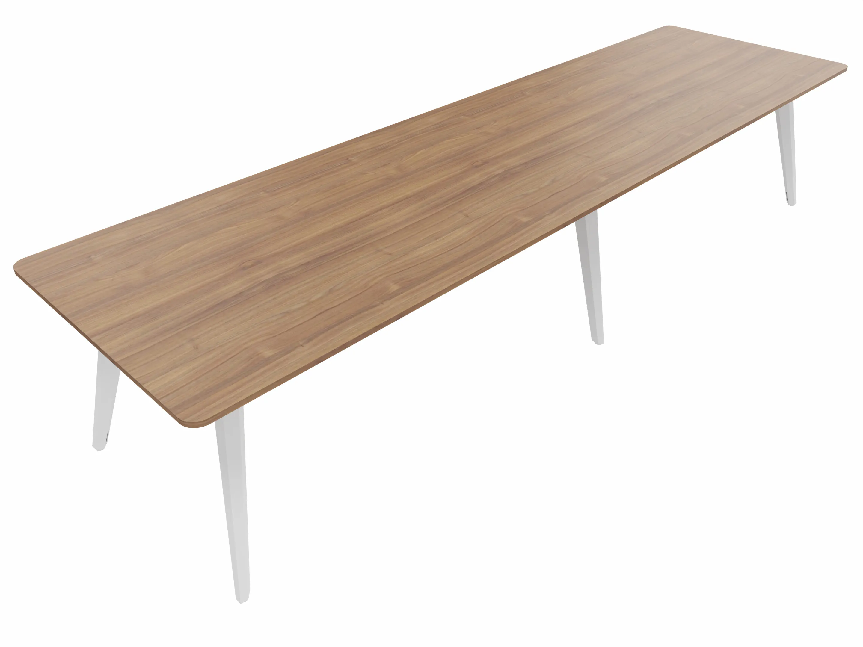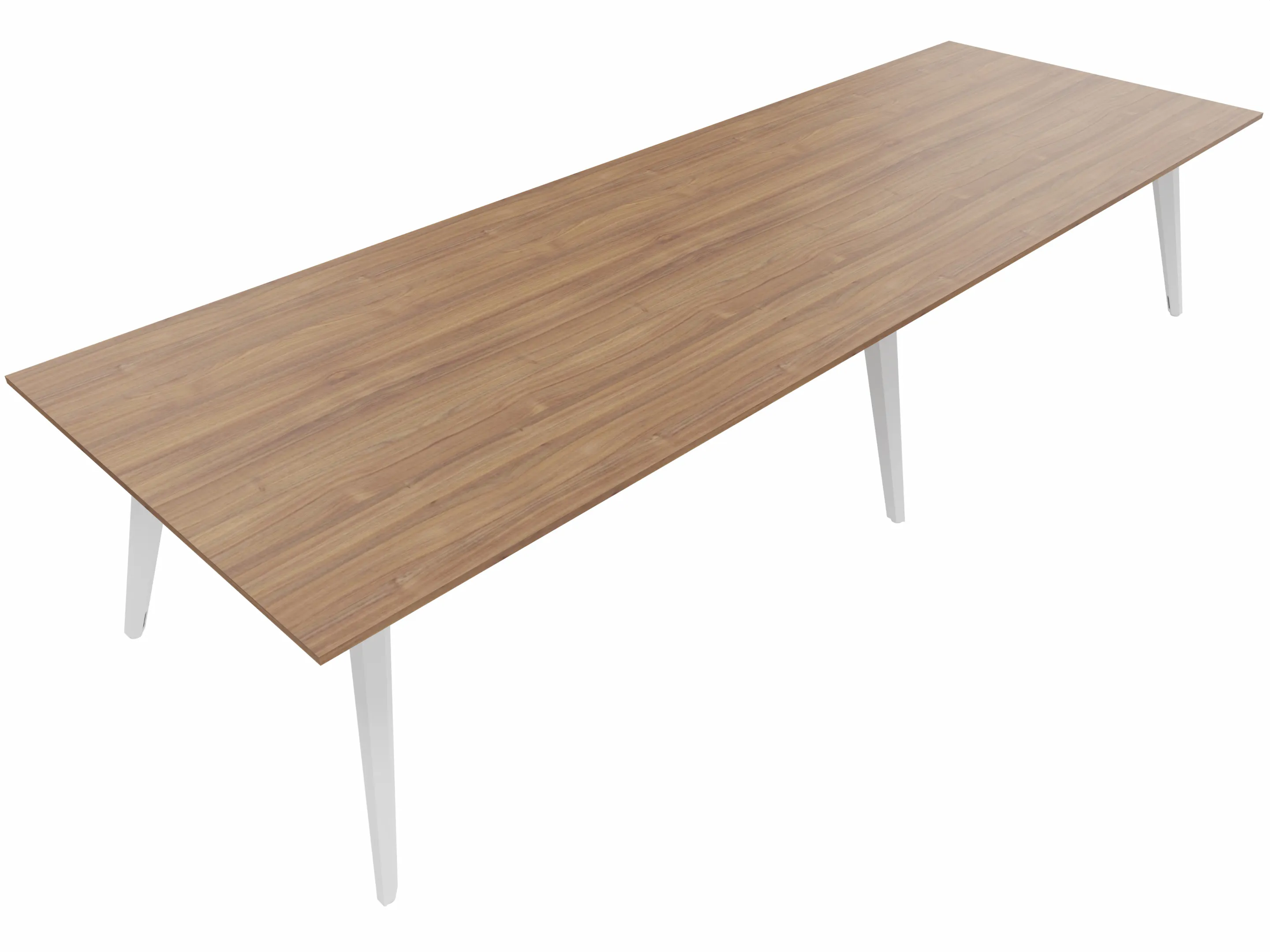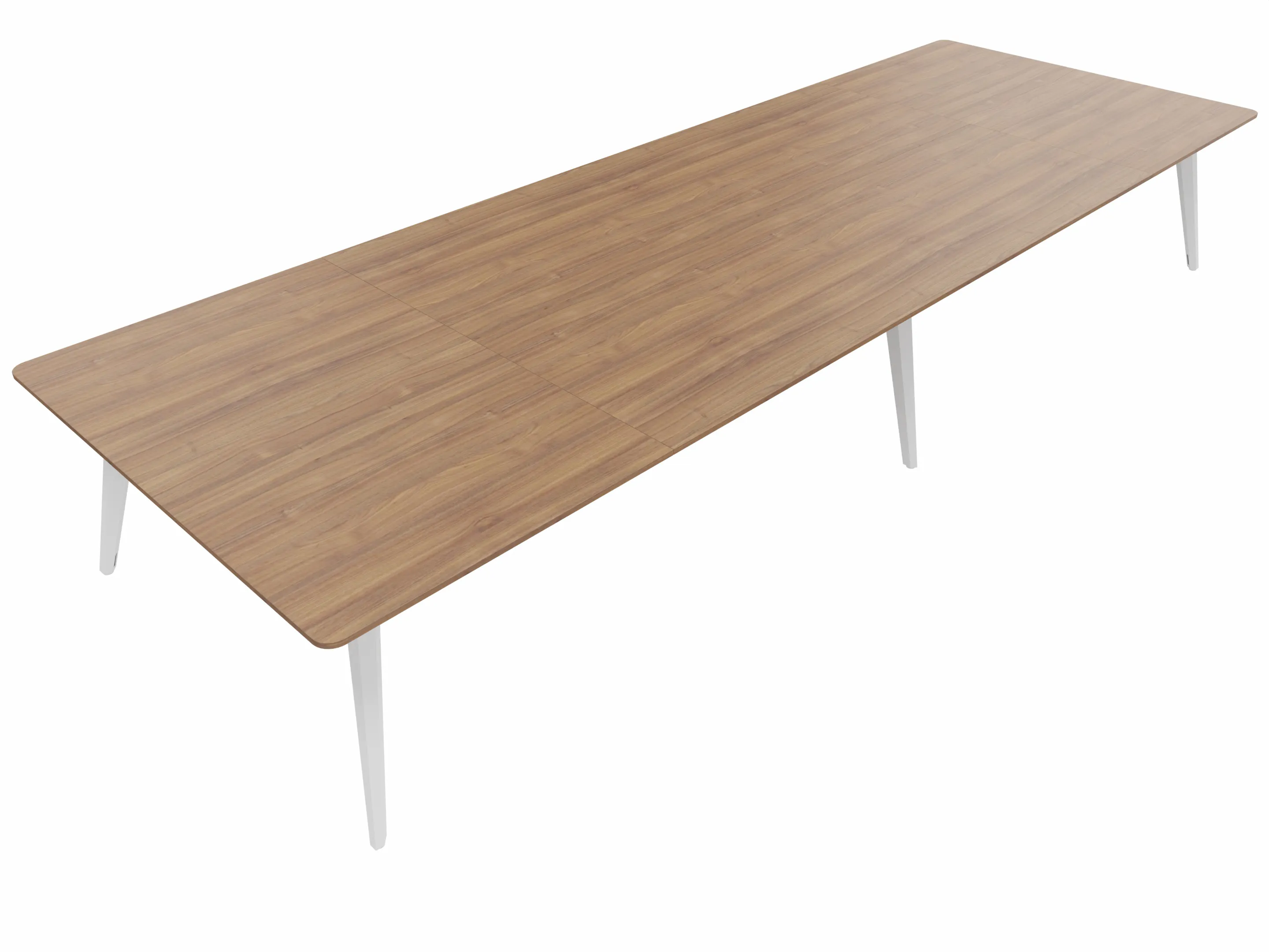 Vergadertafel met 6 schuine poten met kabelvoorziening en een rechthoekig blad. Afmeting: 3600 x 1000 x 740mm (BxHxD)