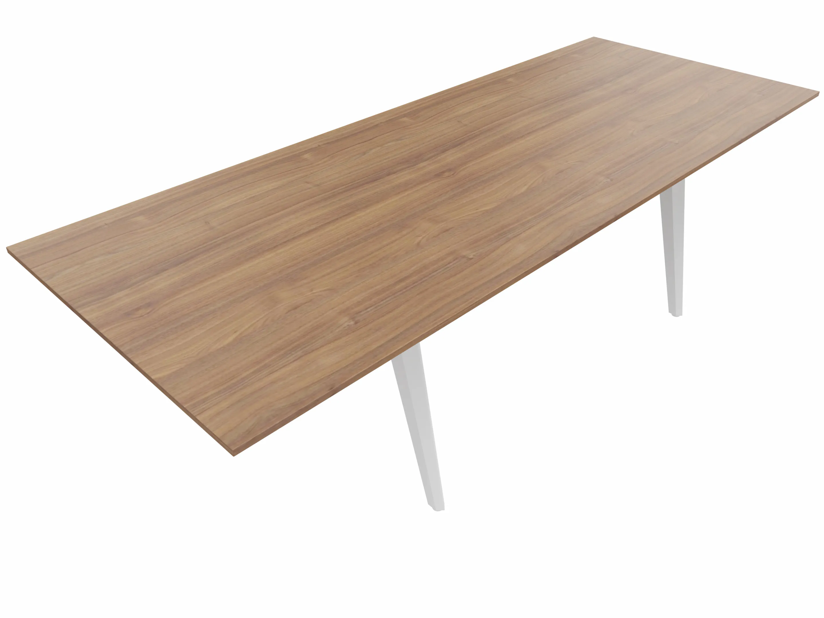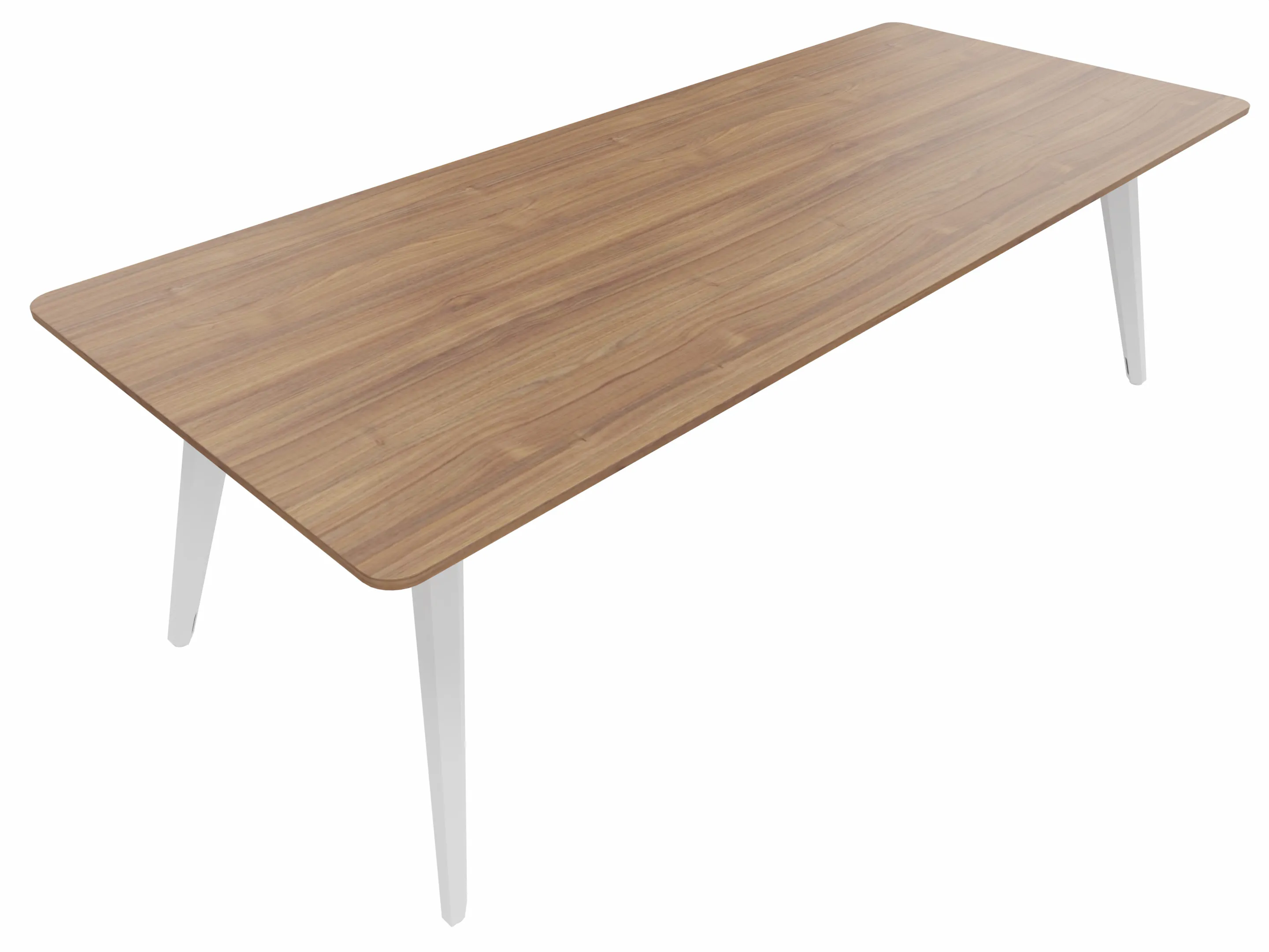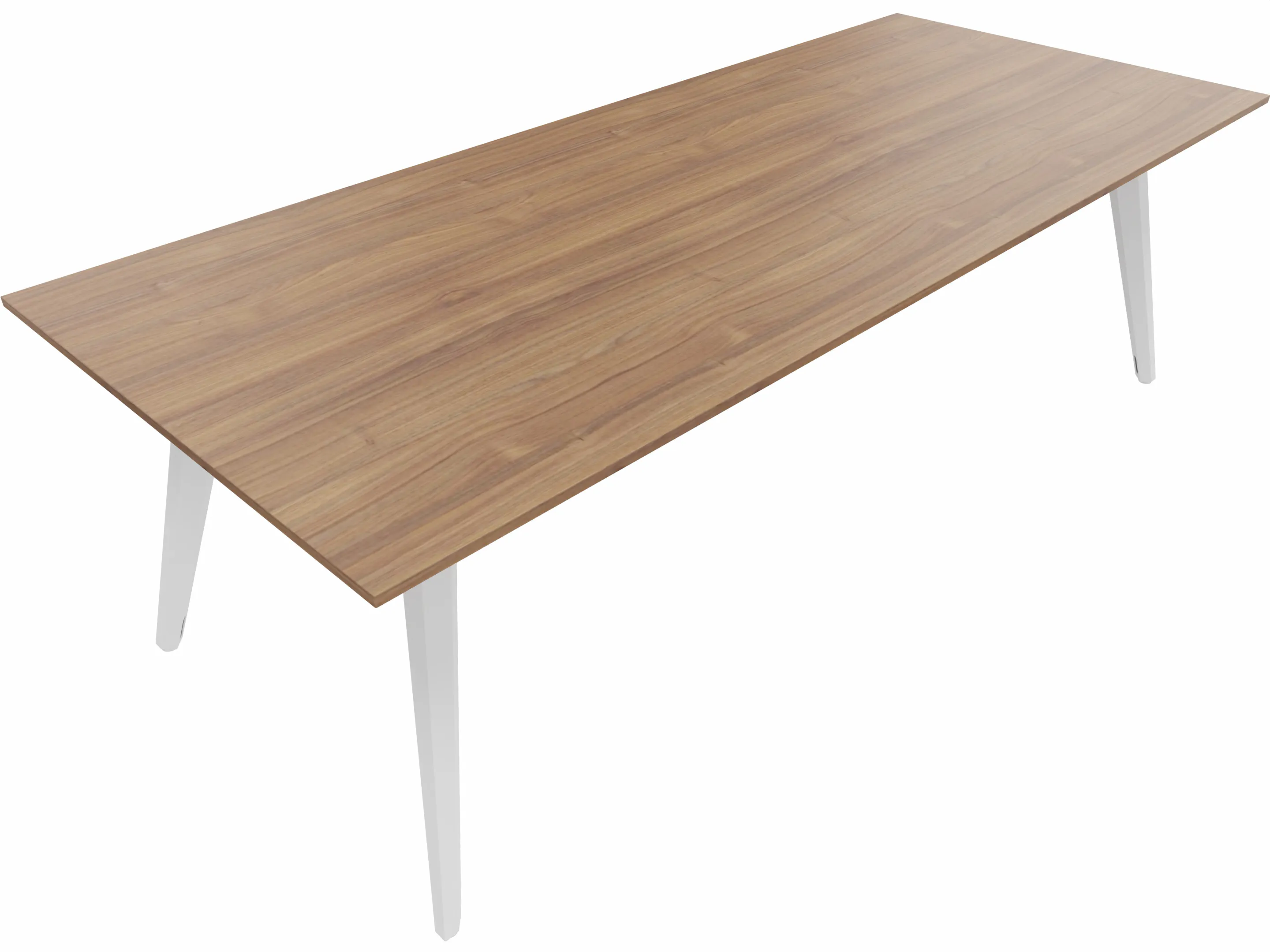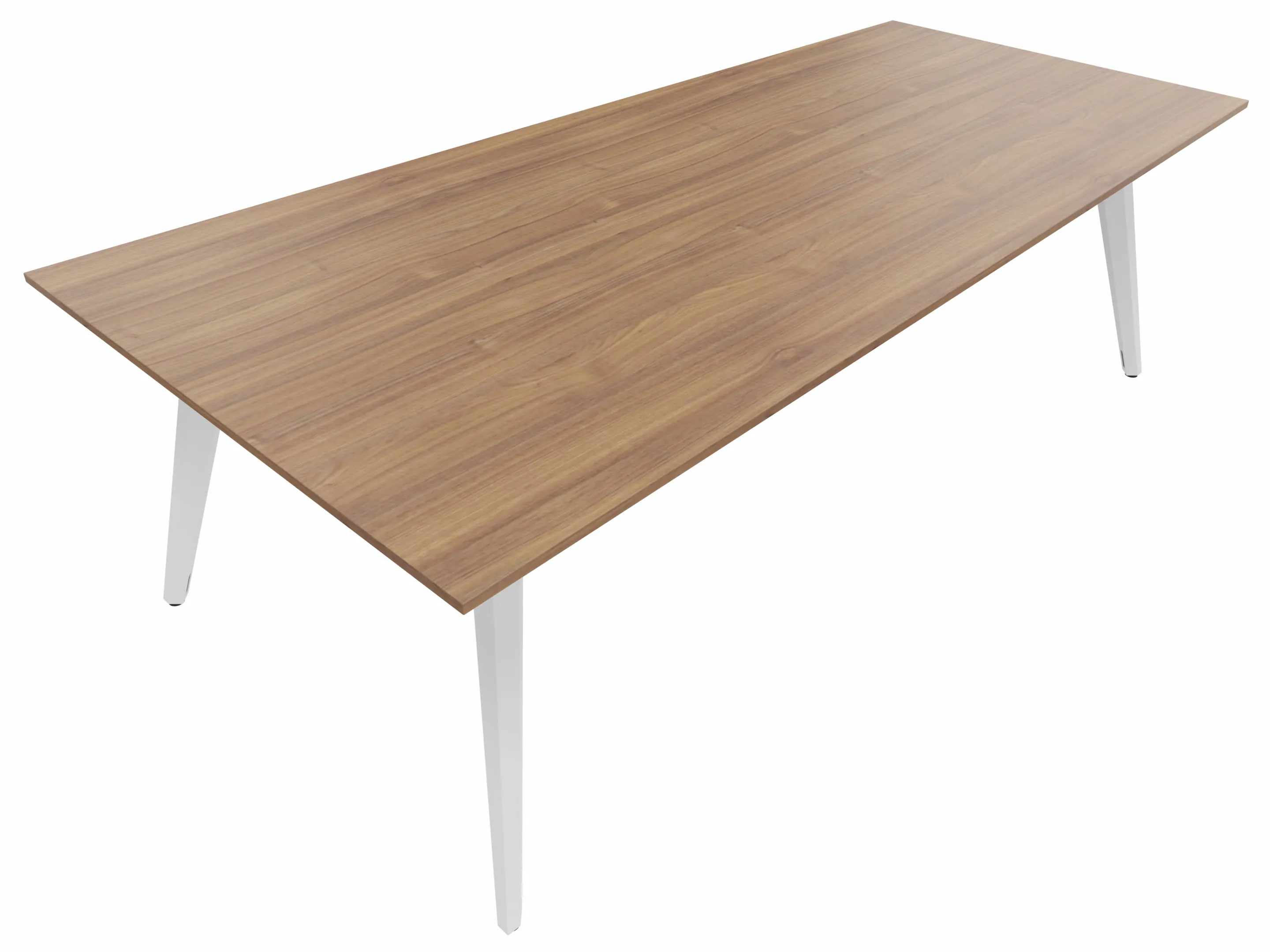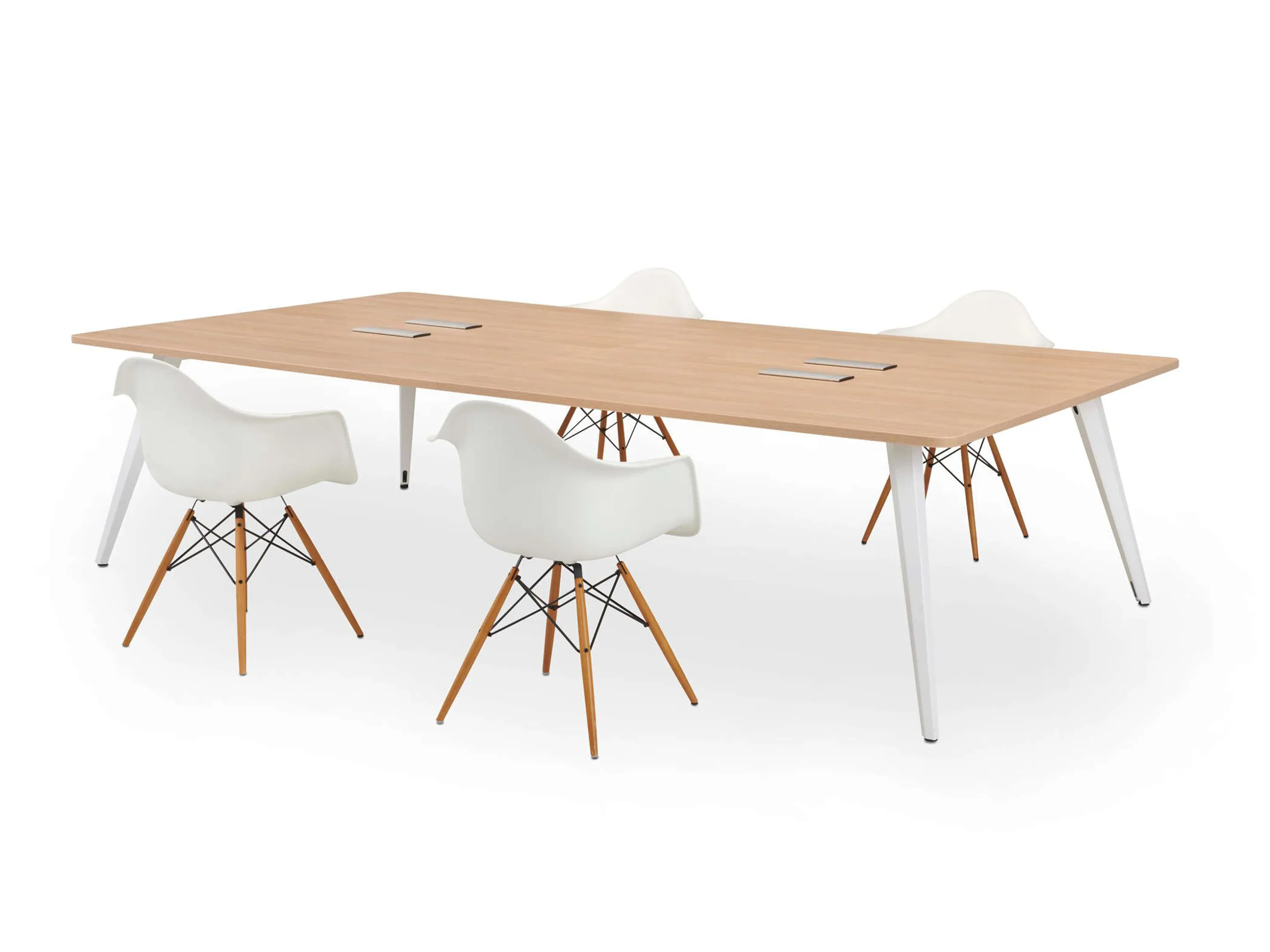 Vergadertafel met 4 schuine poten met kabelvoorziening en een rechthoekig blad. Afmeting: 2400 x 1000 x 740mm (BxHxD)