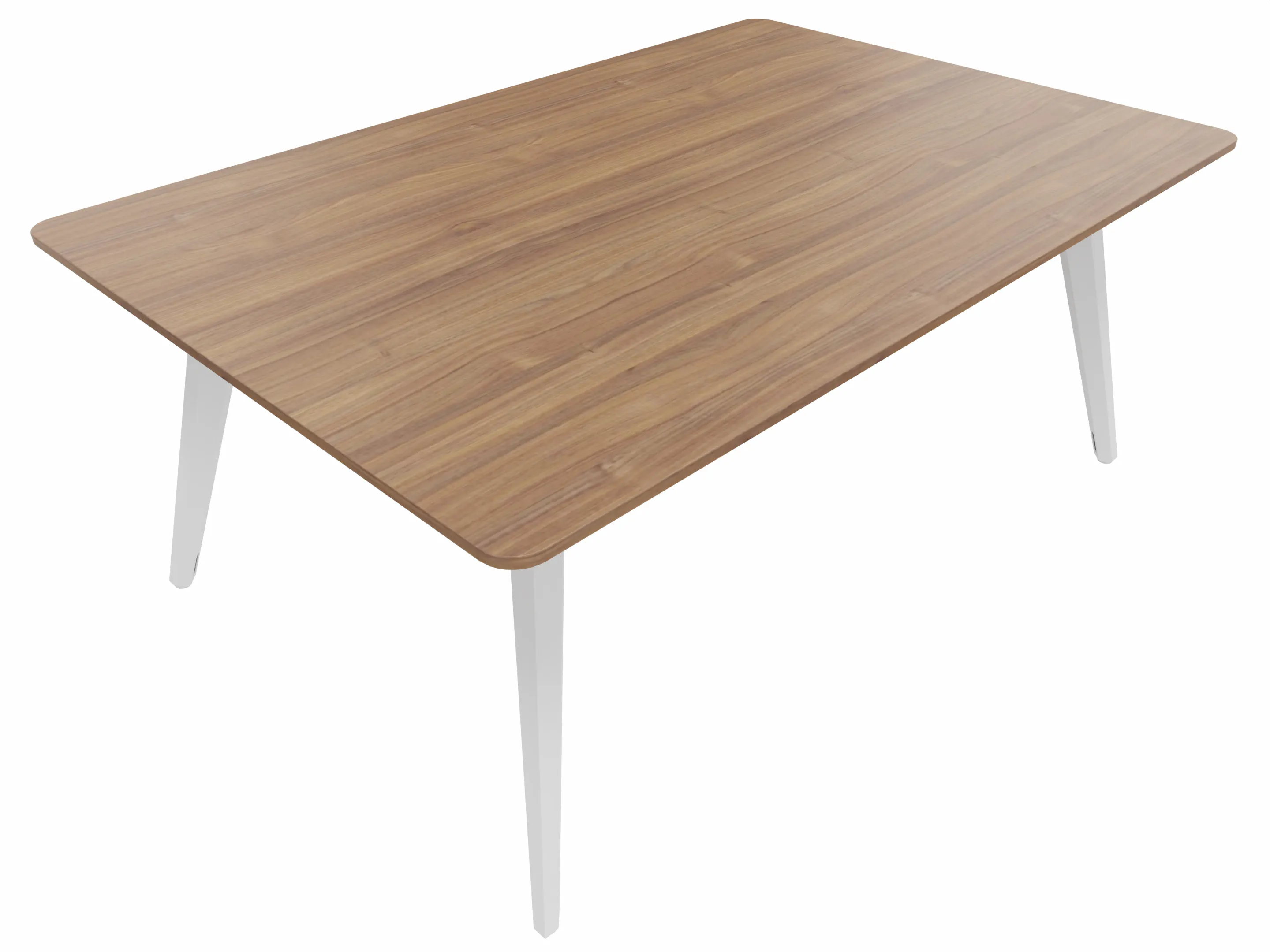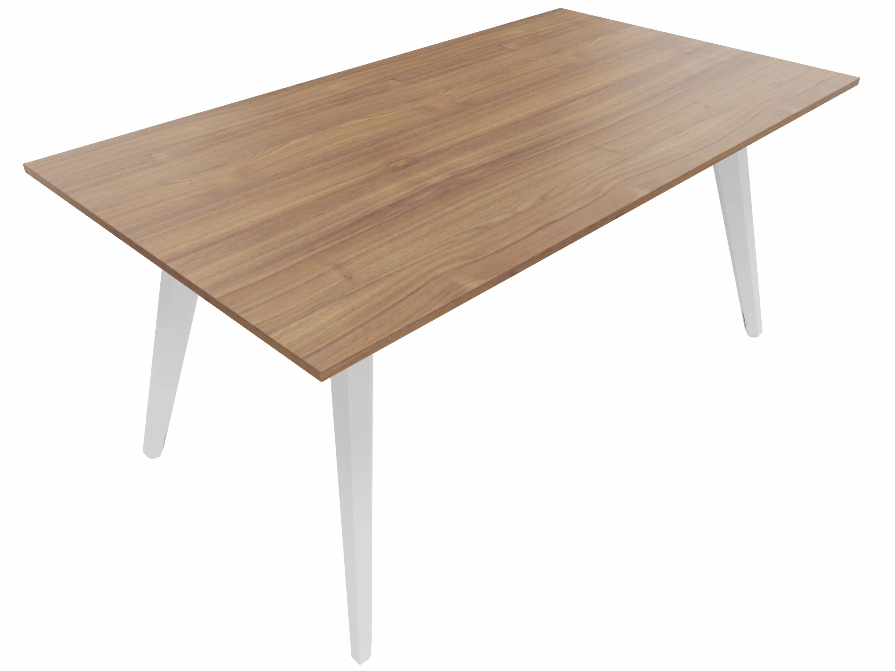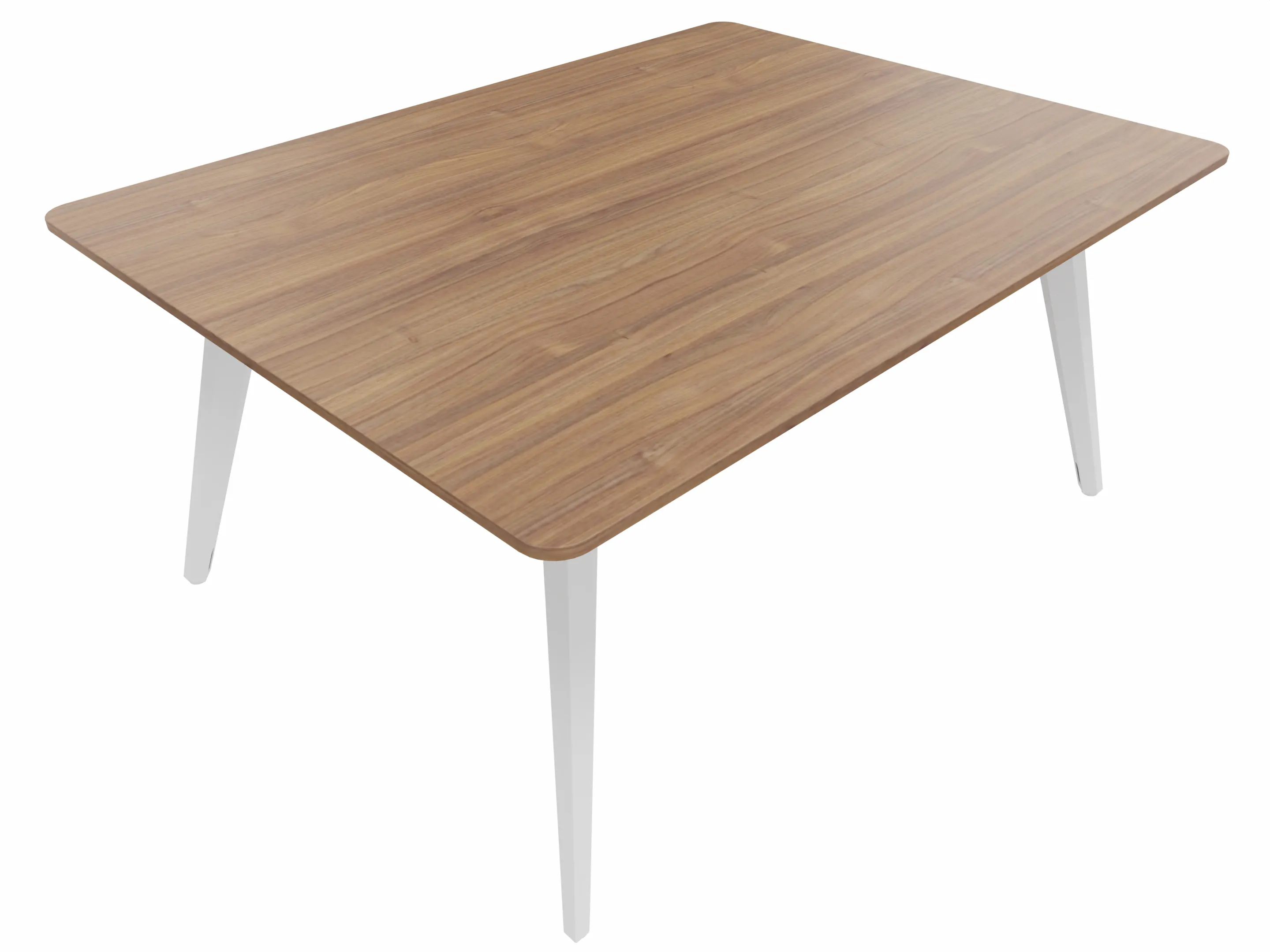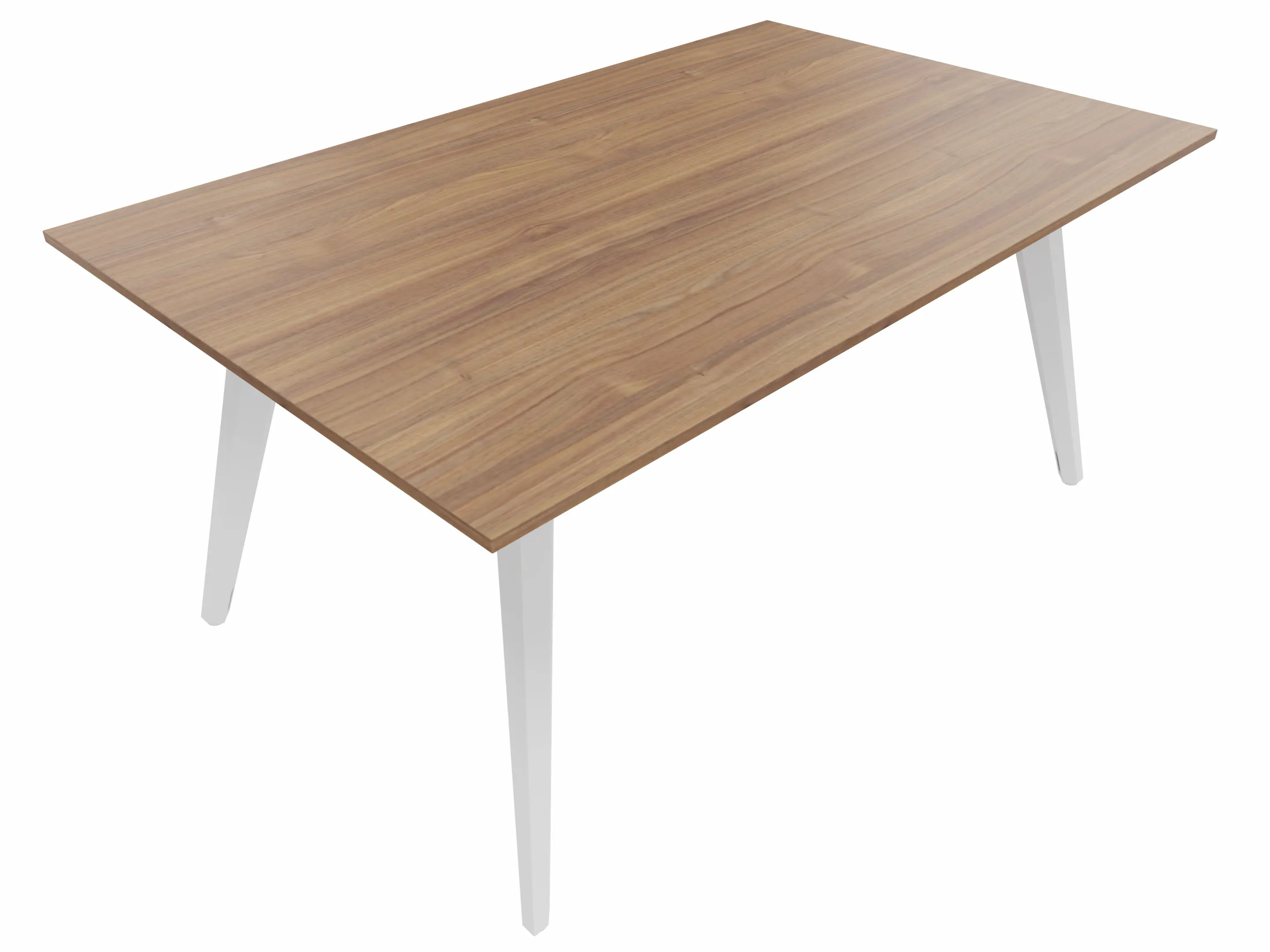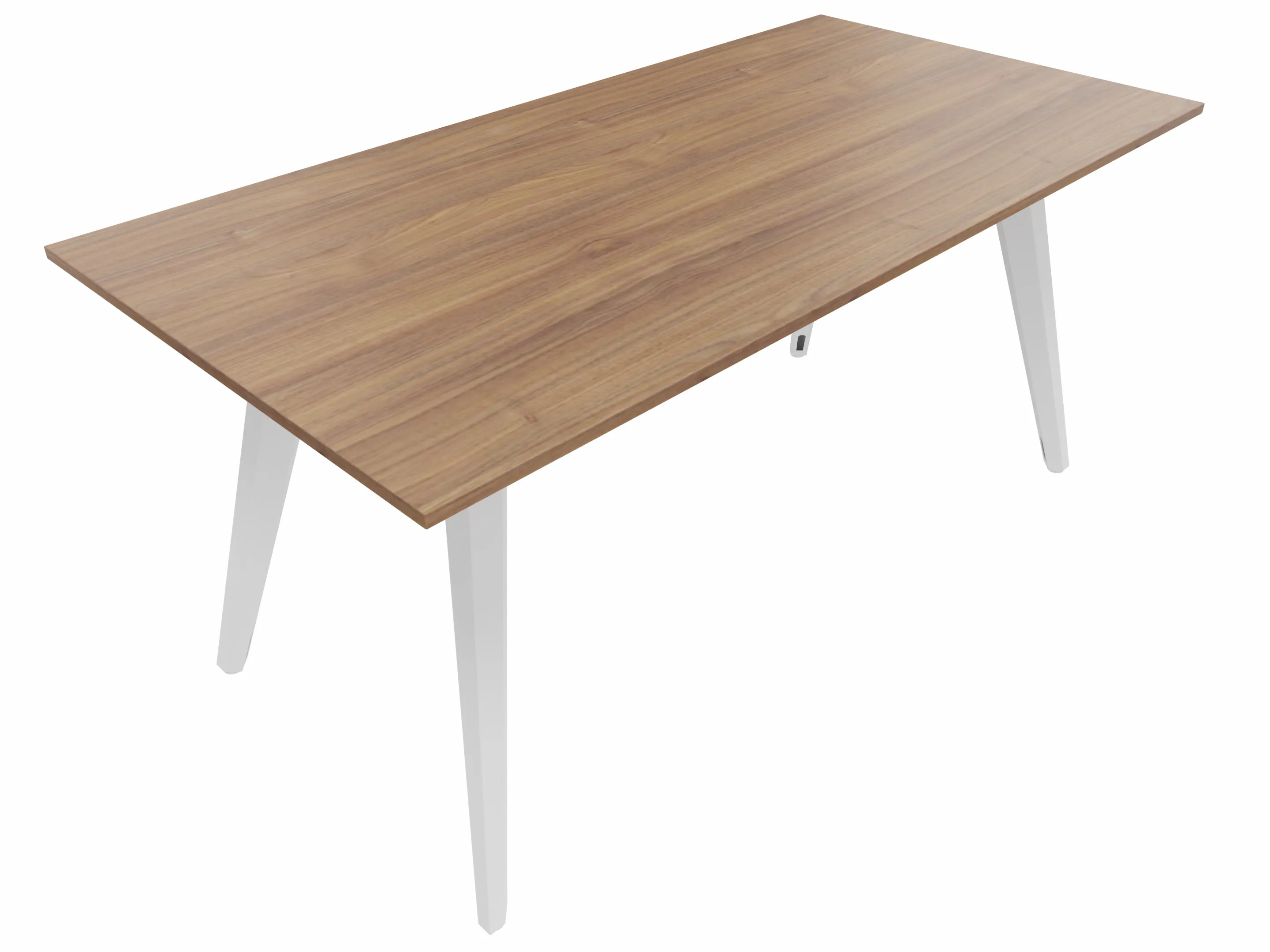 Vergadertafel met 4 schuine poten met kabelvoorziening en een rechthoekig blad. Afmeting: 1600 x 800 x 740mm (BxHxD)
