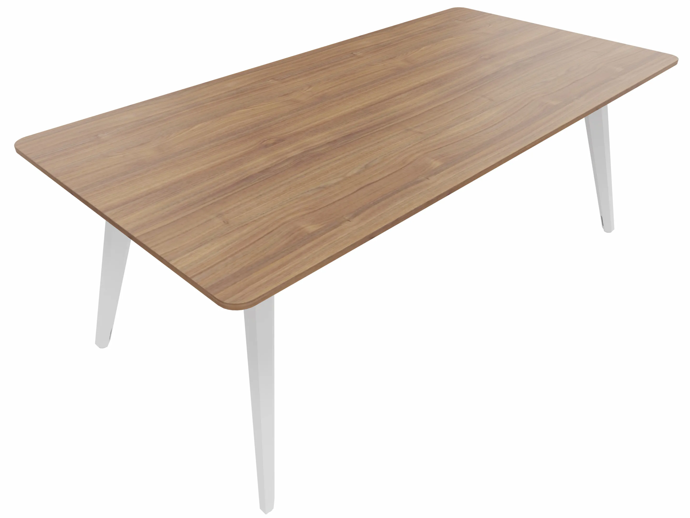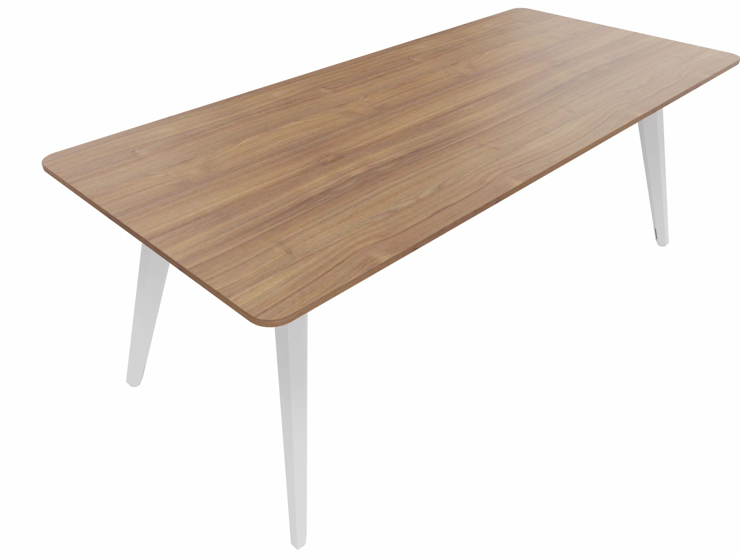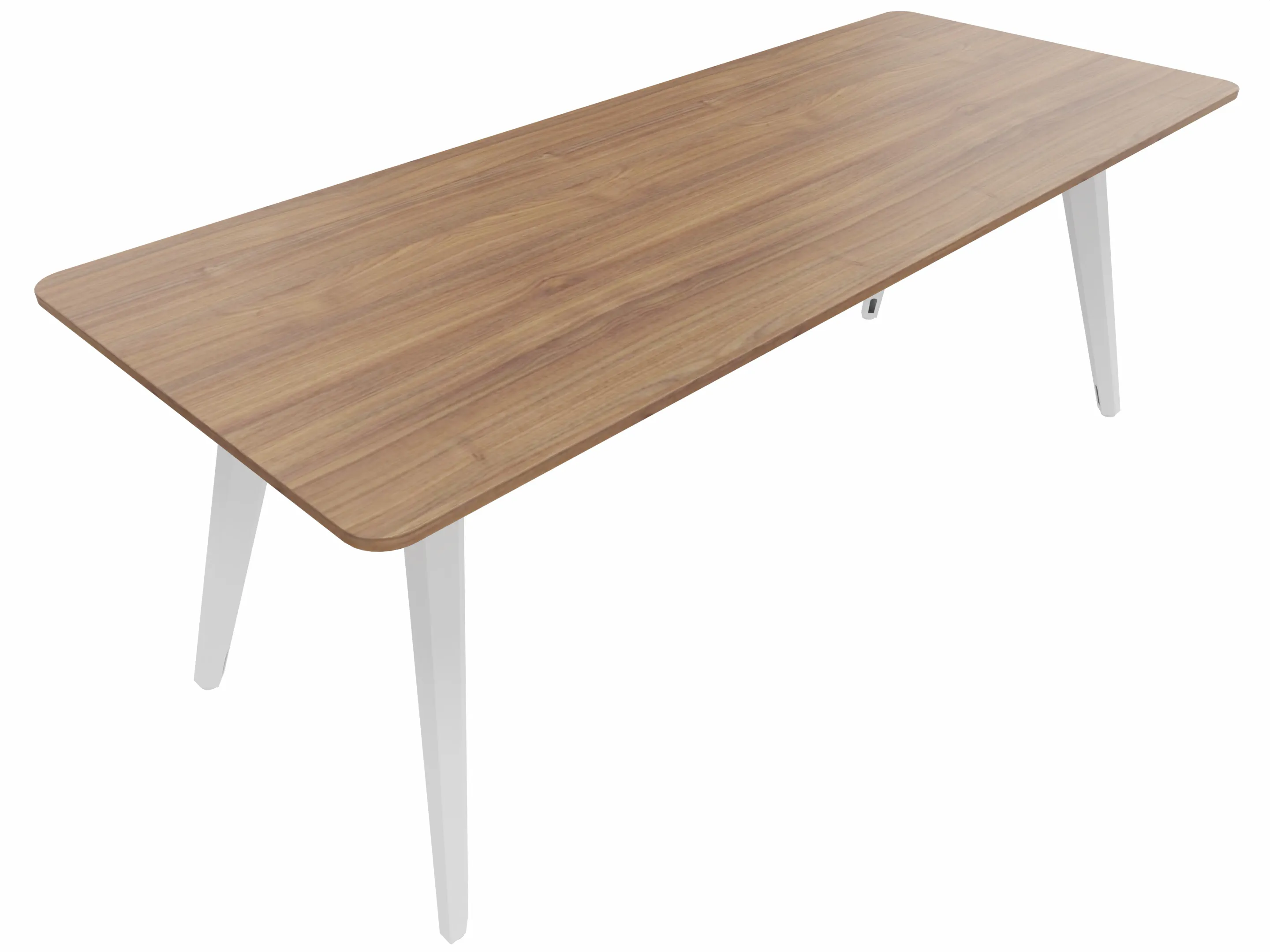 Vergadertafel met 4 schuine poten met kabelvoorziening en een rechthoekig blad. Afmeting: 2000 x 900 x 740mm (BxHxD)