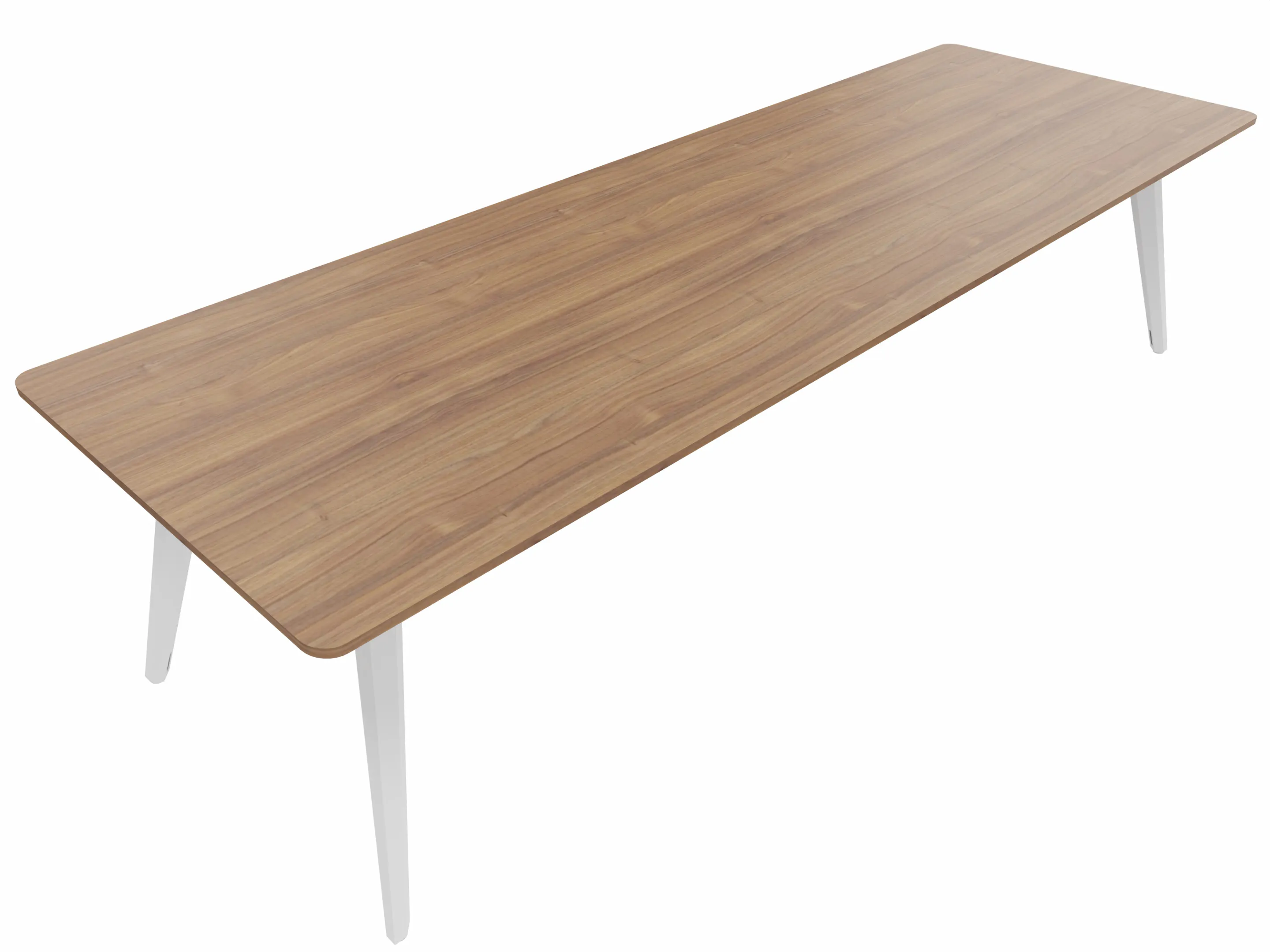 Vergadertafel met 4 schuine poten met kabelvoorziening en een rechthoekig blad. Afmeting: 3000 x 1000 x 740mm (BxHxD)