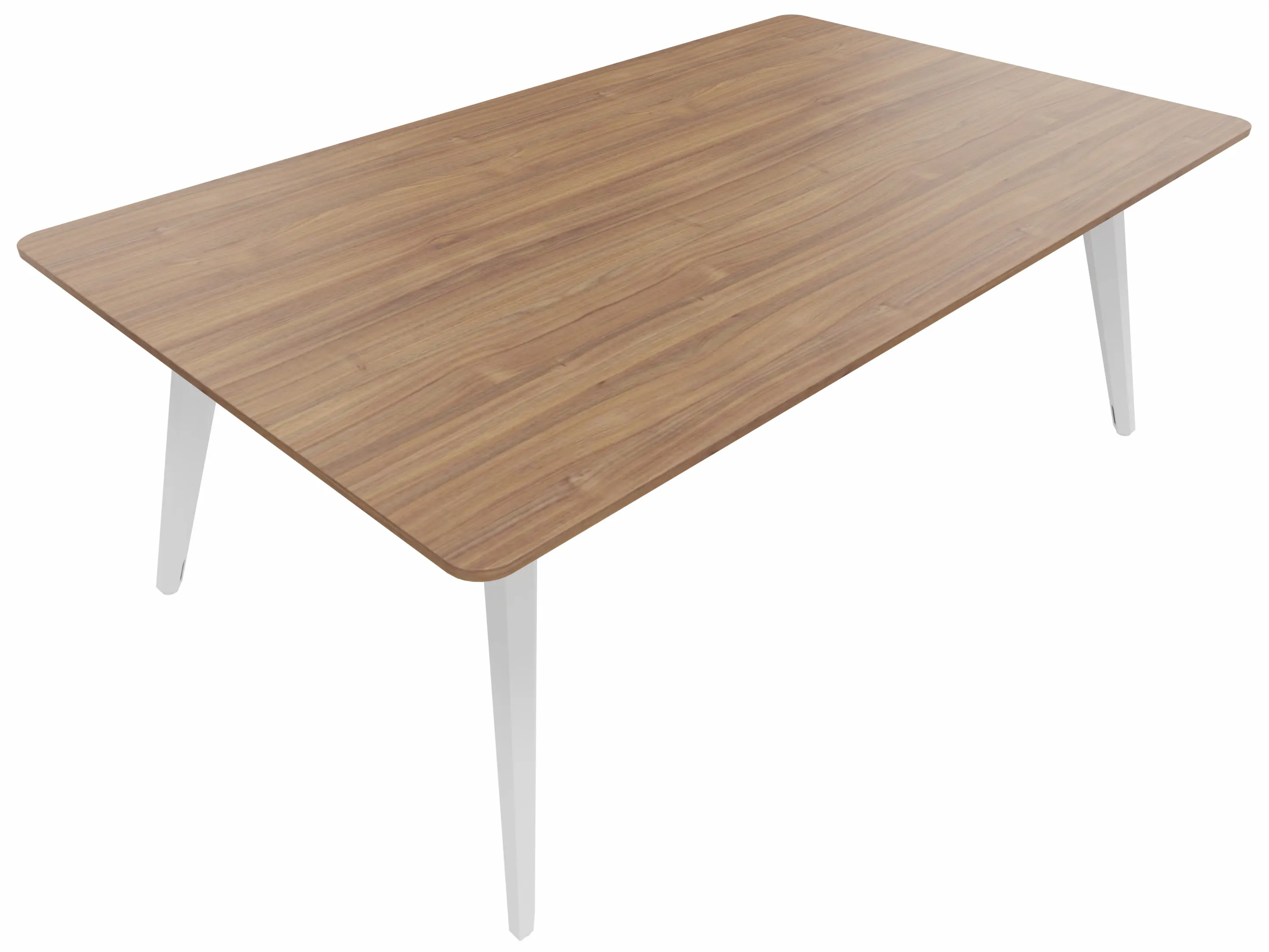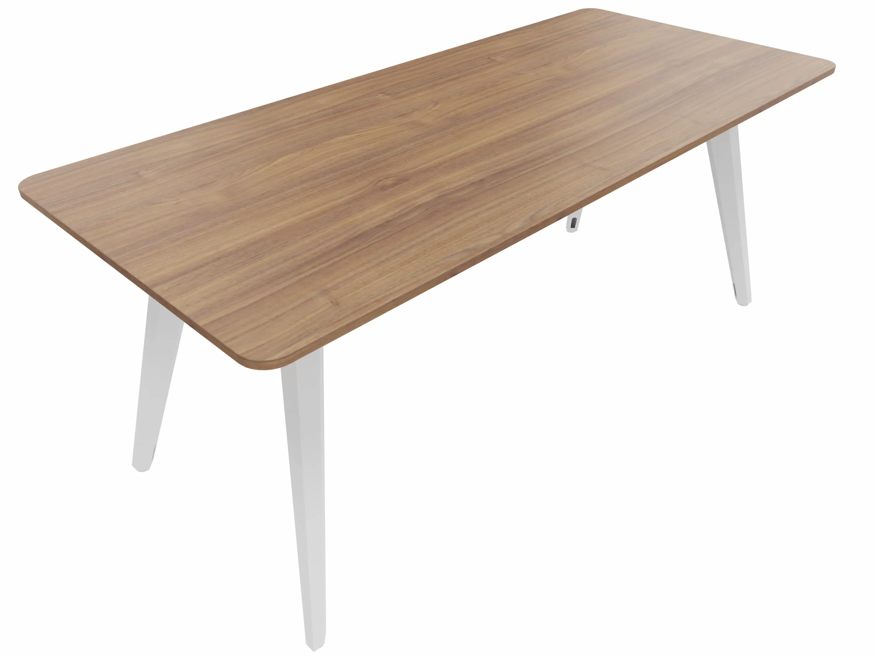 Vergadertafel met 4 schuine poten met kabelvoorziening en een rechthoekig blad. Afmeting: 2000 x 1000 x 740mm (BxHxD)