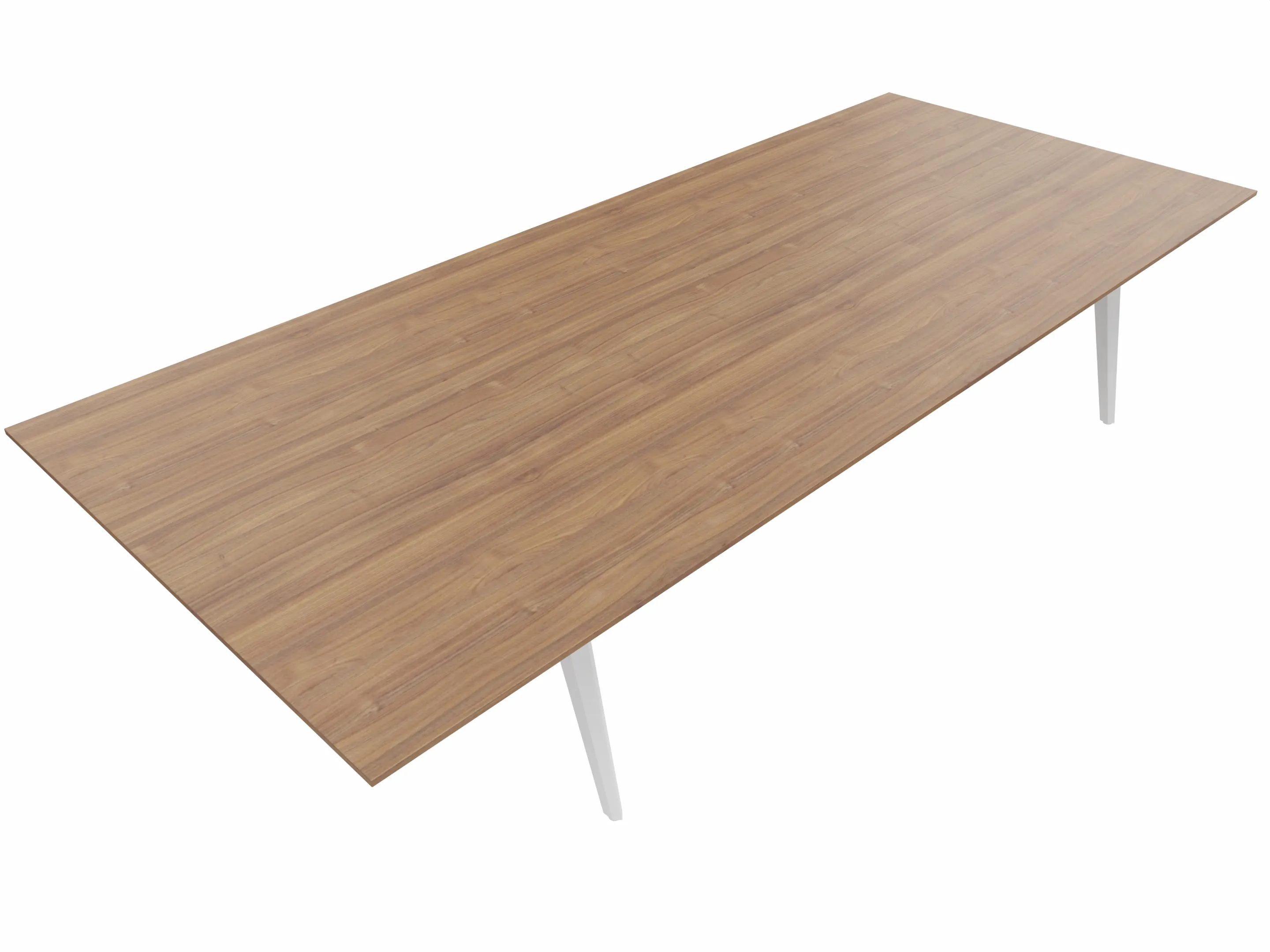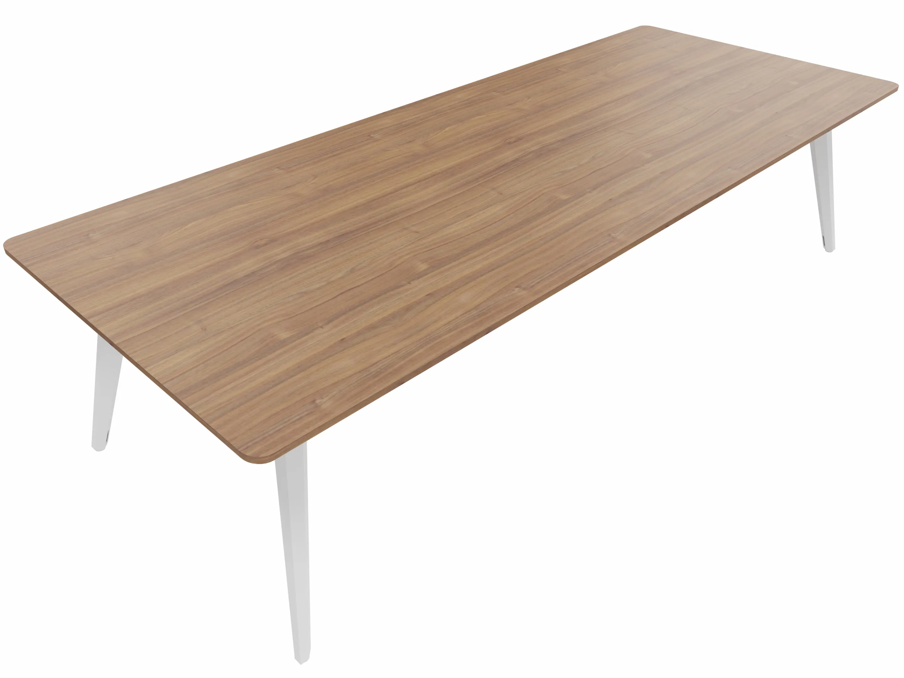 Vergadertafel met 4 schuine poten met kabelvoorziening en een rechthoekig blad. Afmeting: 3000 x 1200 x 740mm (BxHxD)