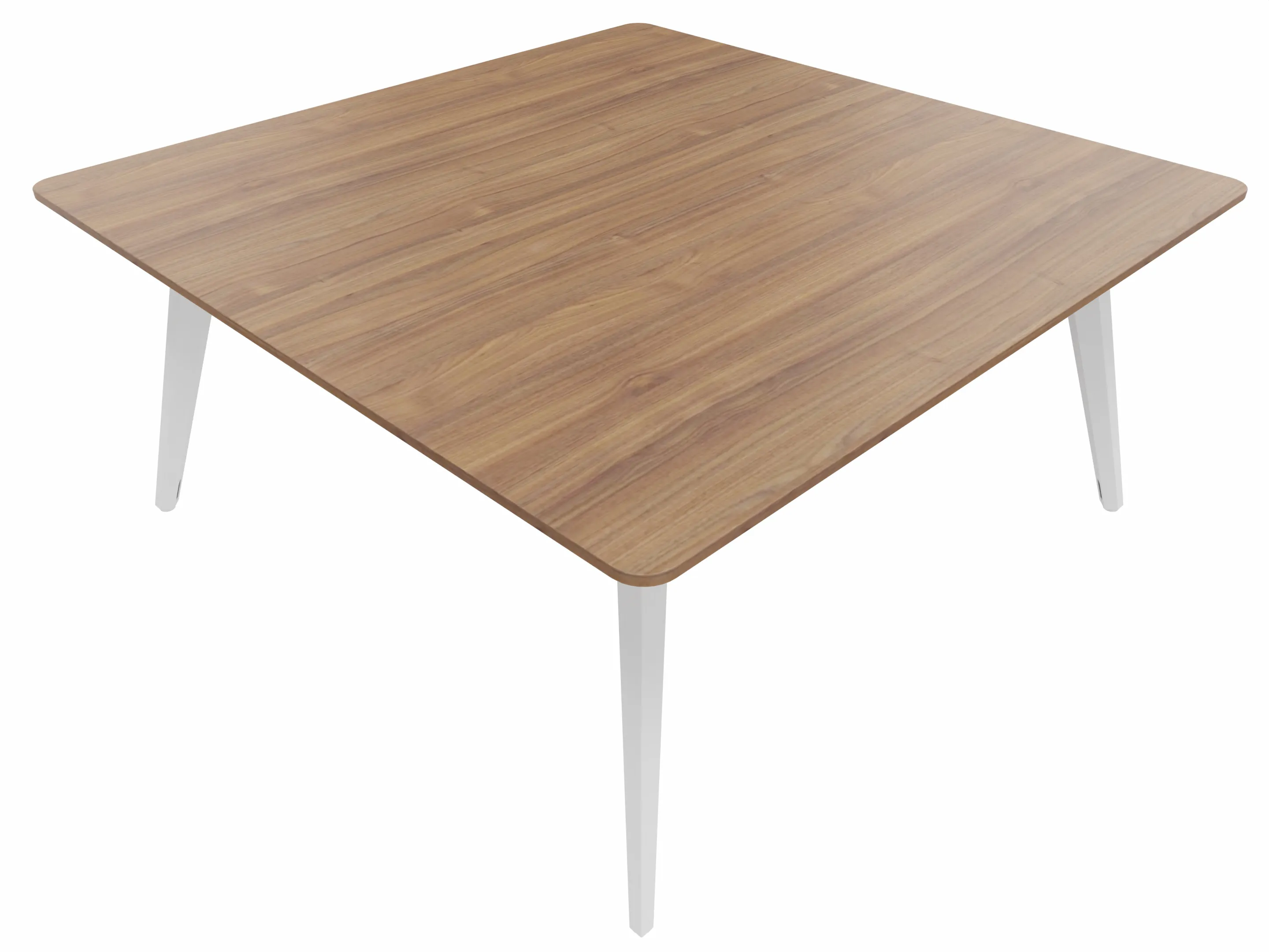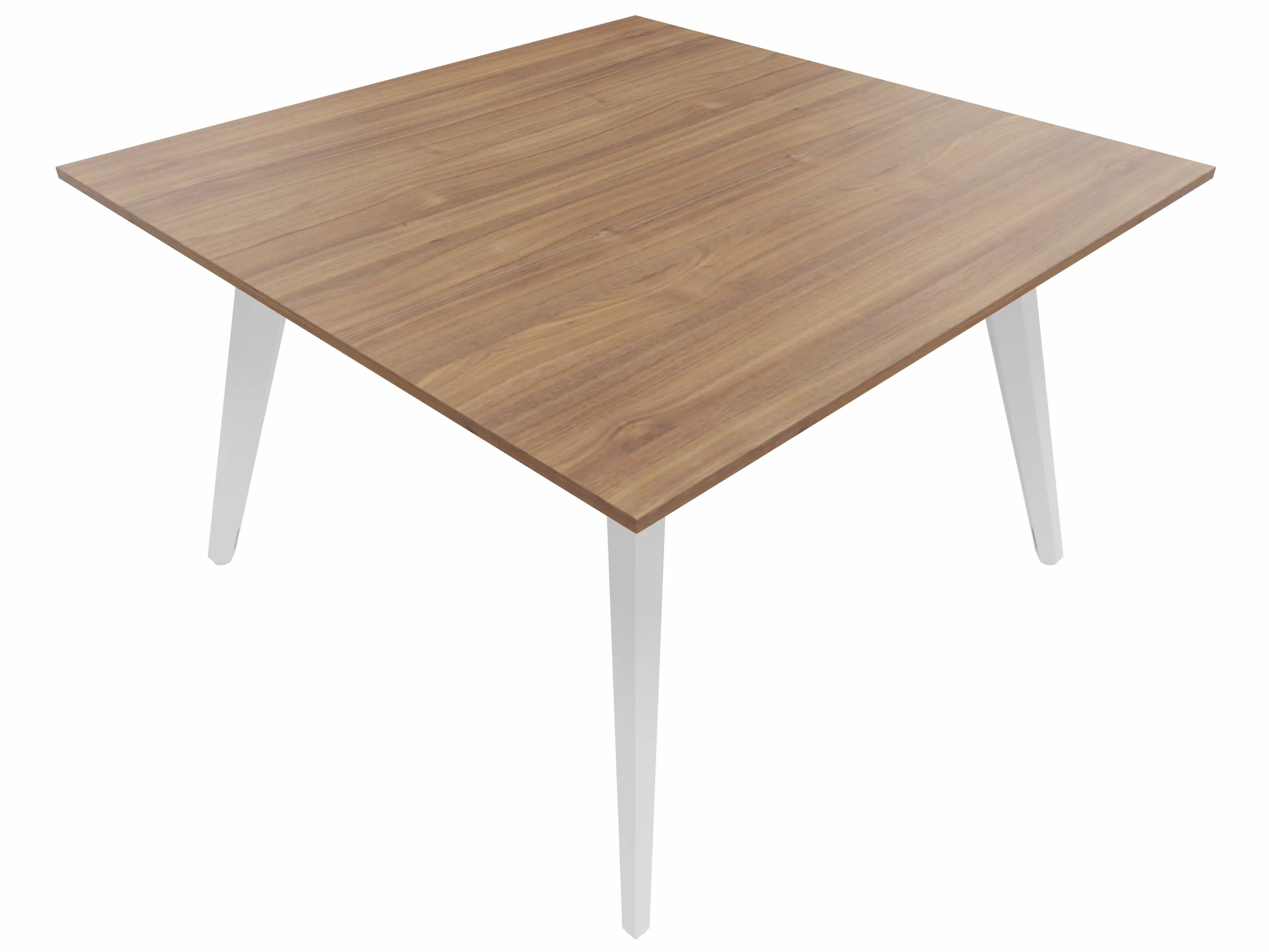 Vergadertafel met 4 schuine poten met kabelvoorziening en een vierkant blad. Afmeting: 1400 x 1400 x 740mm (BxHxD)