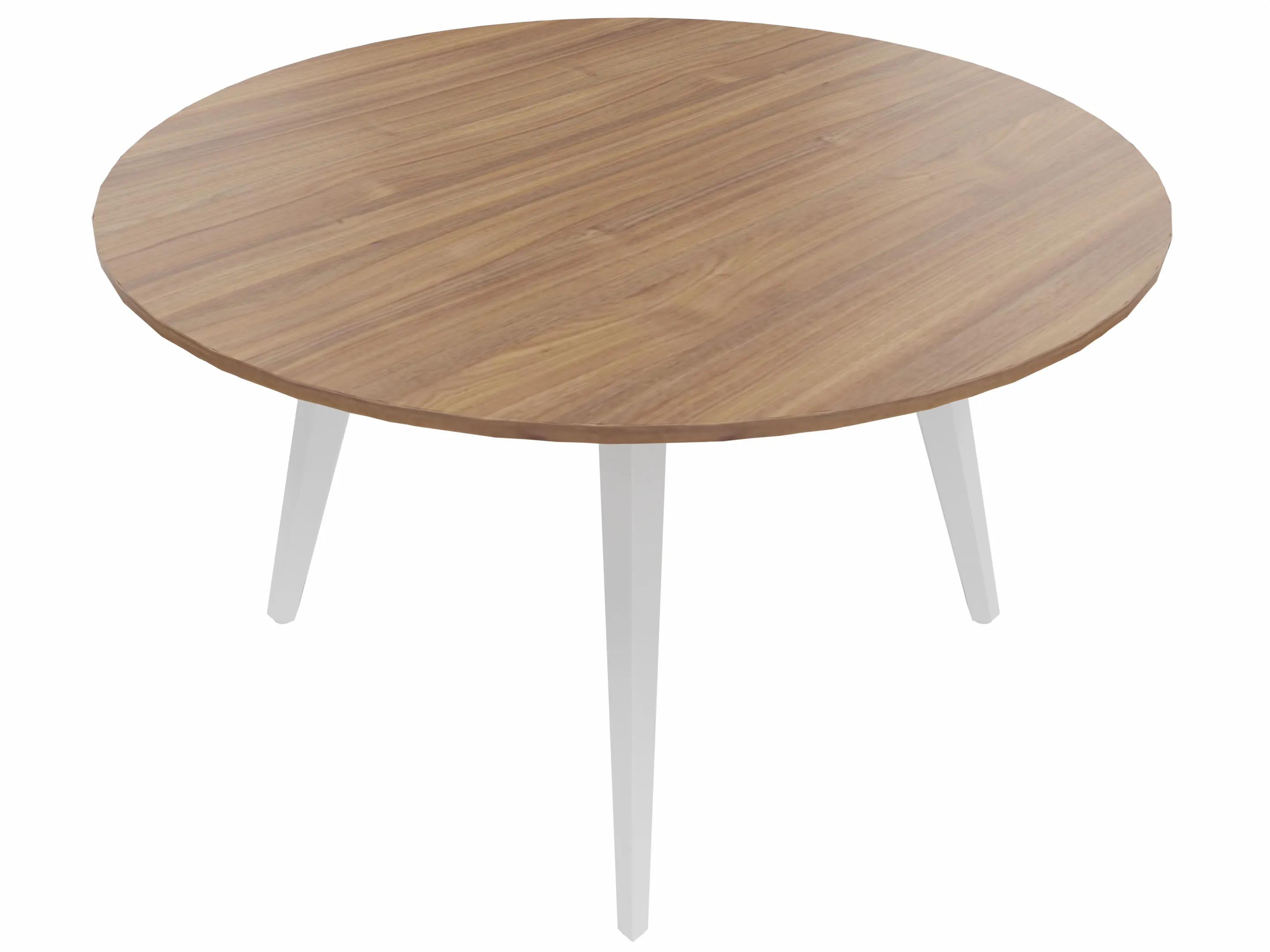 Vergadertafel met 4 schuine poten met kabelvoorziening en een rond blad. Afmeting: 1200 x 1200 x 740mm (BxHxD)