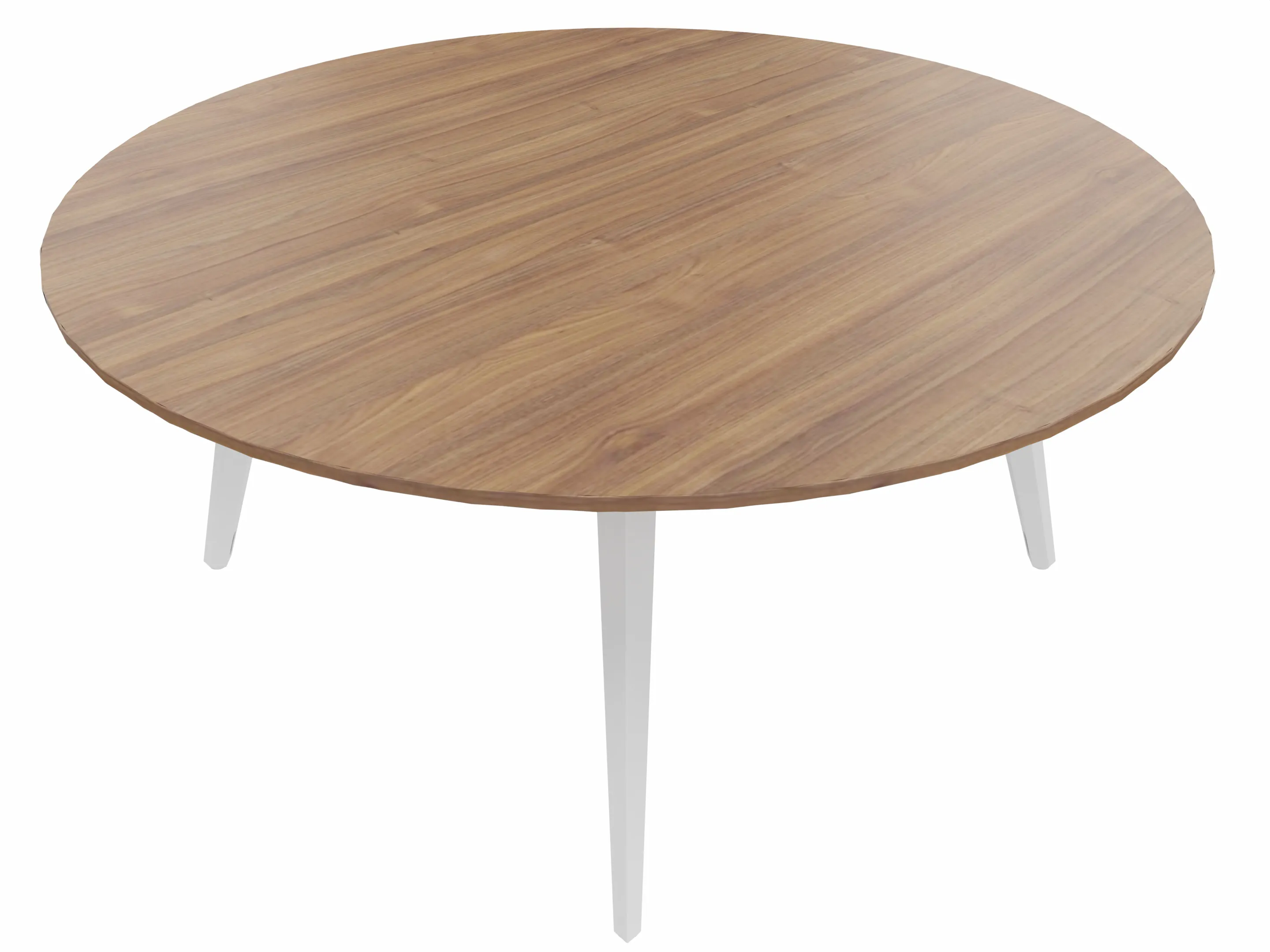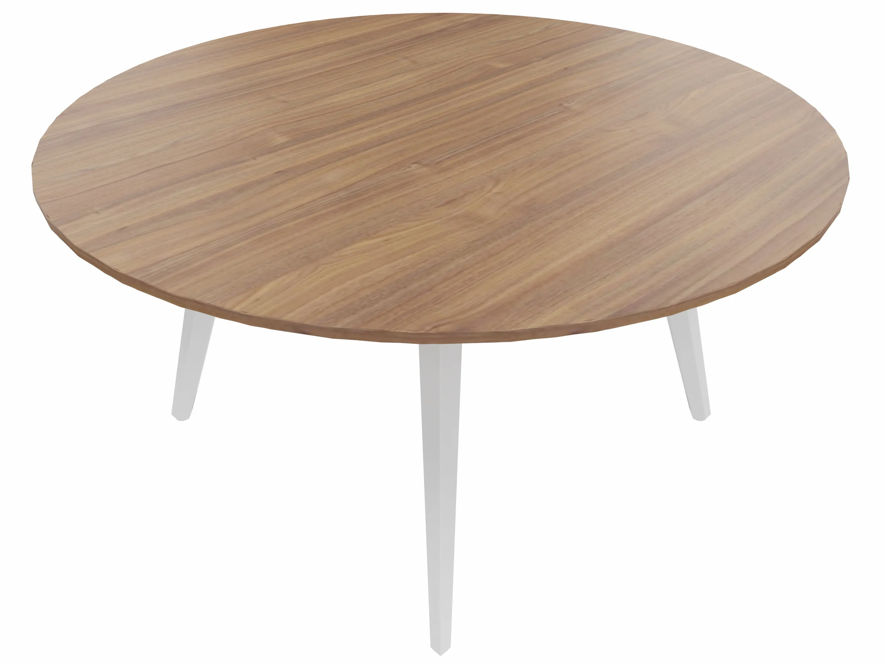 Vergadertafel met 4 schuine poten met kabelvoorziening en een rond blad. Afmeting: 1400 x 1400 x 740mm (BxHxD)