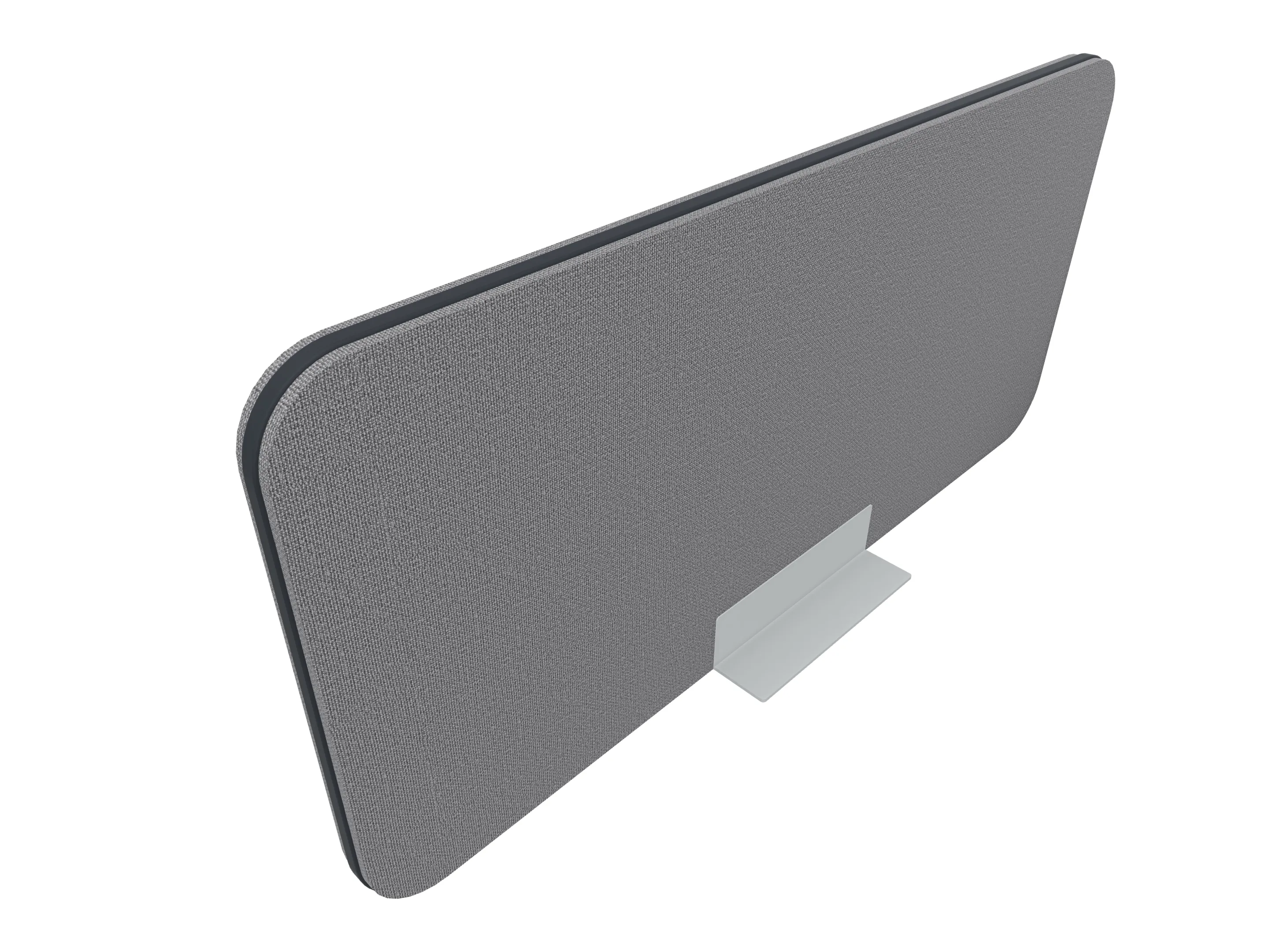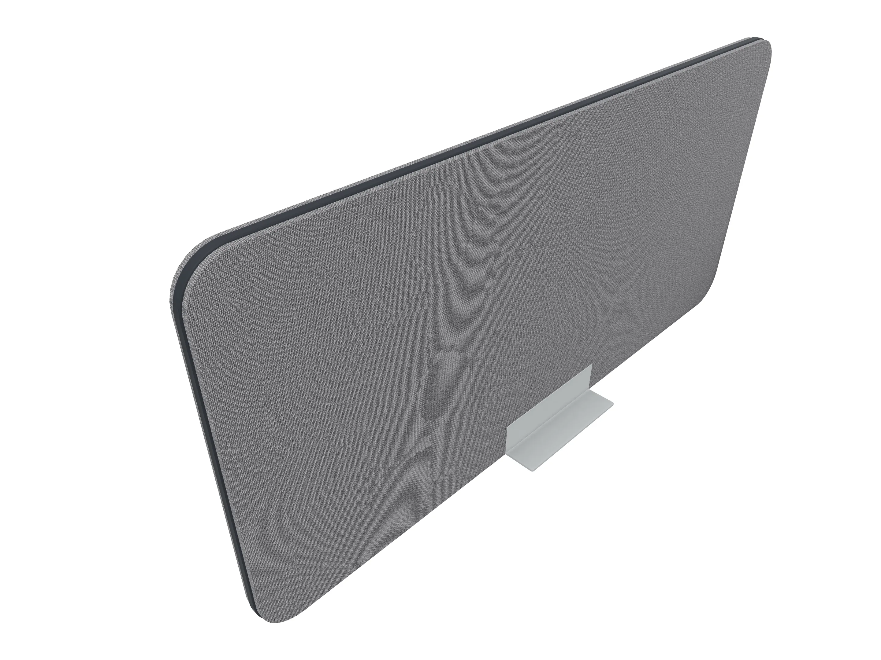Akoestisch paneel met ronde hoeken, volledig gestoffeerd, kanten voorzien van rubberen band. Afmeting: 800 x 370 x 27mm (BxDxH)