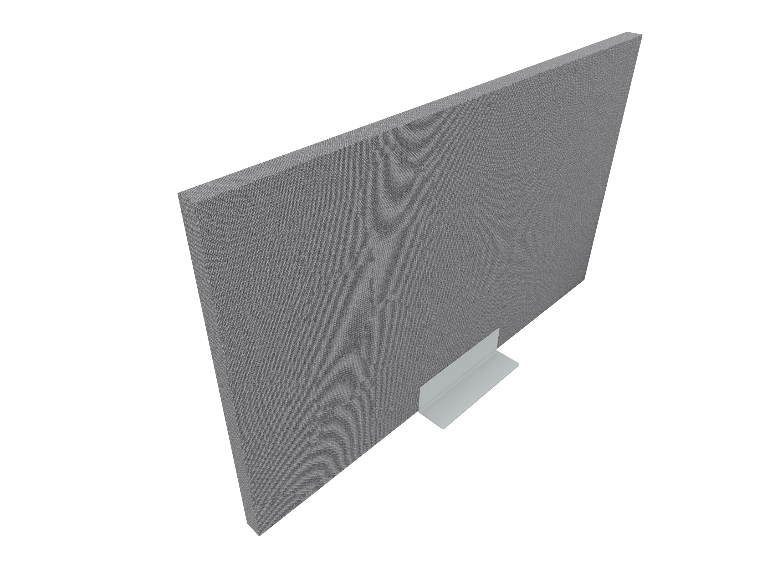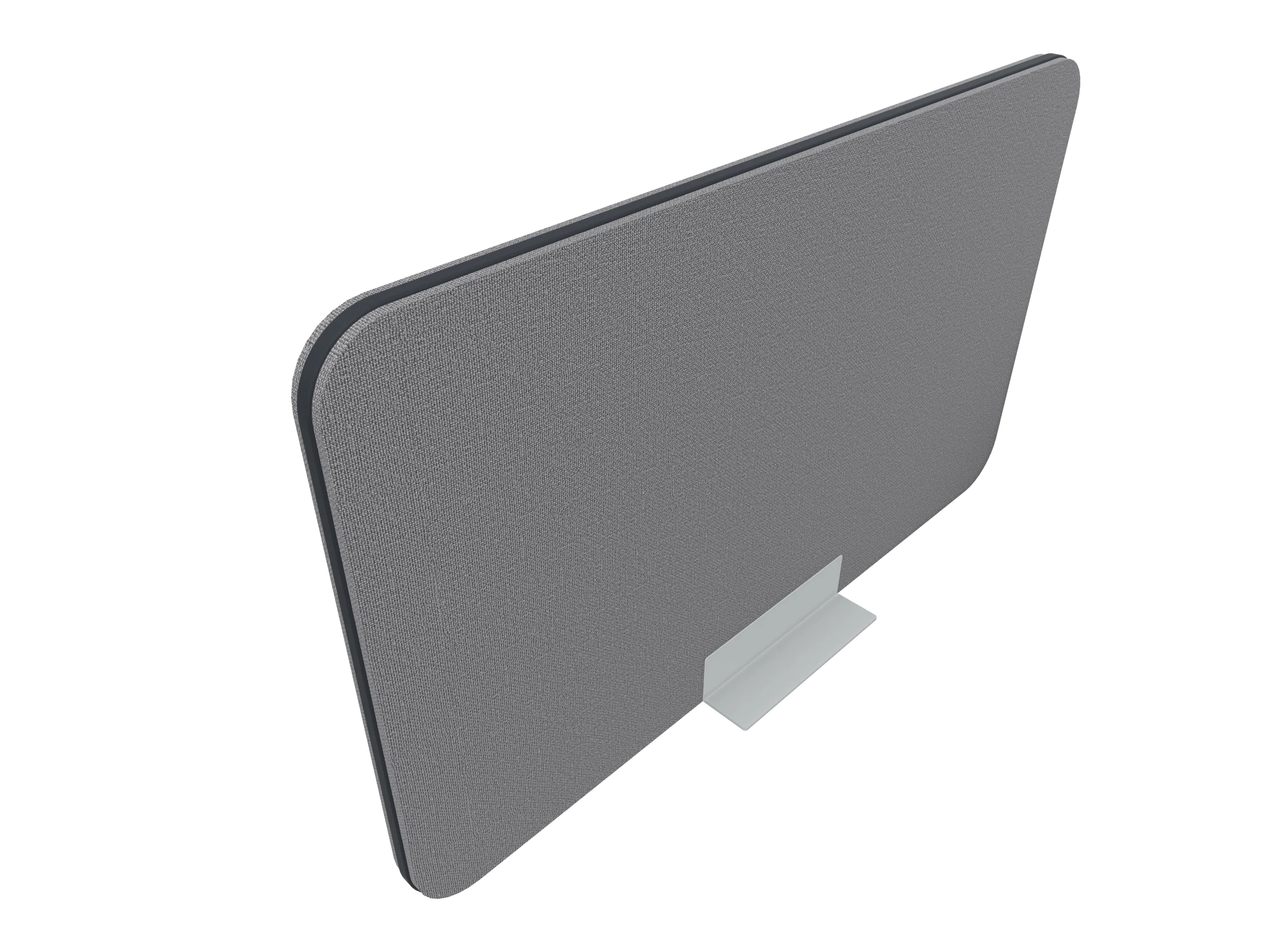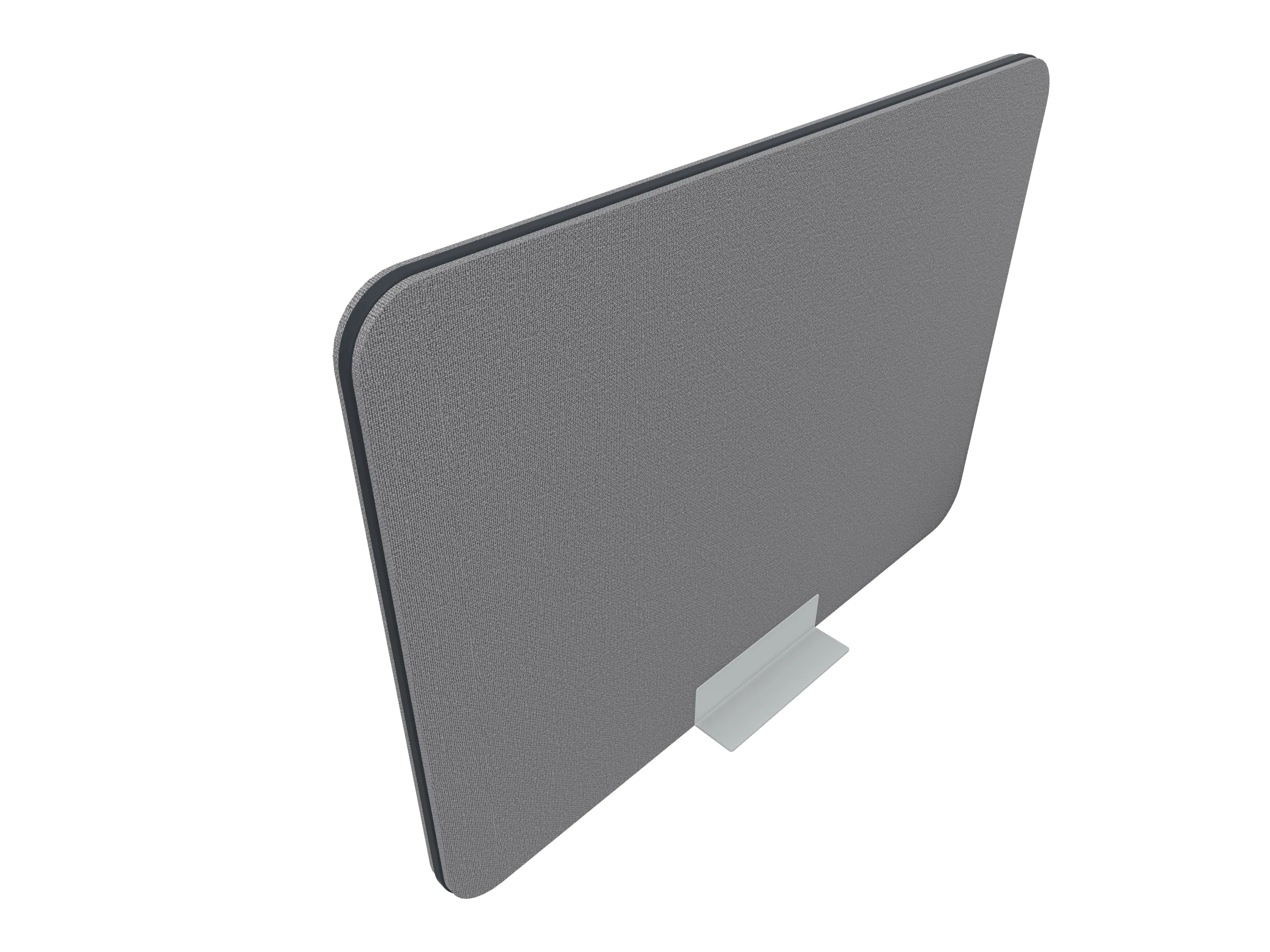 Akoestisch paneel met ronde hoeken, volledig gestoffeerd, kanten voorzien van rubberen band. Afmeting: 800 x 570 x 27mm (BxDxH)