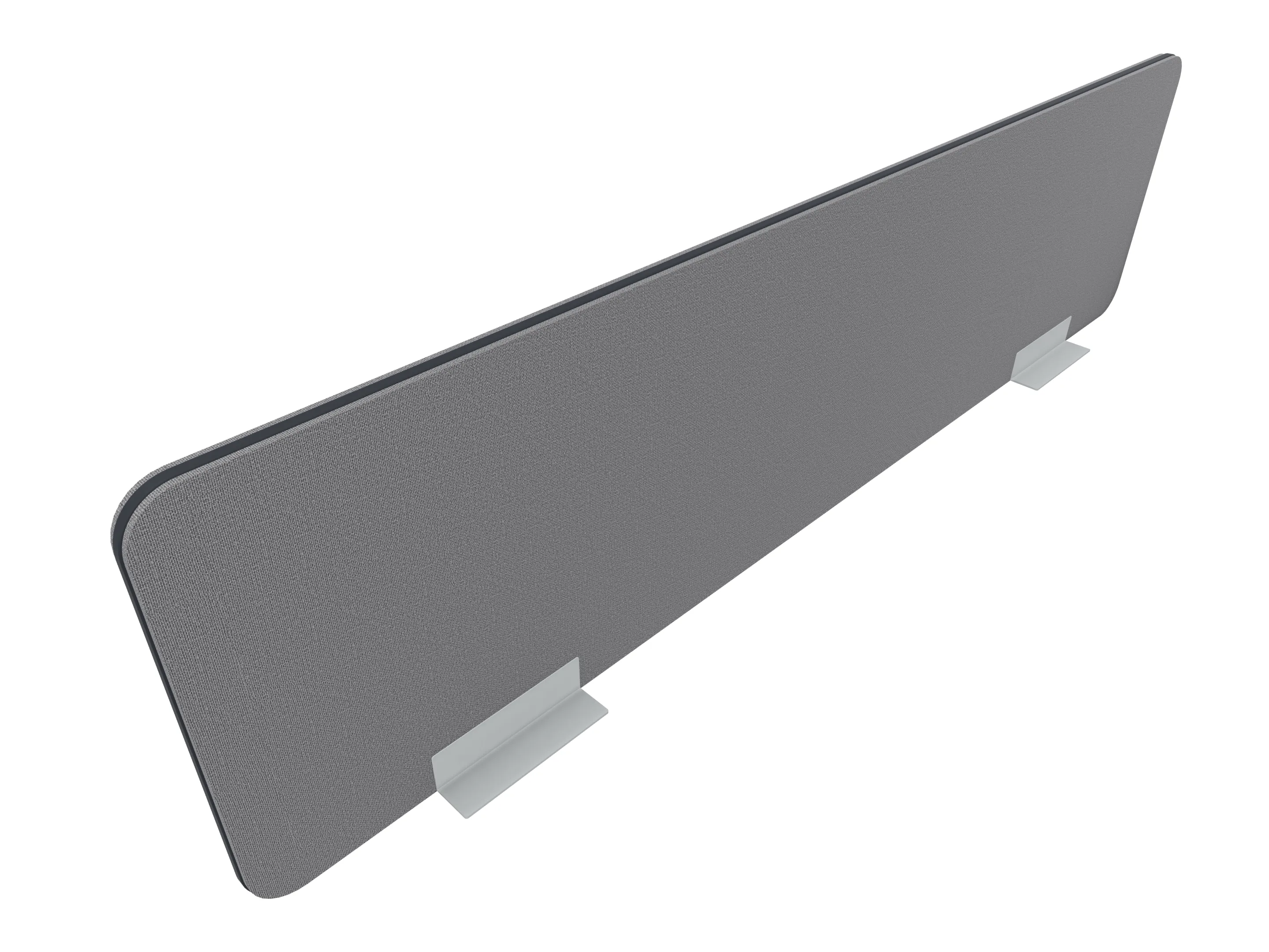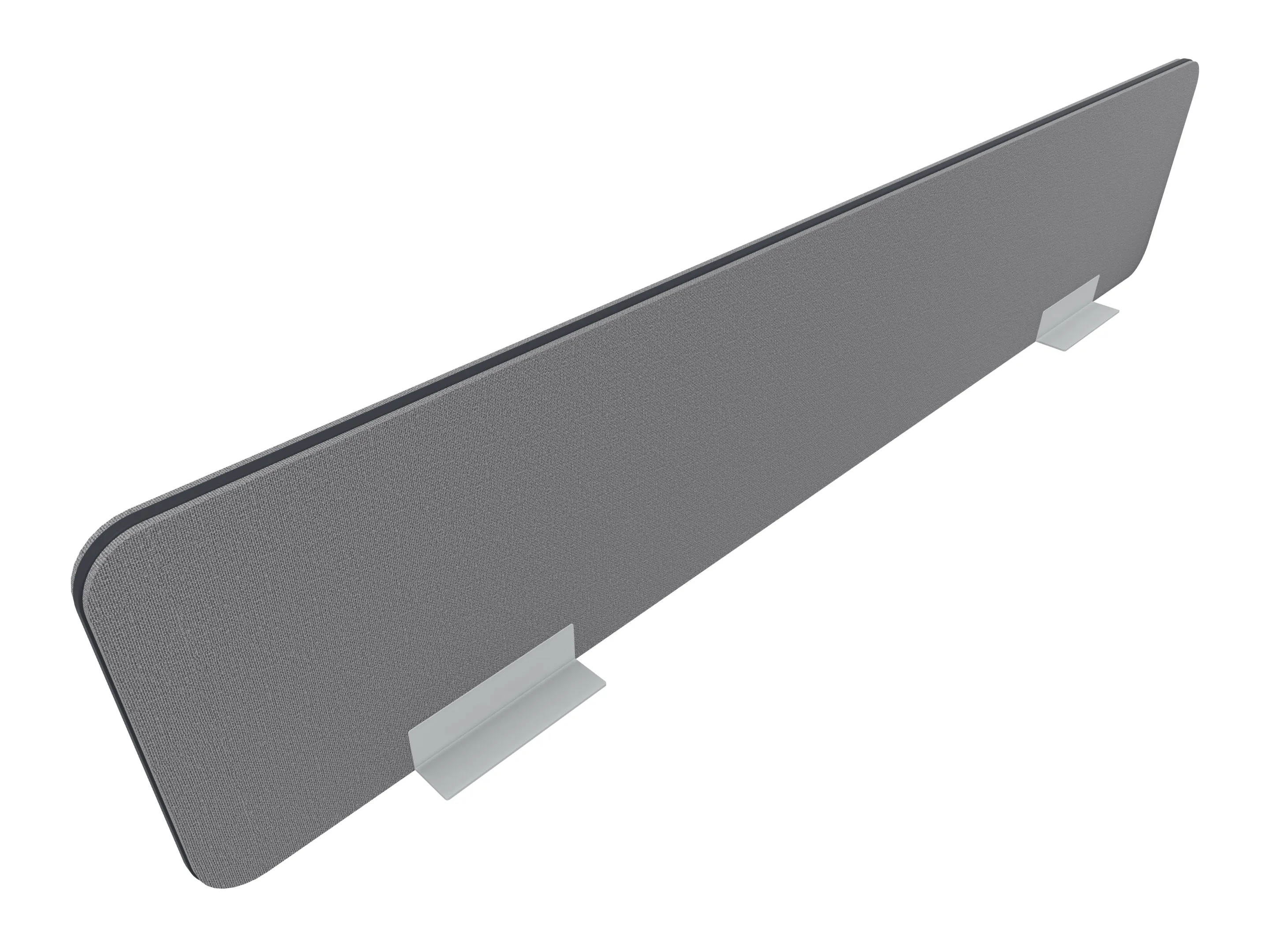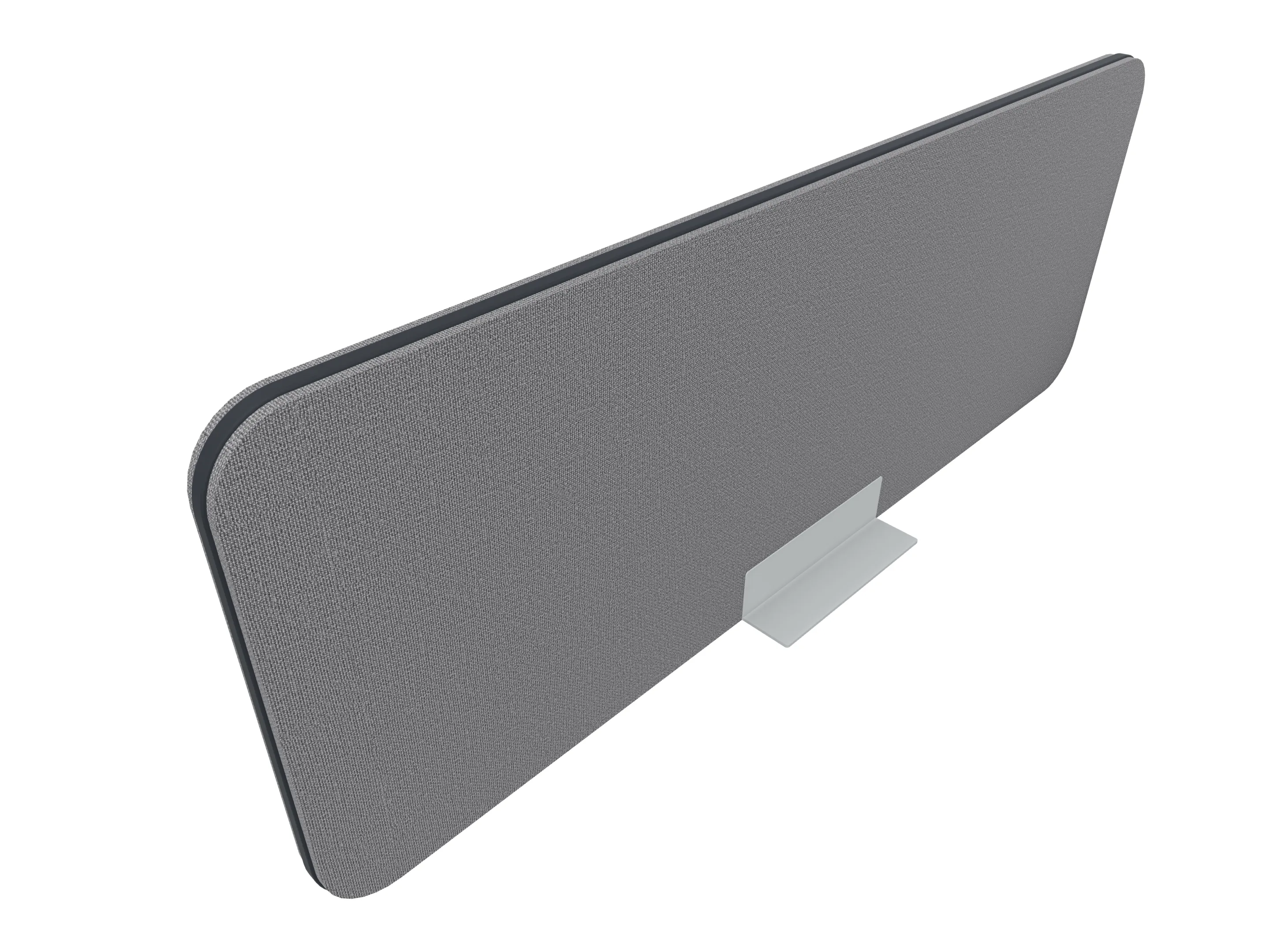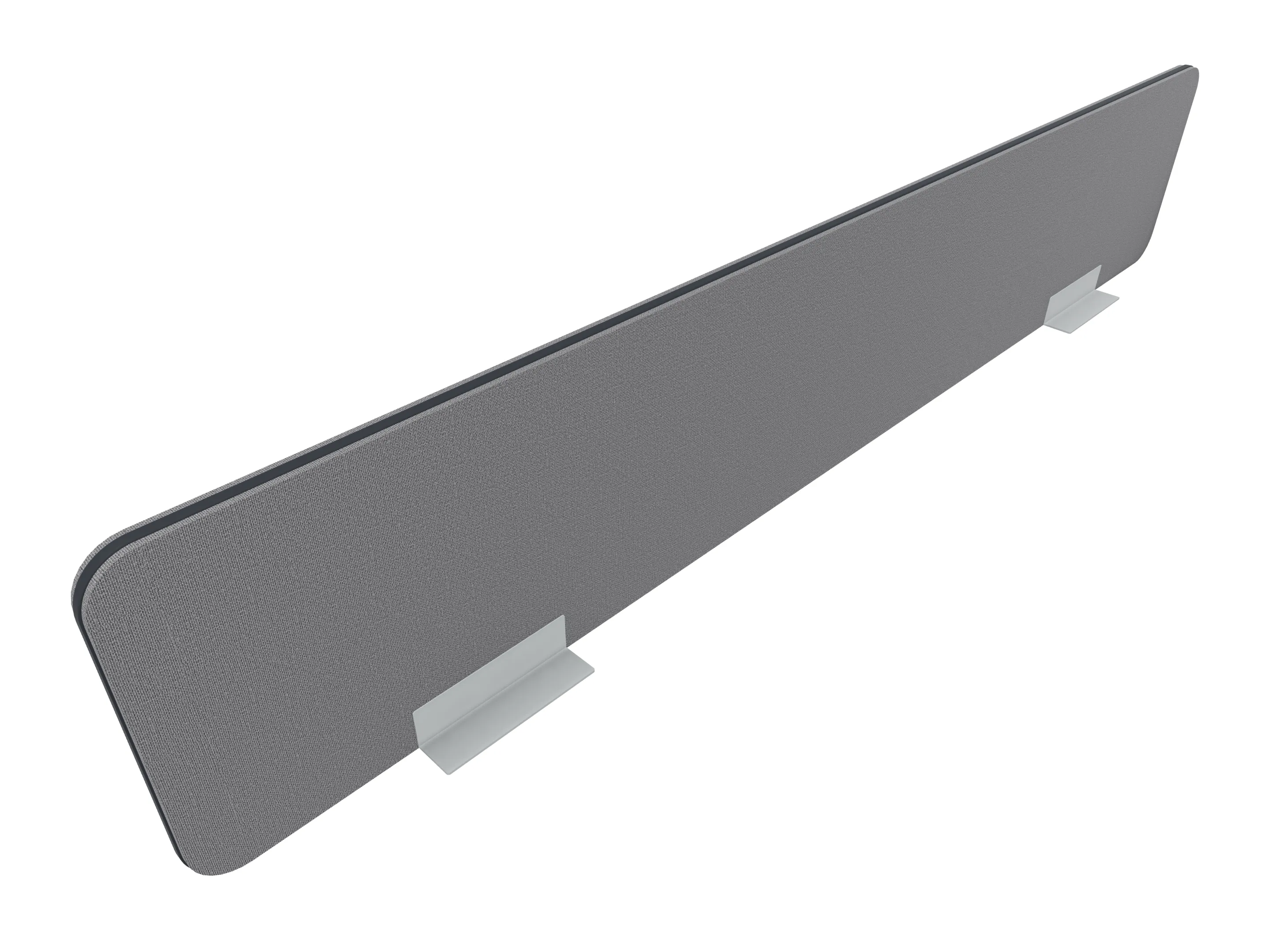 Akoestisch paneel met ronde hoeken, volledig gestoffeerd, kanten voorzien van rubberen band. Afmeting: 1600 x 470 x 27mm (BxDxH)