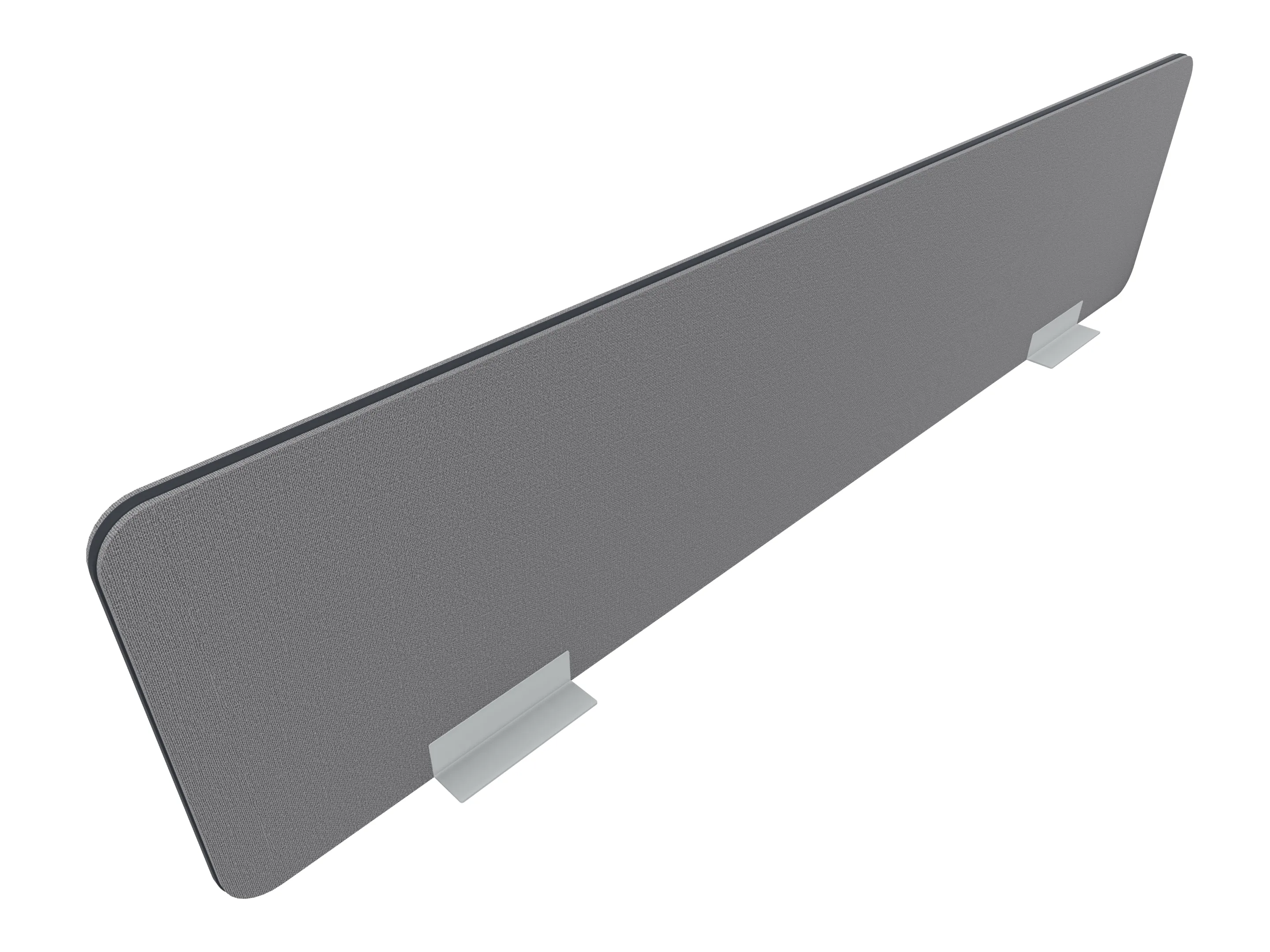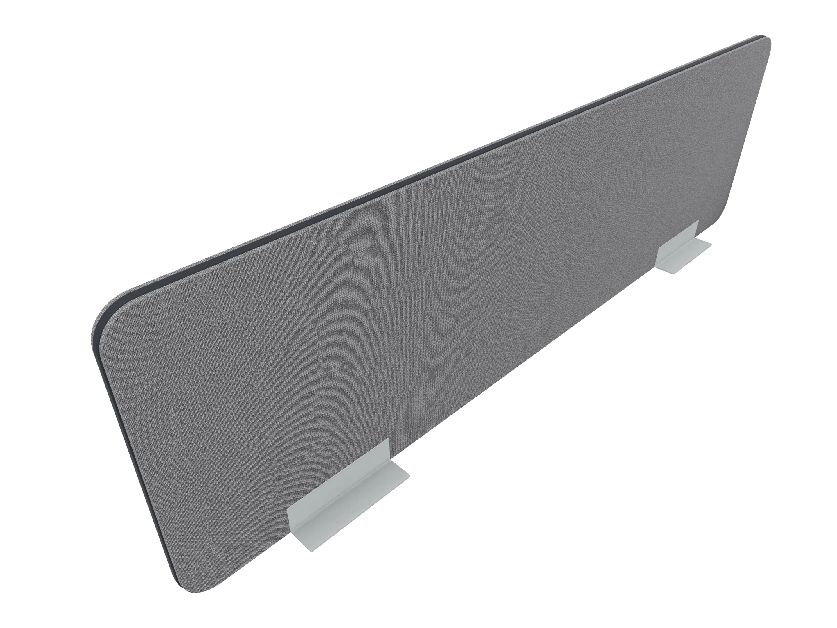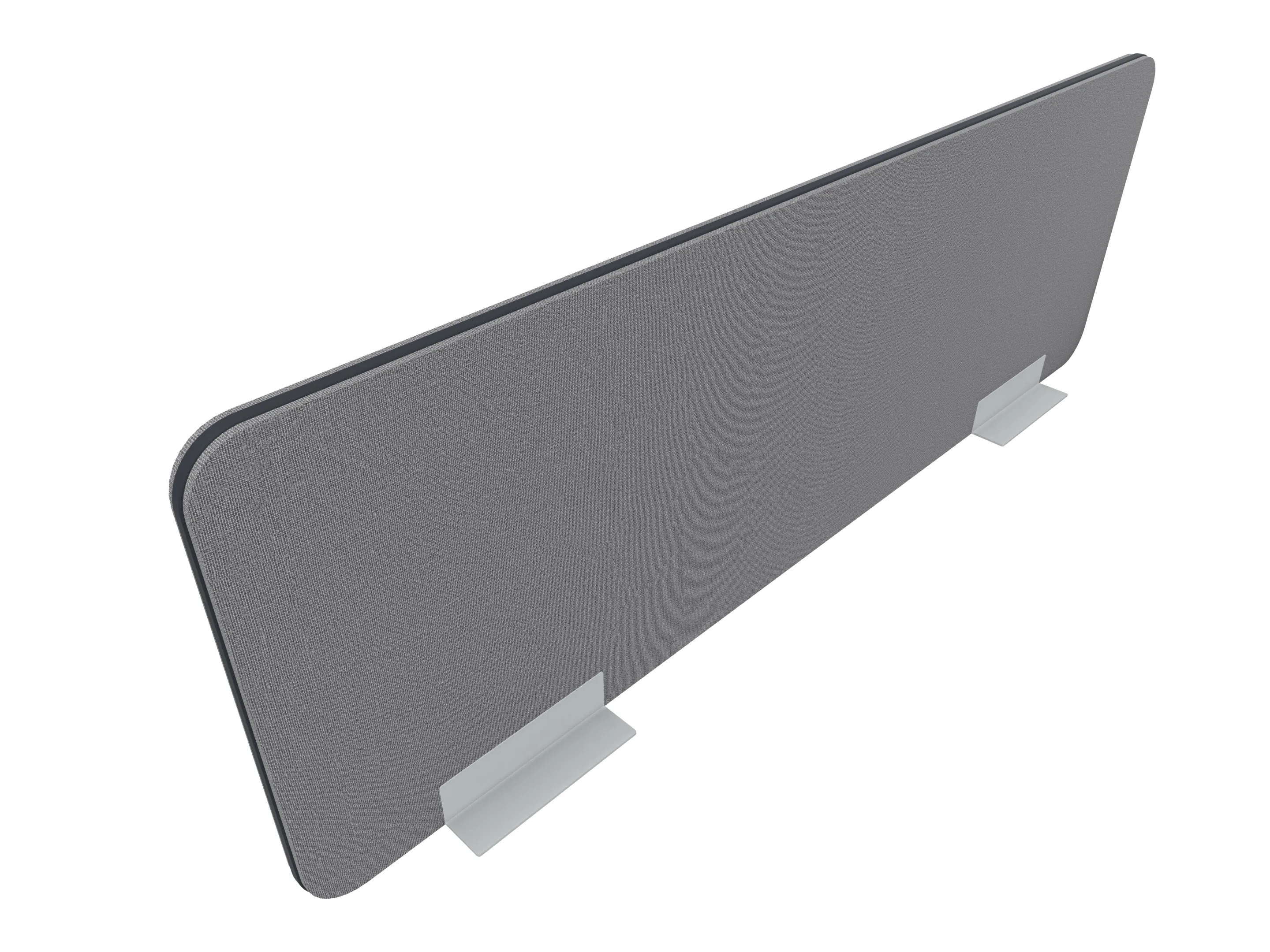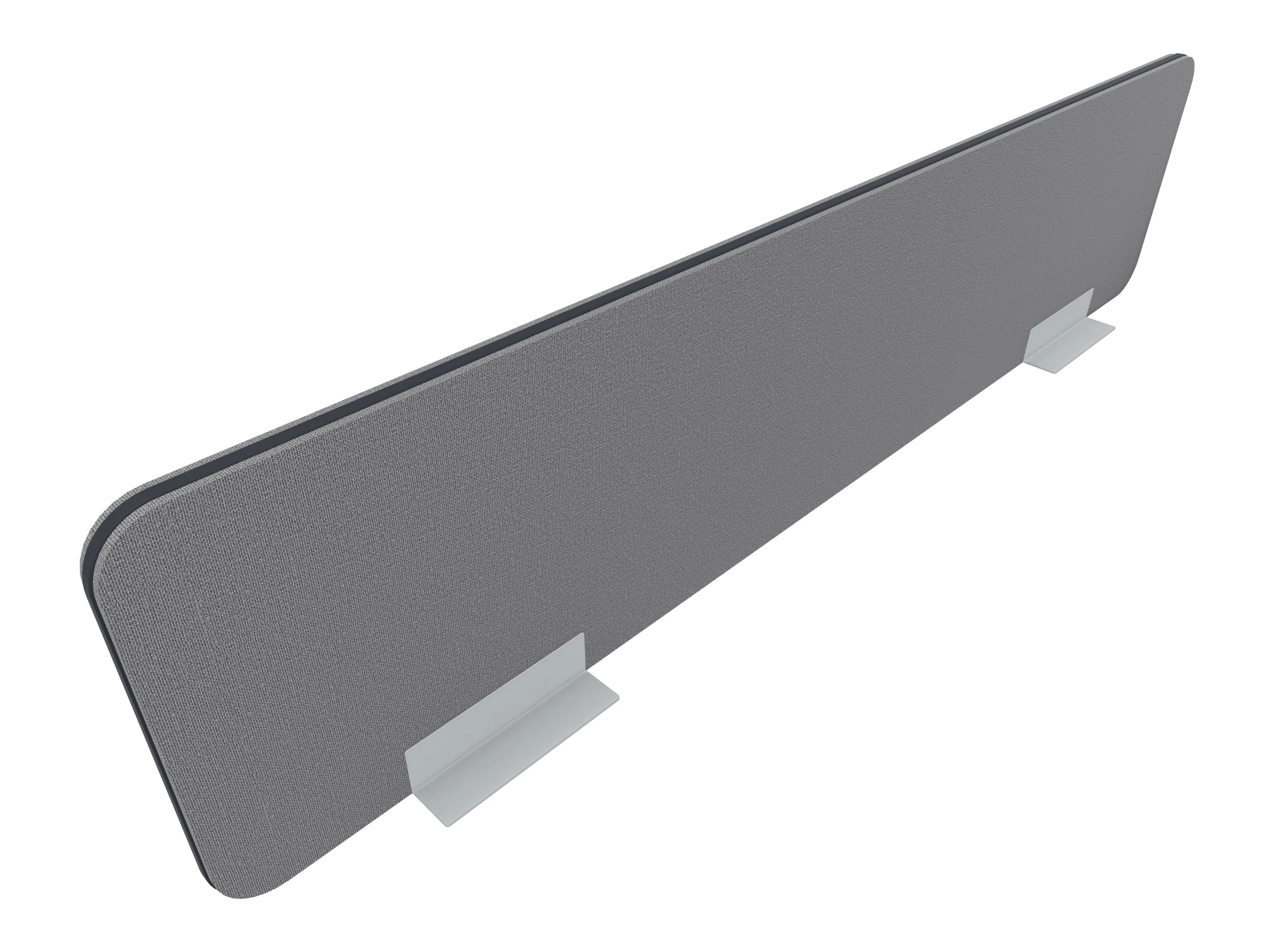 Akoestisch paneel met ronde hoeken, volledig gestoffeerd, kanten voorzien van rubberen band. Afmeting: 1600 x 470 x 27mm (BxDxH)