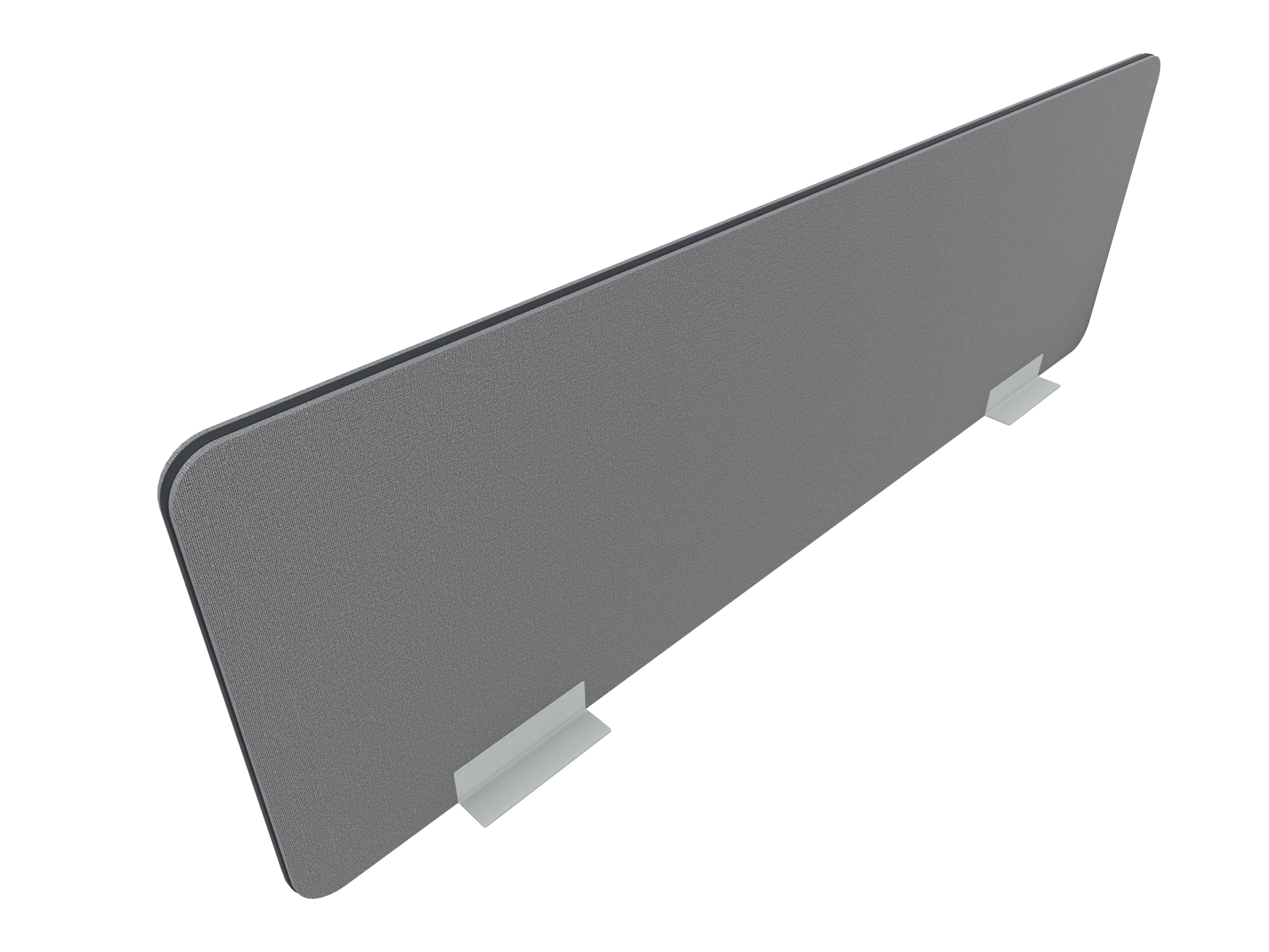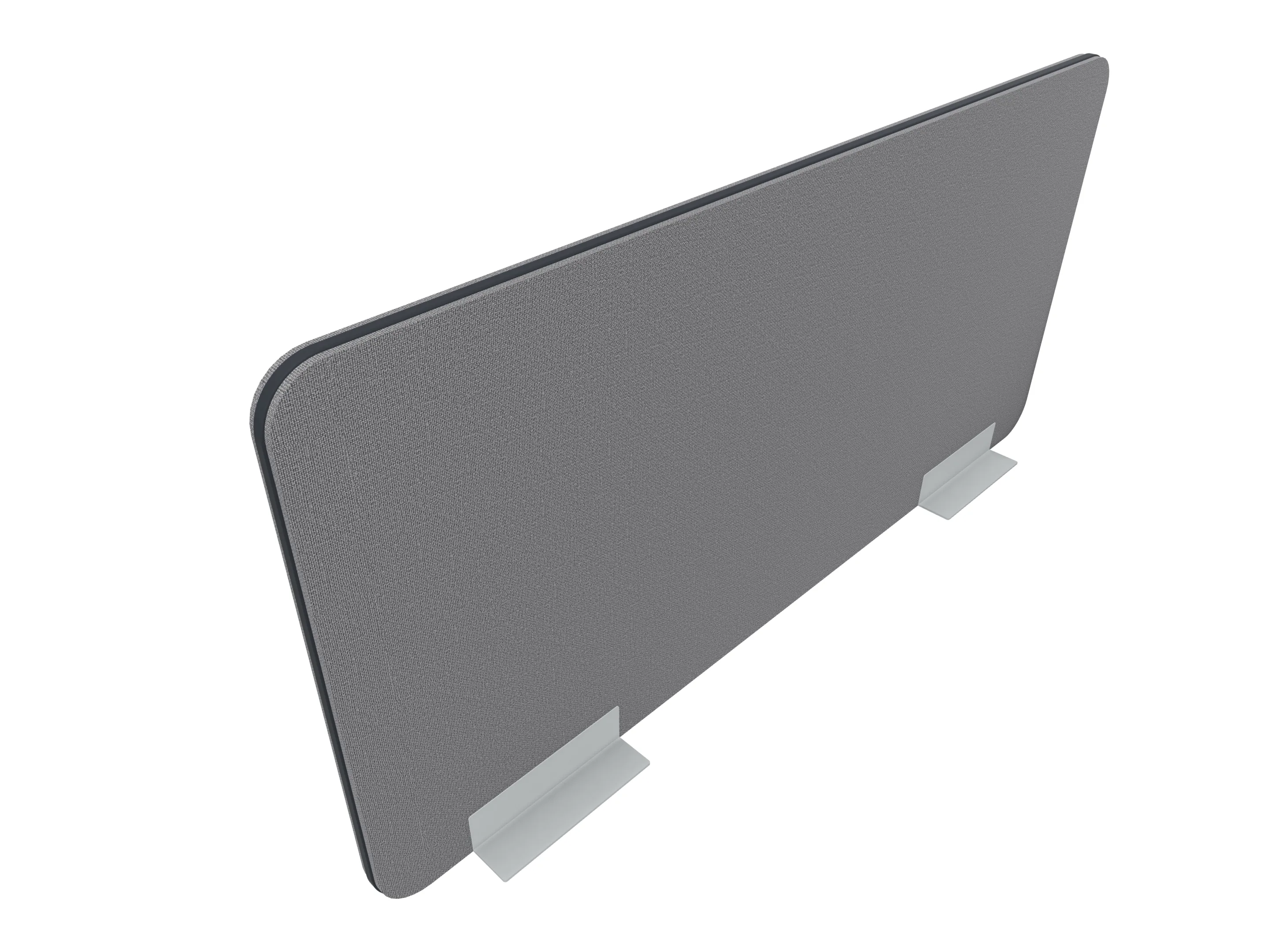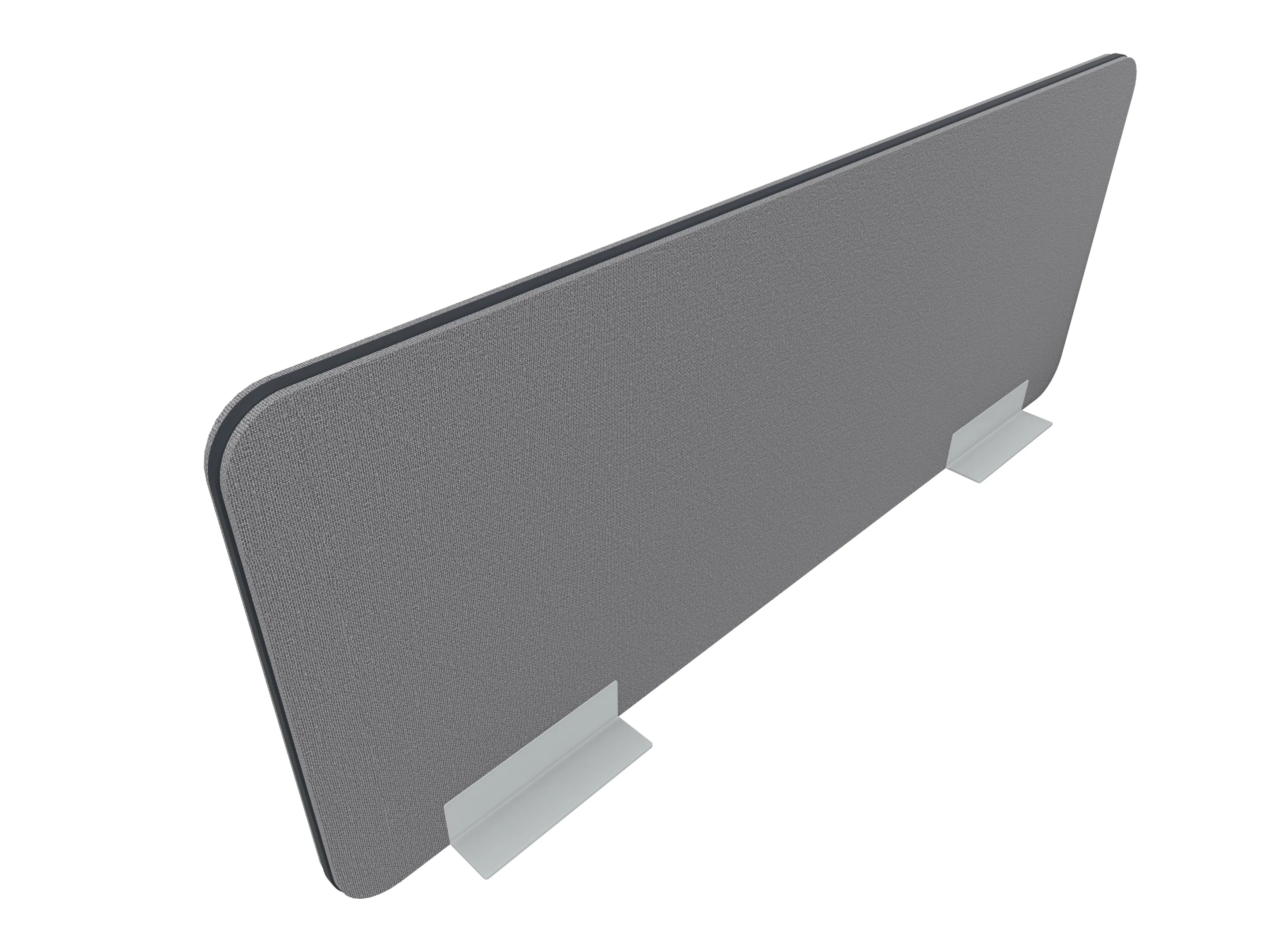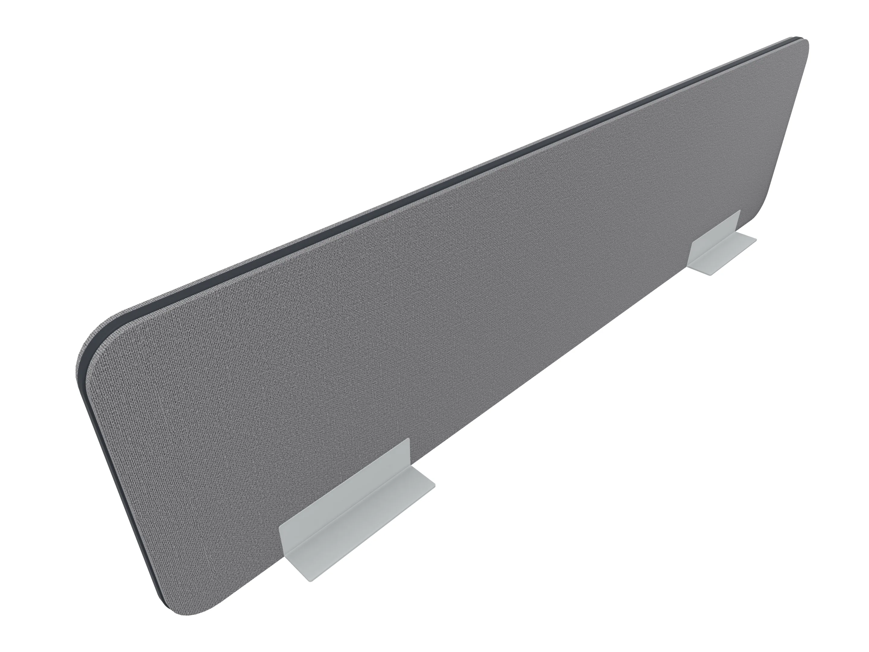 Akoestisch paneel met ronde hoeken, volledig gestoffeerd, kanten voorzien van rubberen band. Afmeting: 1600 x 470 x 27mm (BxDxH)