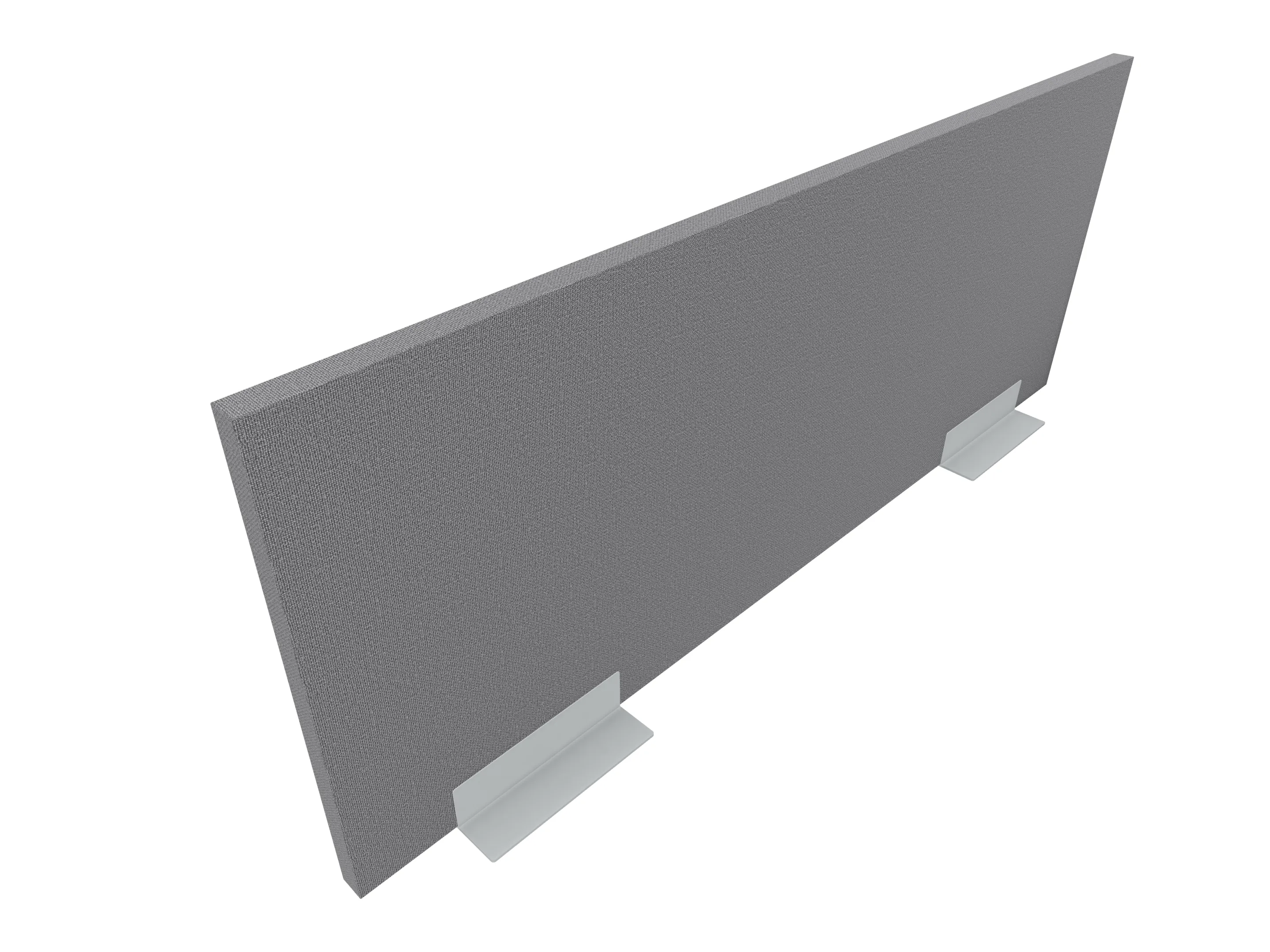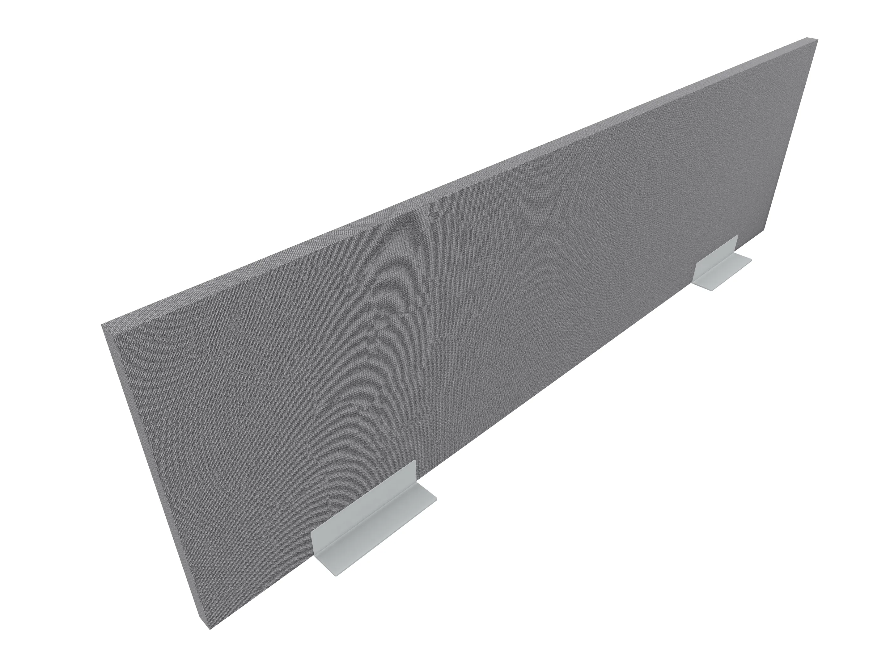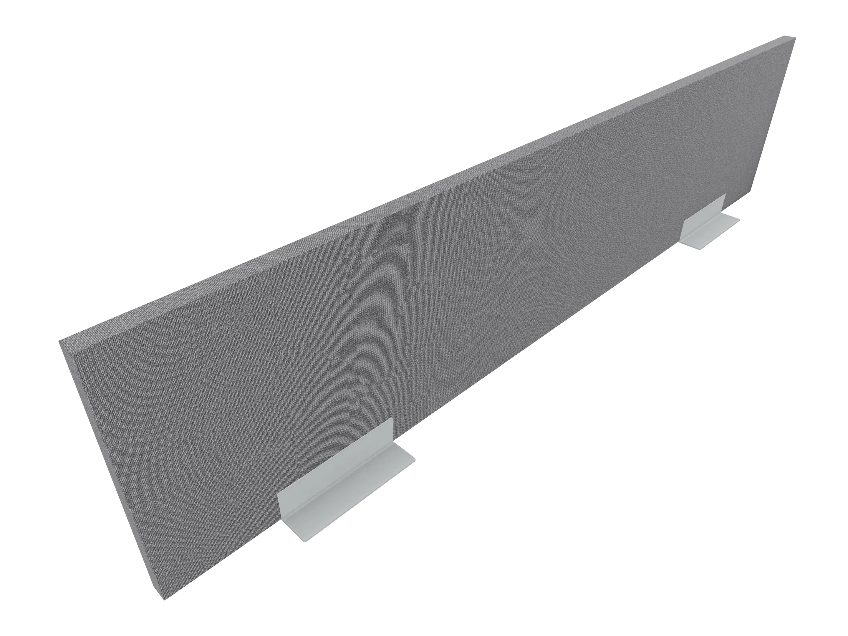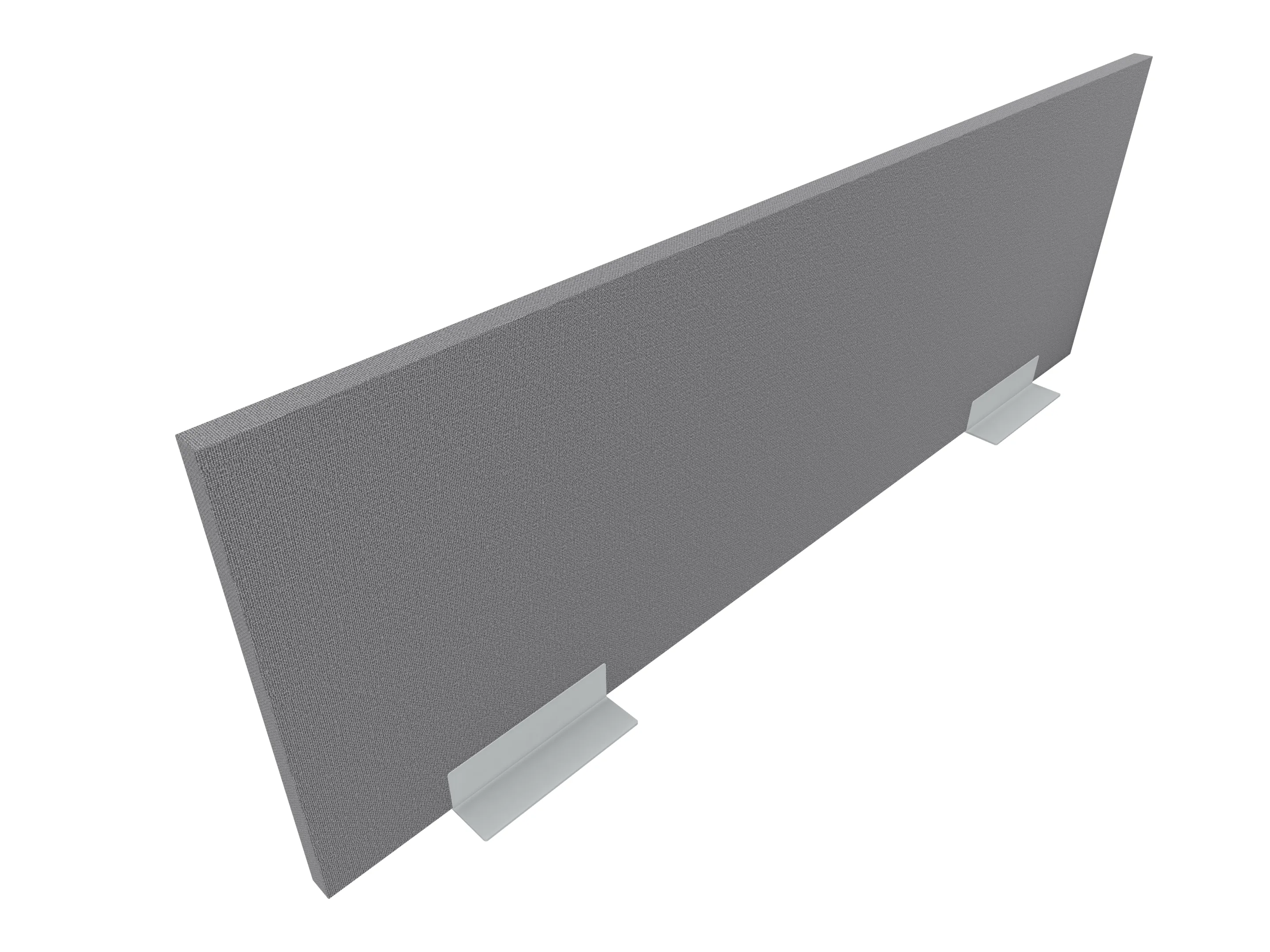 Akoestisch paneel met ronde hoeken, volledig gestoffeerd, kanten voorzien van rubberen band. Afmeting: 1600 x 470 x 27mm (BxDxH)