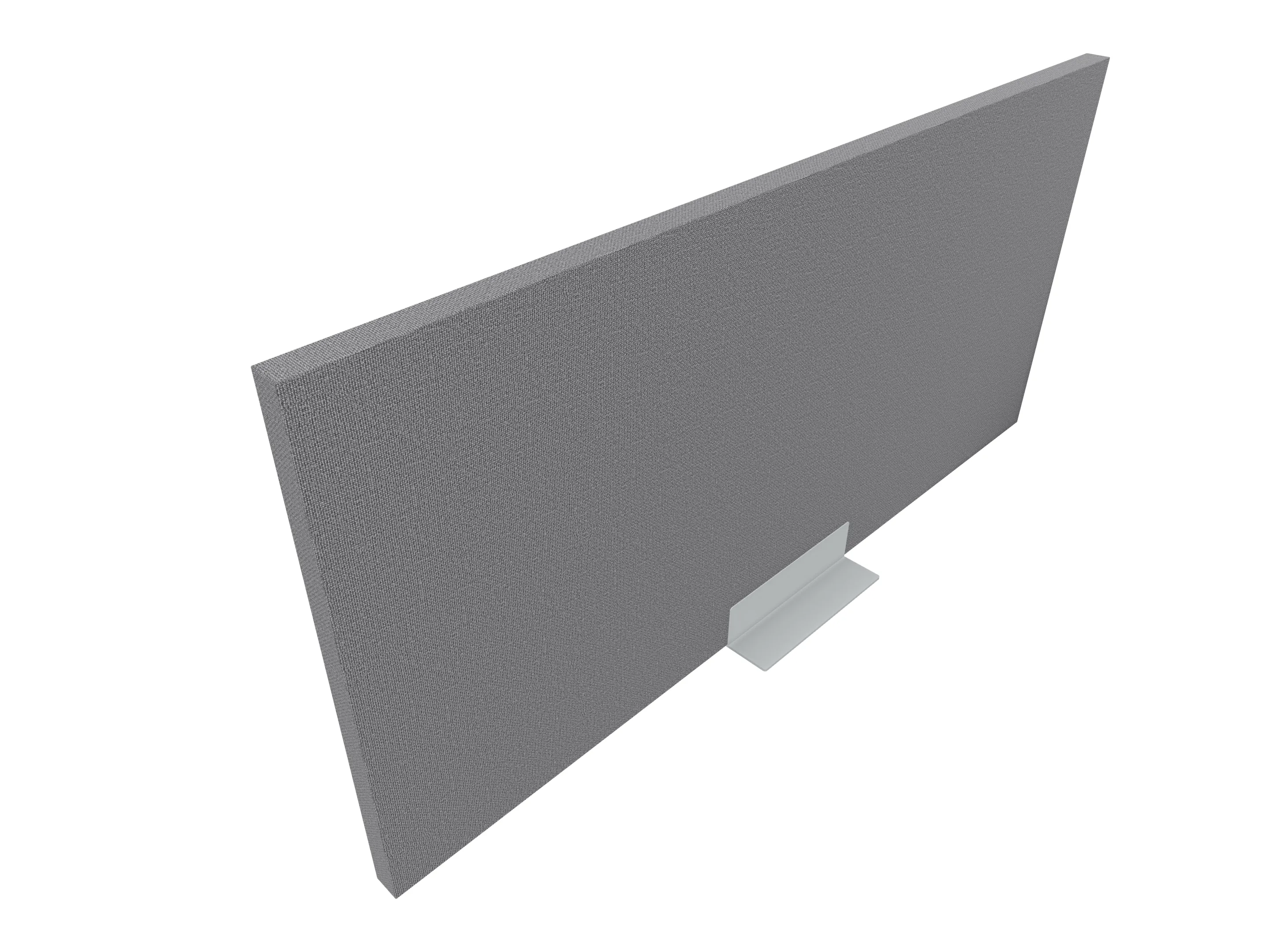Akoestisch paneel met ronde hoeken, volledig gestoffeerd, kanten voorzien van rubberen band. Afmeting: 1600 x 570 x 27mm (BxDxH)