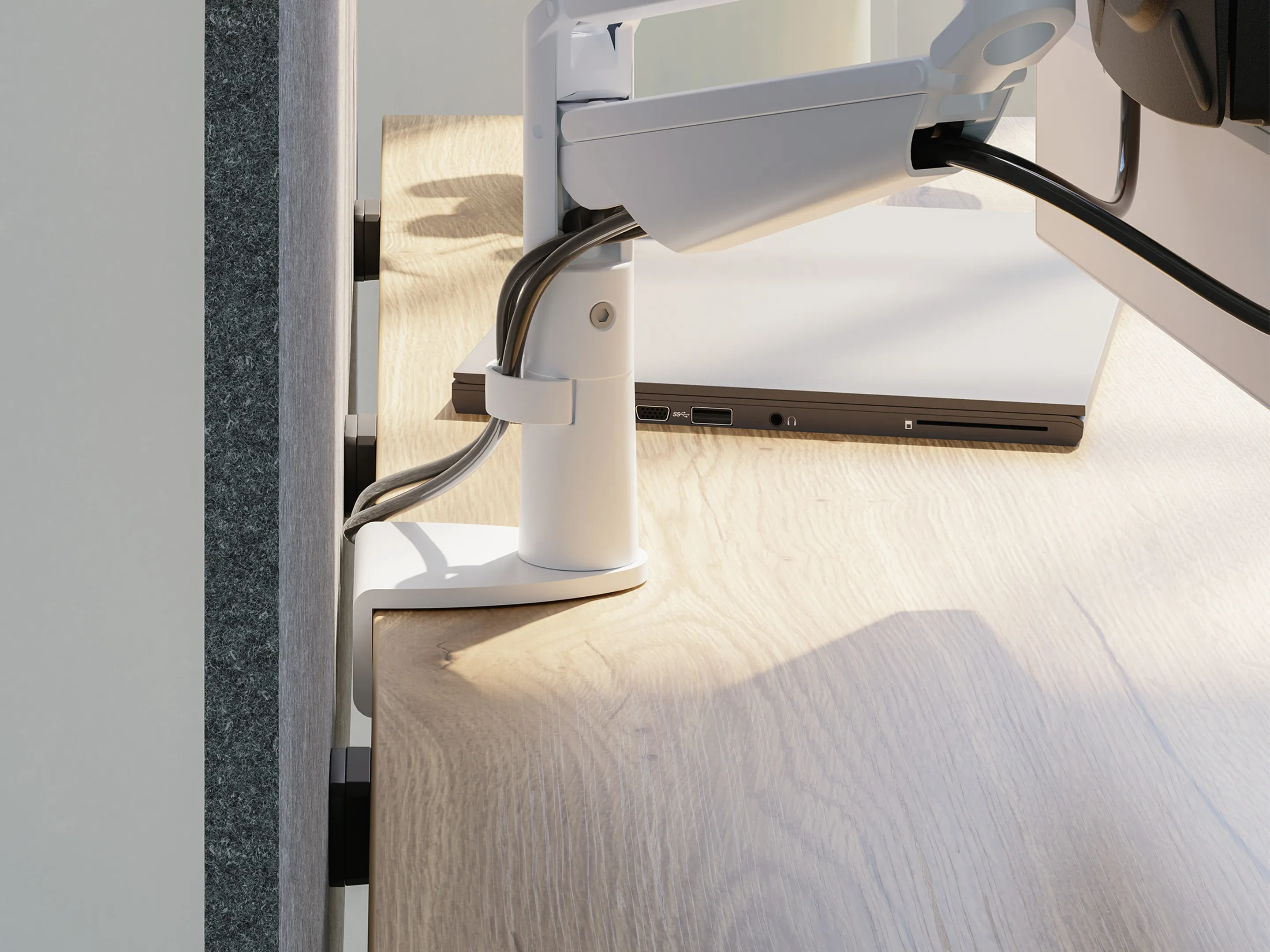 Complete screen inclusief bureaublad bevestiging. De wanden hebben overstek ten opzichte van de bladen (fly-over gemonteerd) van 157mm. Afmeting: 1000 x 500 x 12mm (BxDxH)