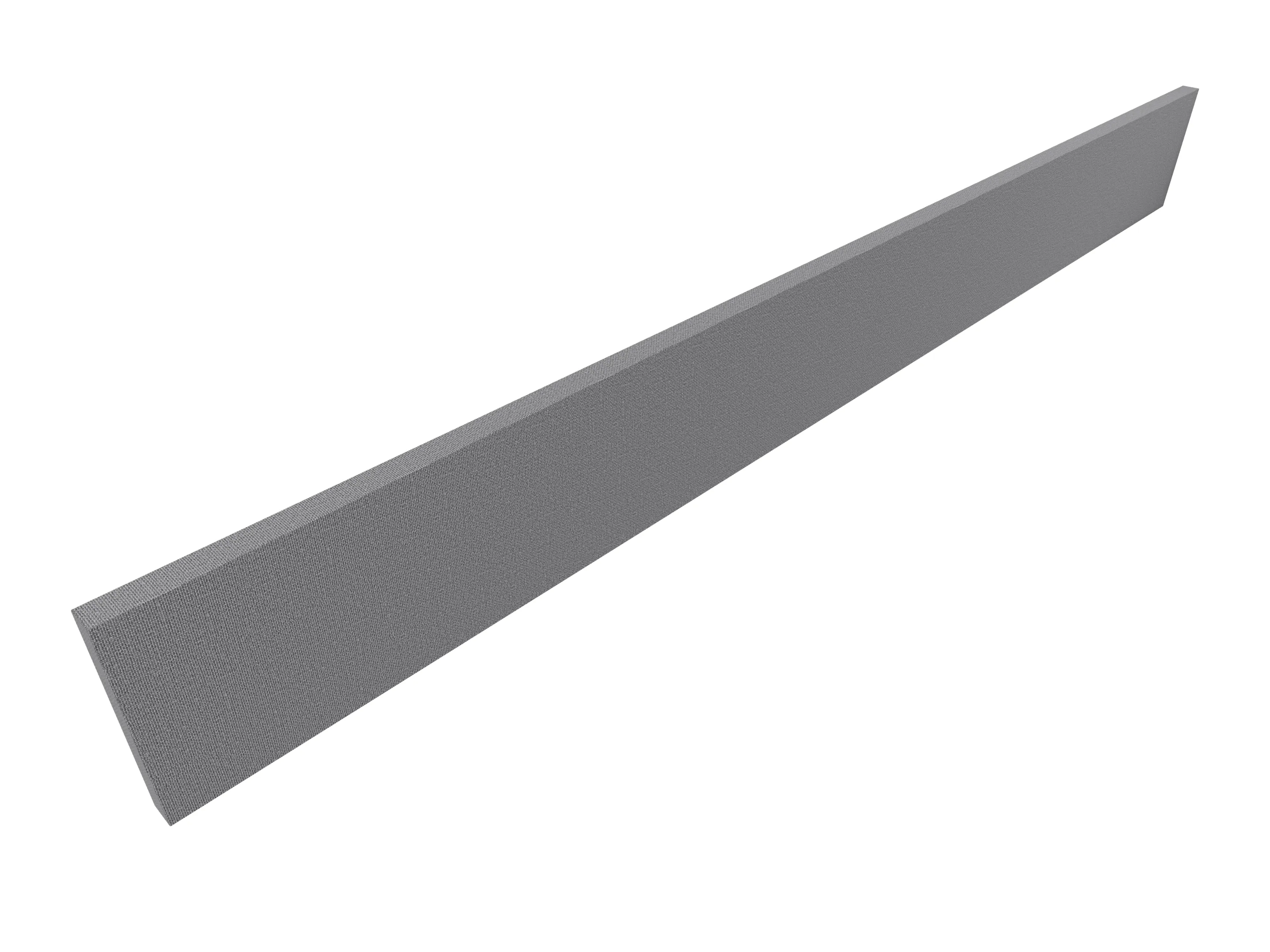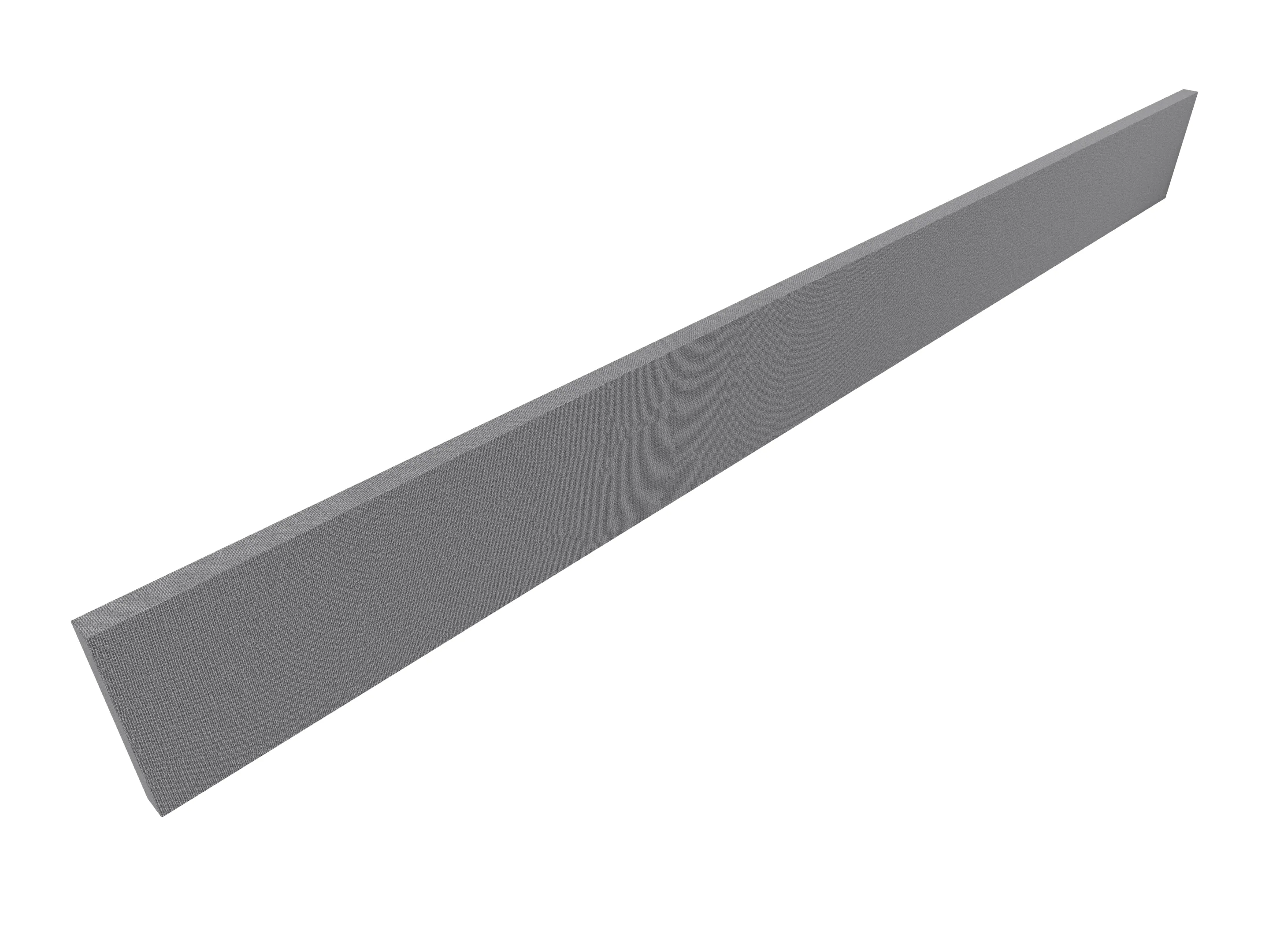 Eenzijdig en eenkleurig stof bespannen met voorgemonteerde muurbevestiging hoogteverstelling +/- 5 mm. Afmeting: 1800 x 200 x 27mm (BxDxH)