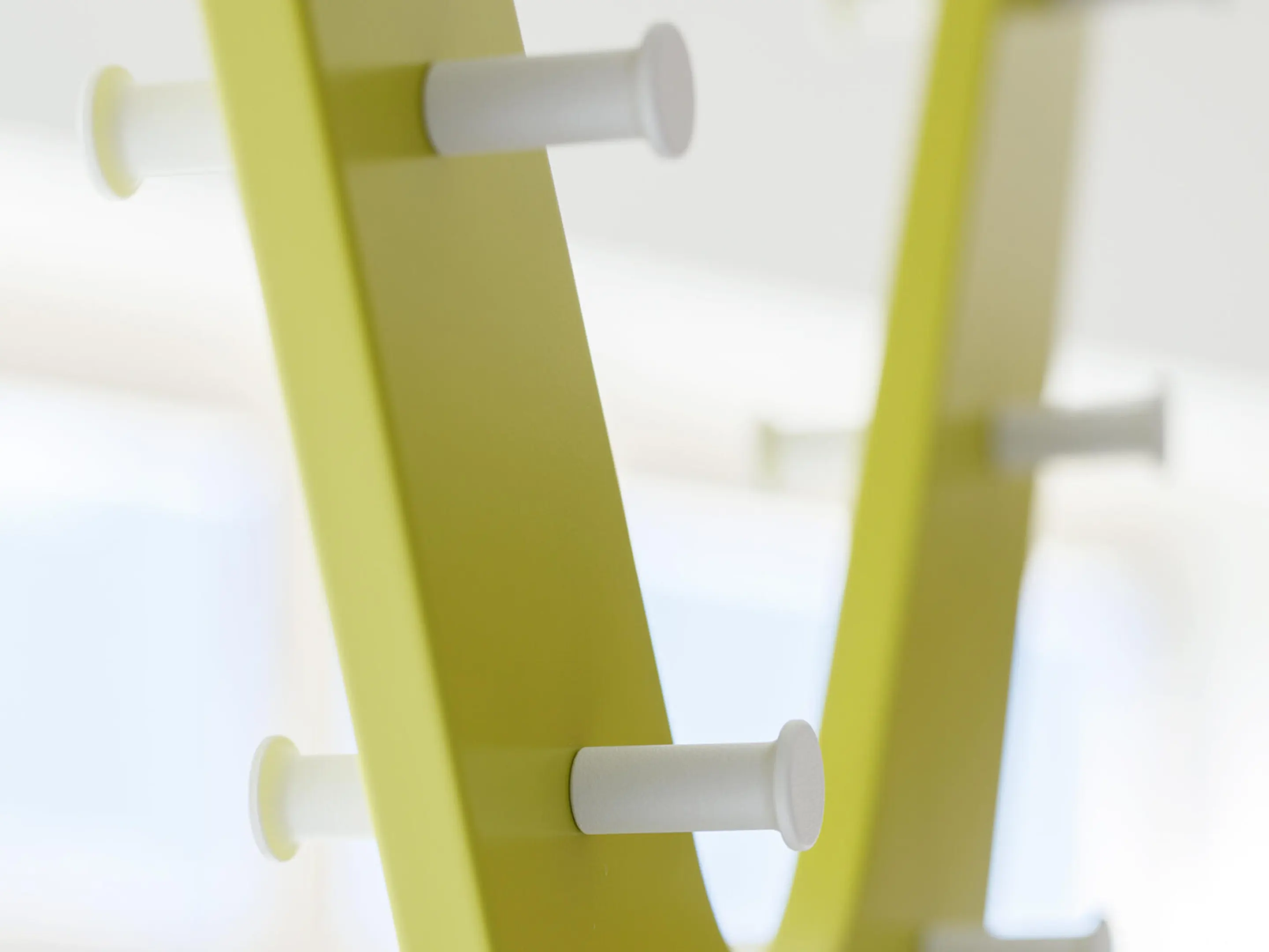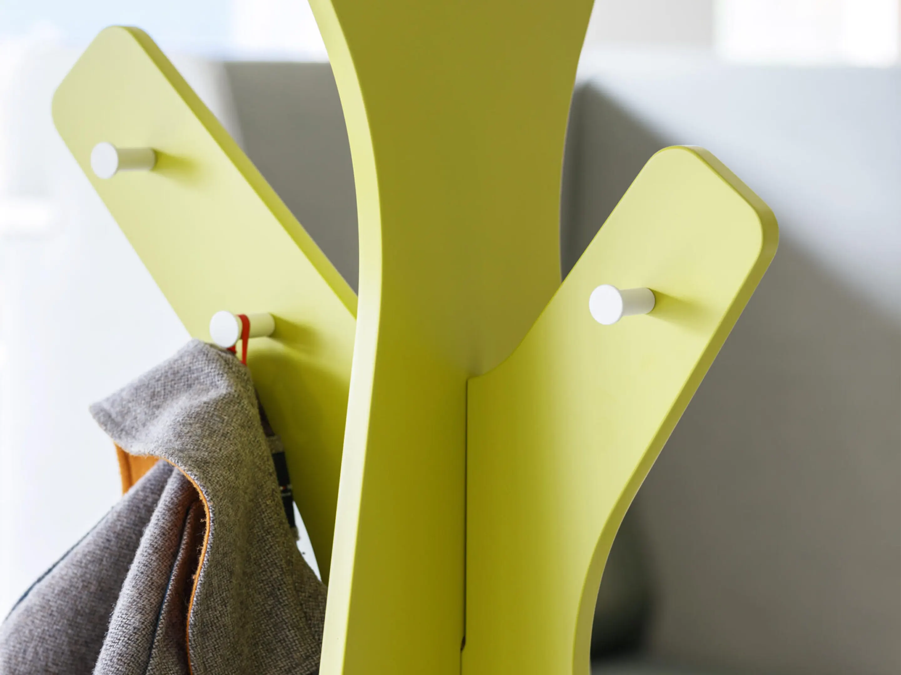 Staande kapstok uit MDF, met 16 jashaken. Afmeting: 620 x 530 x 1900mm (BxDxH)