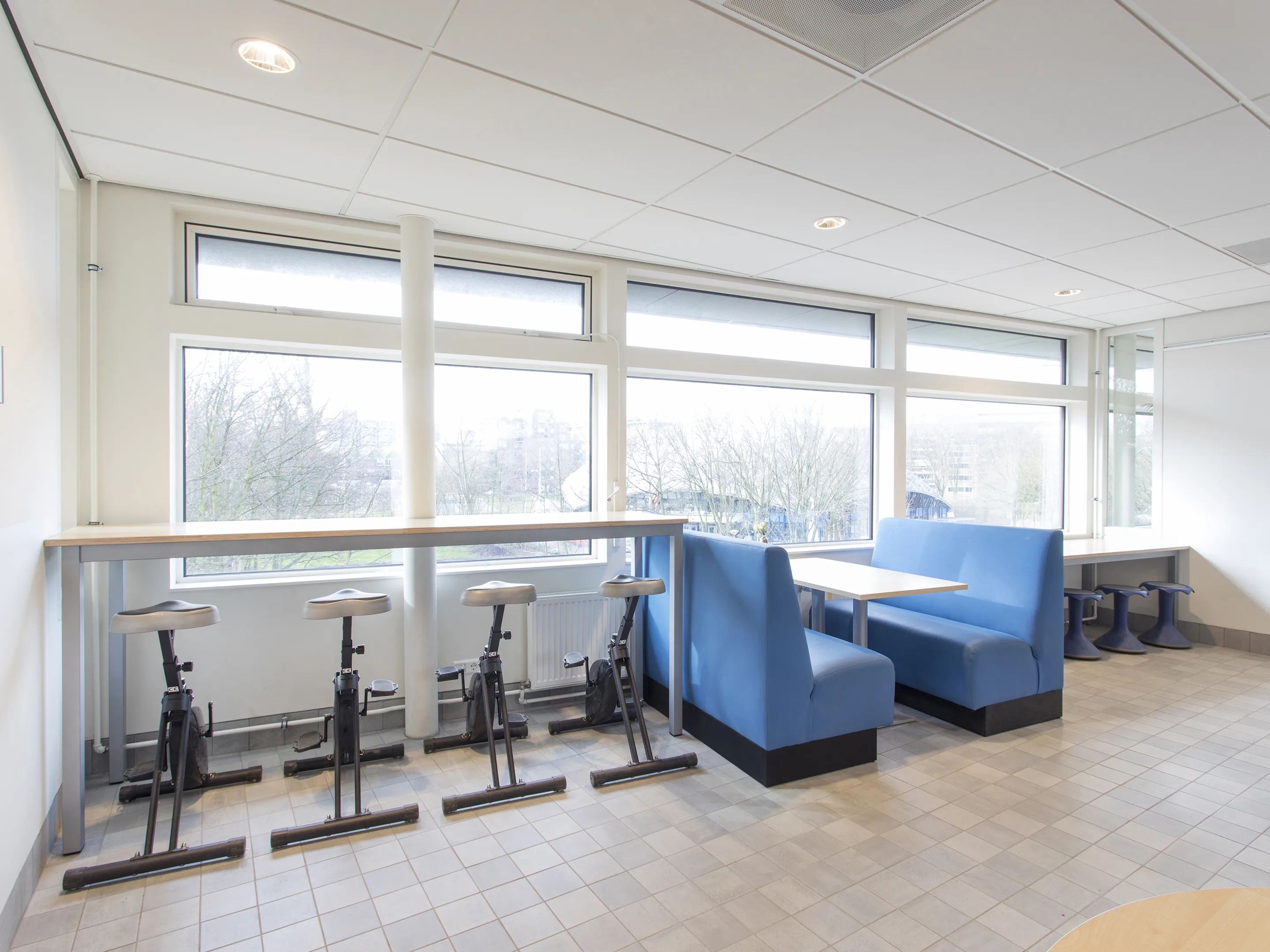 Treinbank met sokkel in afmeting : 1600 x 1400 x 720mm (BxHxD). Standaard zithoogte is 460mm.