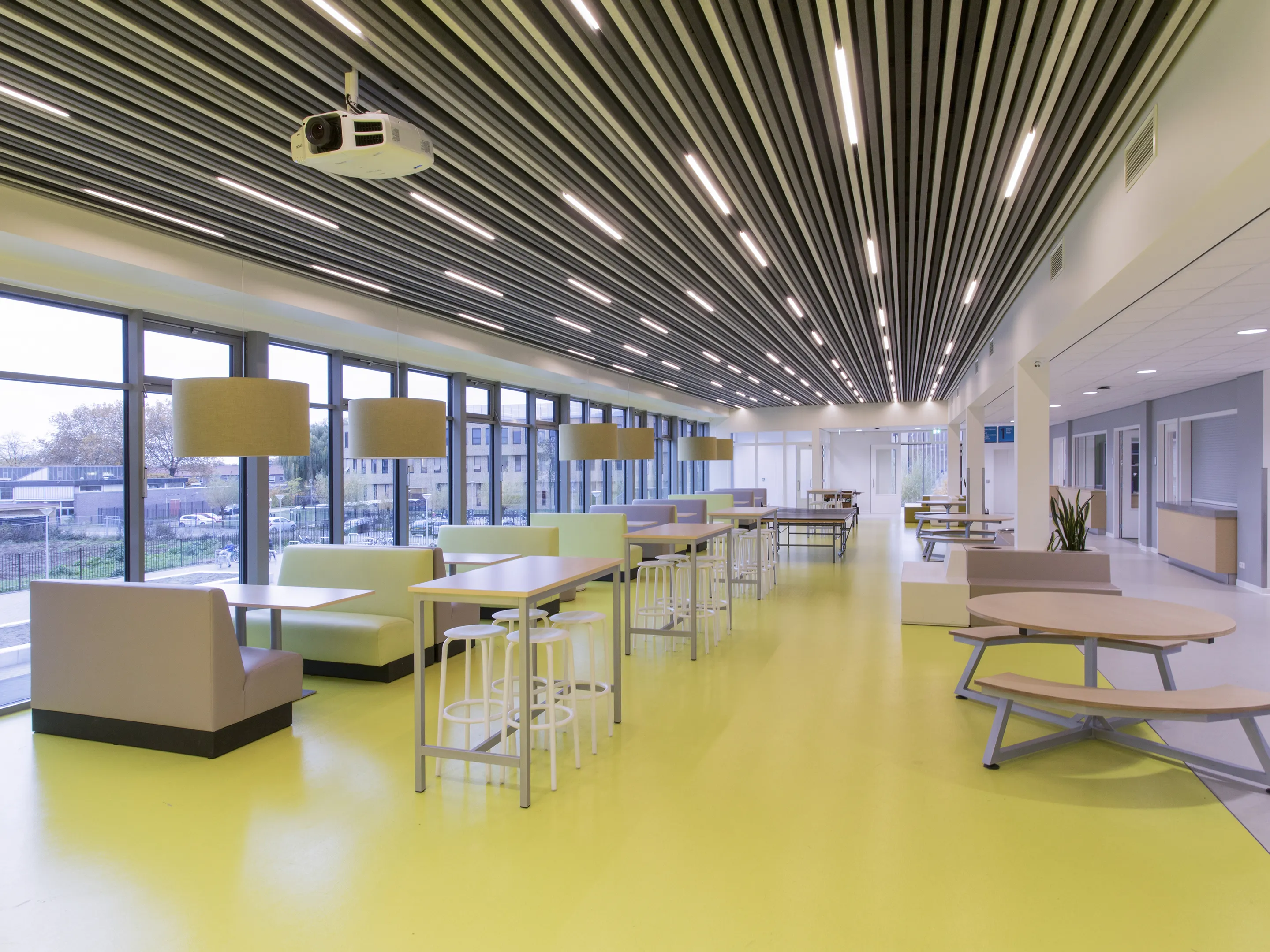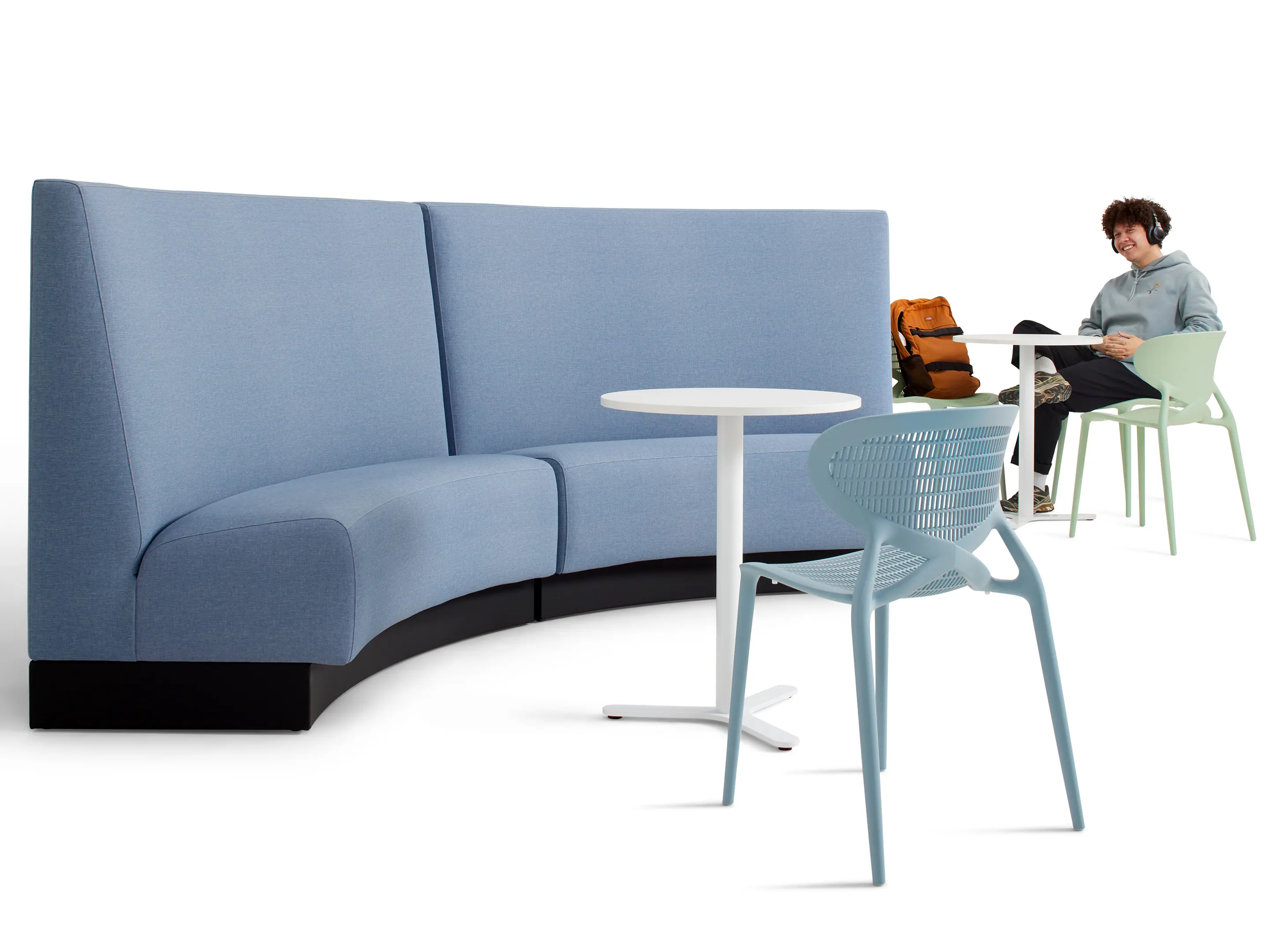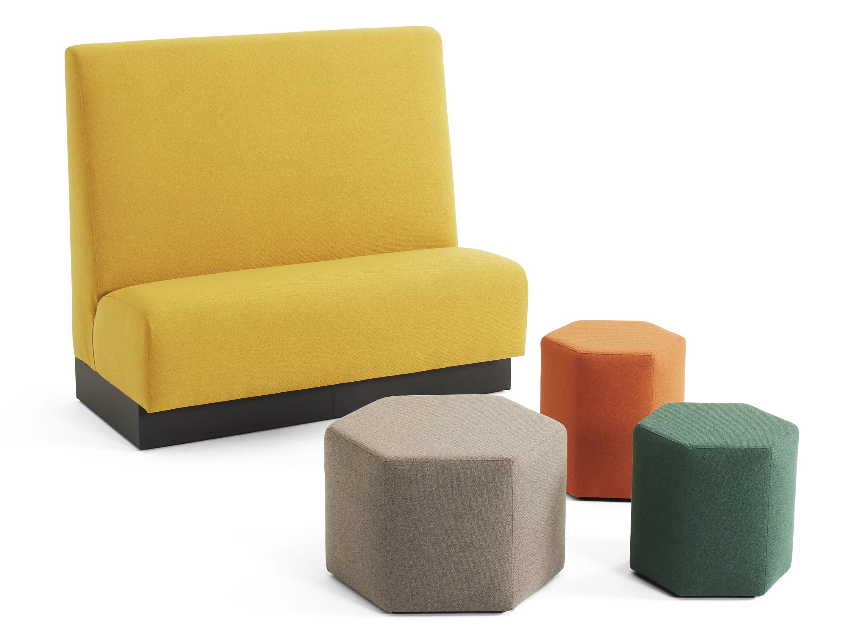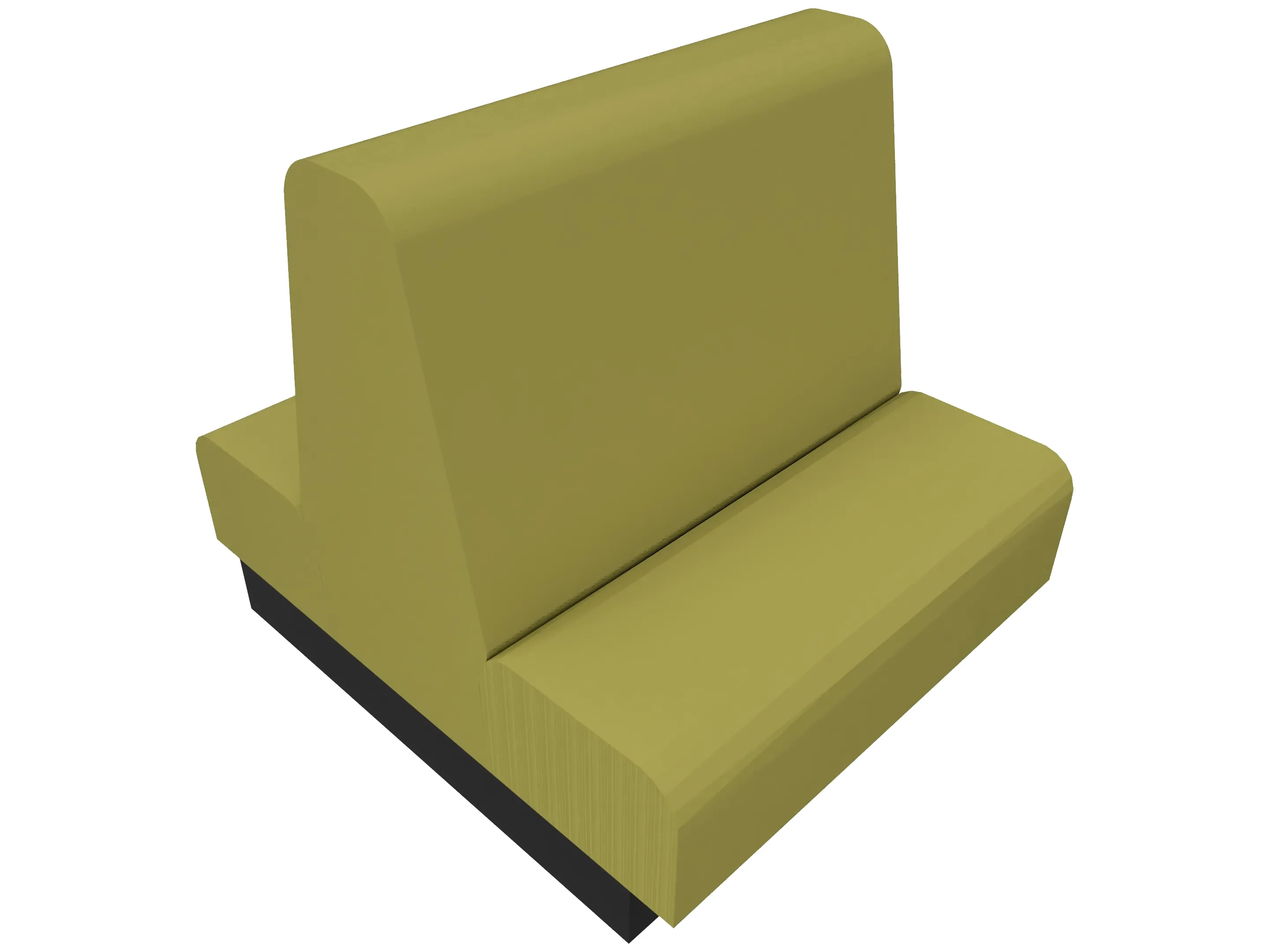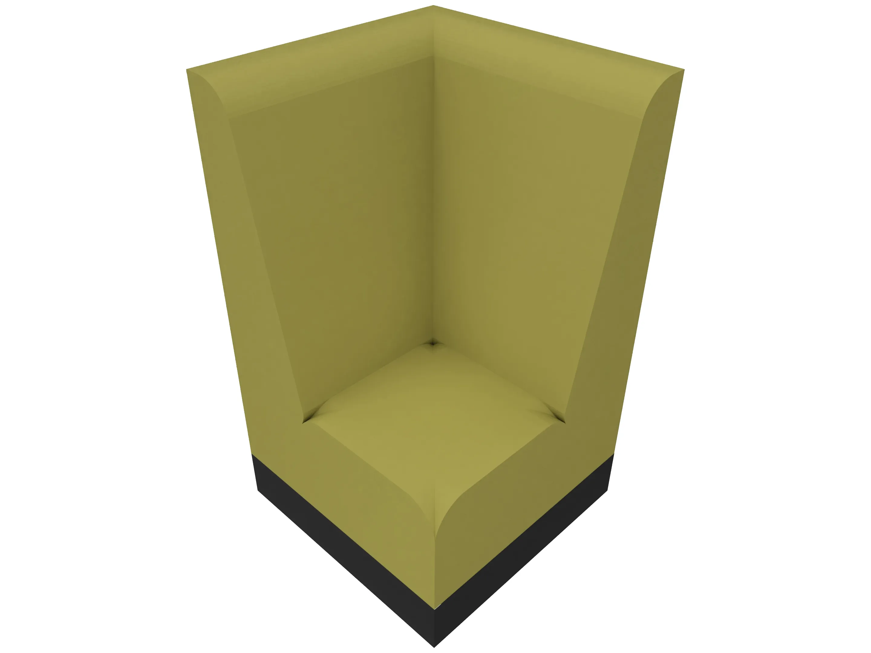 Treinbank met sokkel in een hoekuitvoering. Afmeting: 720 x 1400 x 720mm (BxHxD). Standaard zithoogte is 460mm.