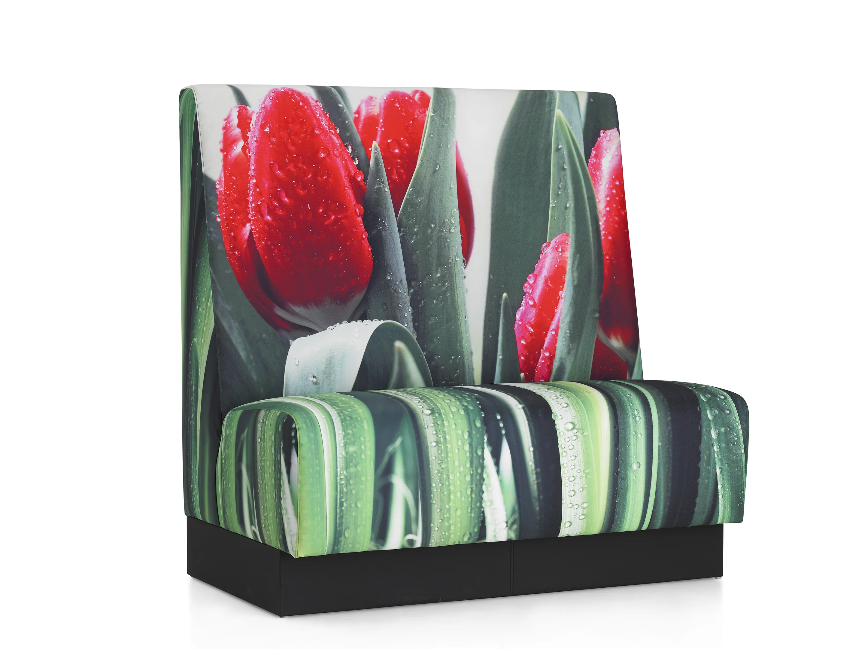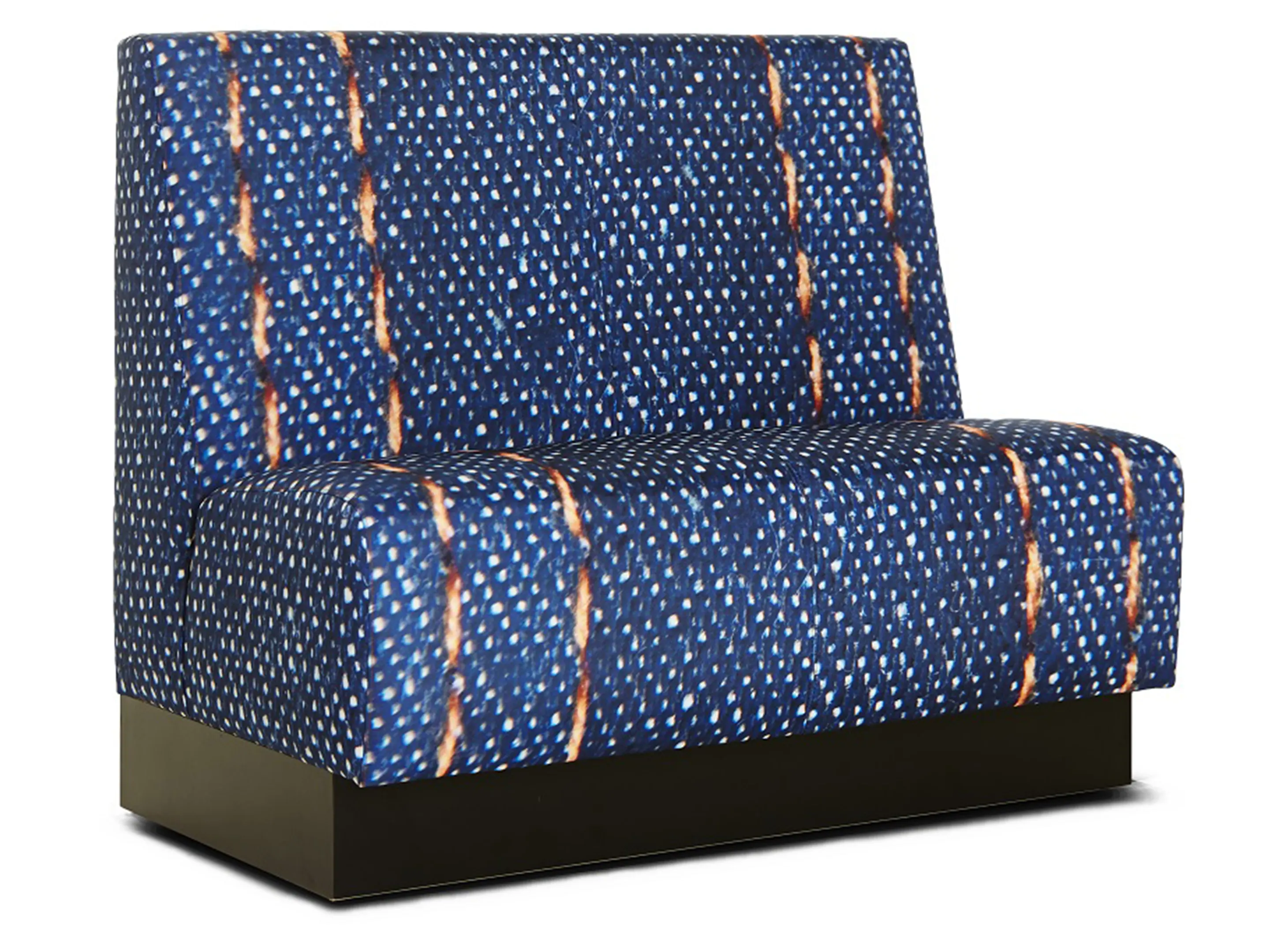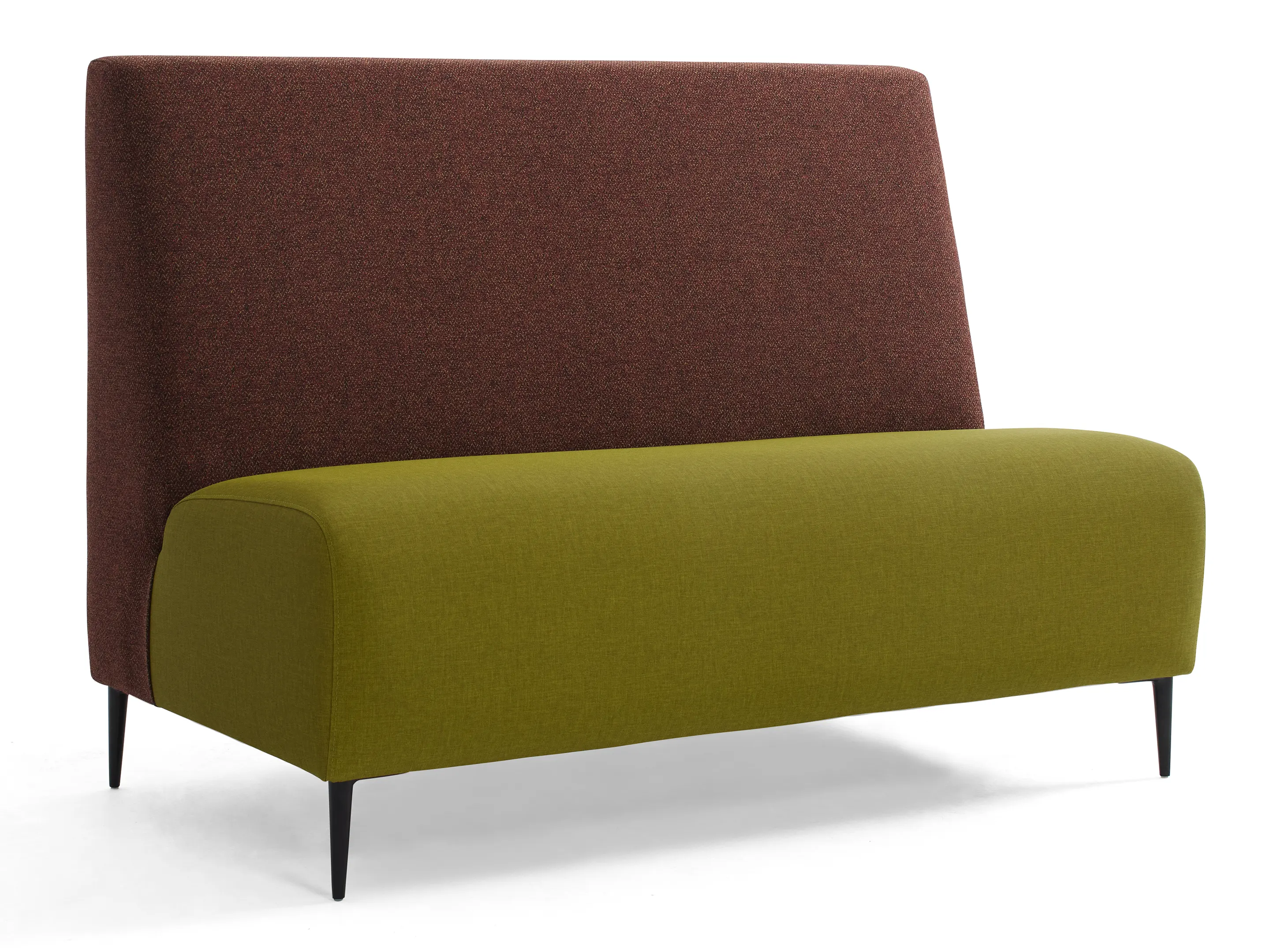 Treinbank in dubbele rug-aan-rug uitvoering met sokkel in afmeting : breedtemaat is maatwerk, x 1200 x 1500mm (BxHxD). Standaard zithoogte is 460mm.