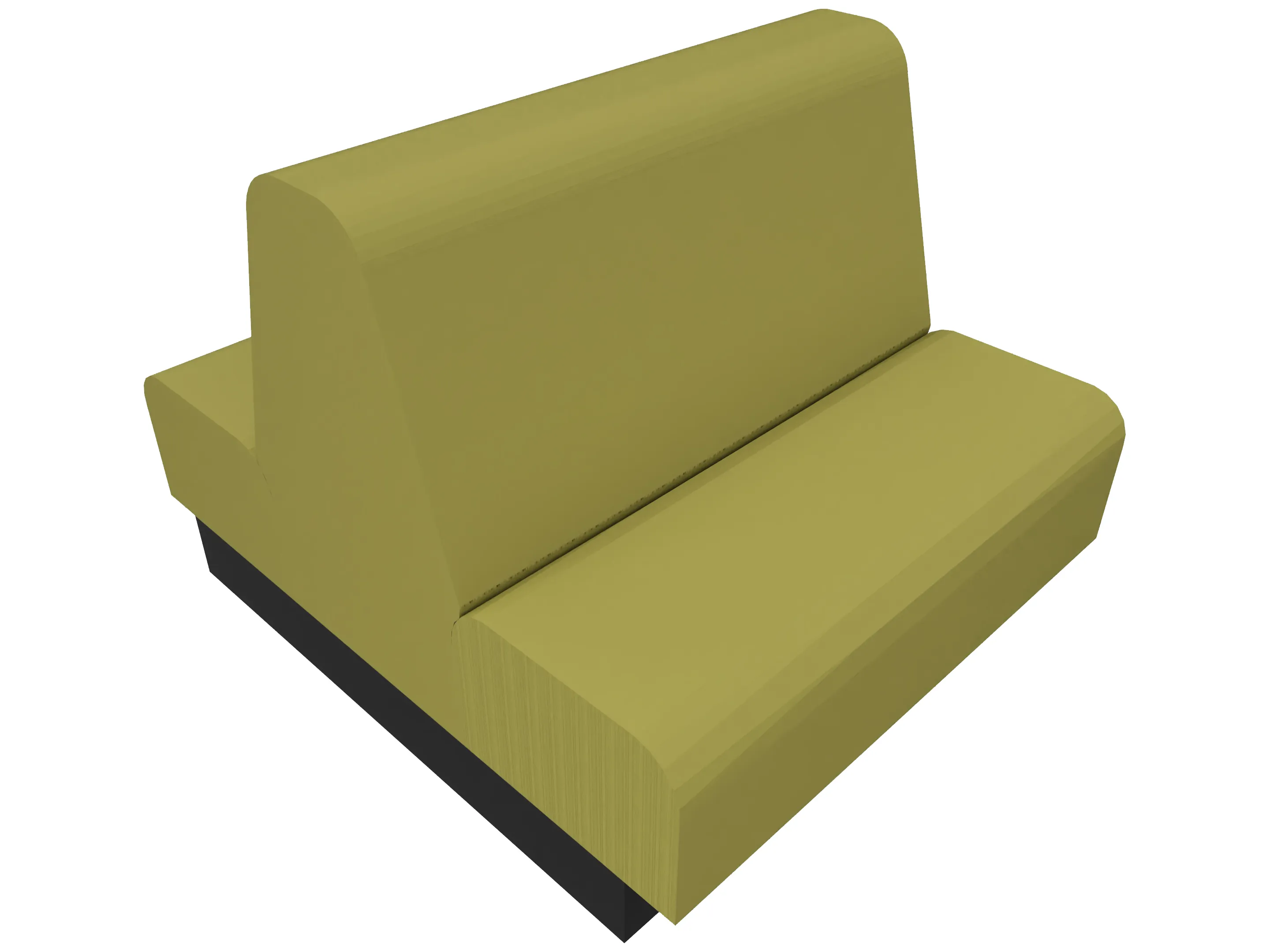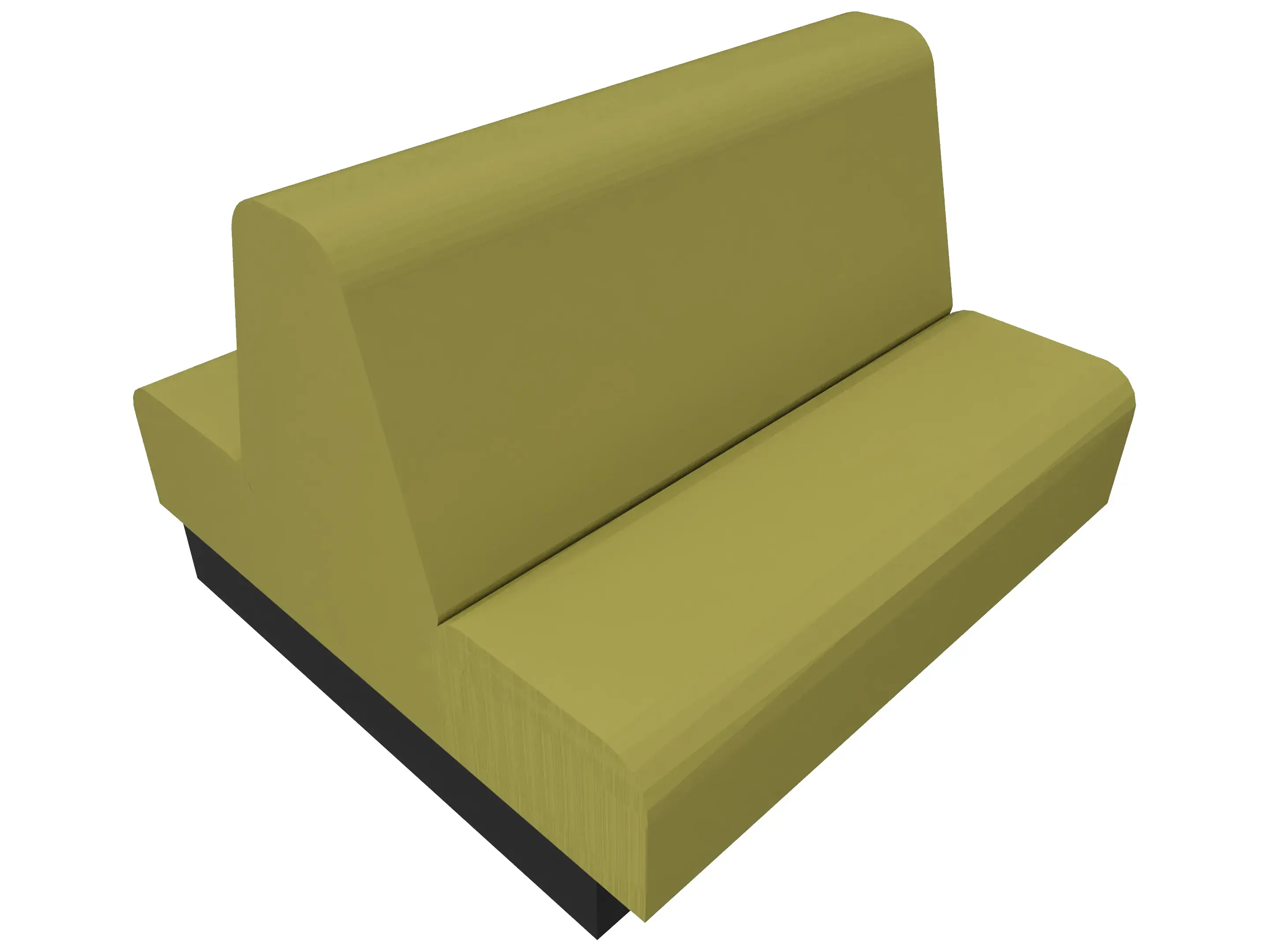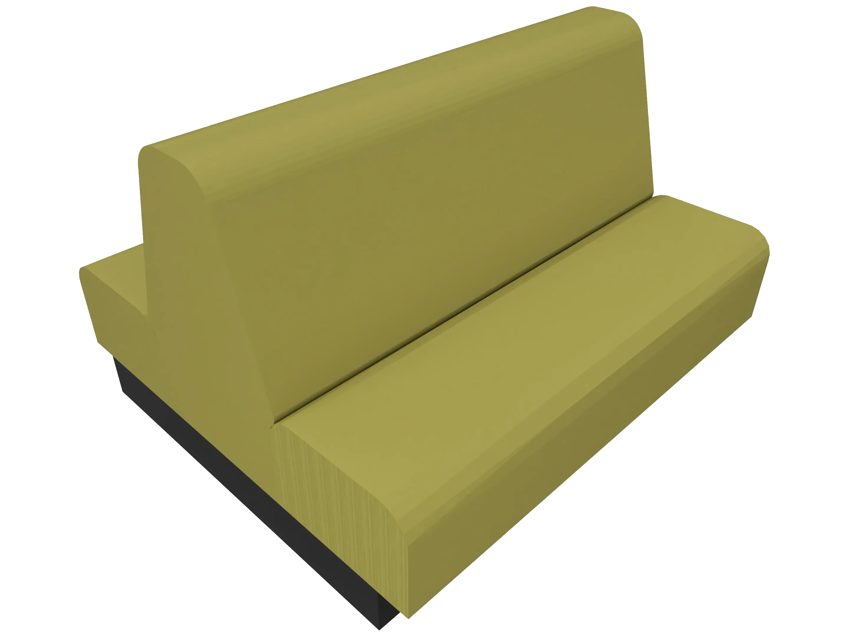 Treinbank in dubbele rug-aan-rug uitvoering met sokkel in afmeting : 1200 x 1000 x 1500mm (BxHxD). Standaard zithoogte is 460mm.