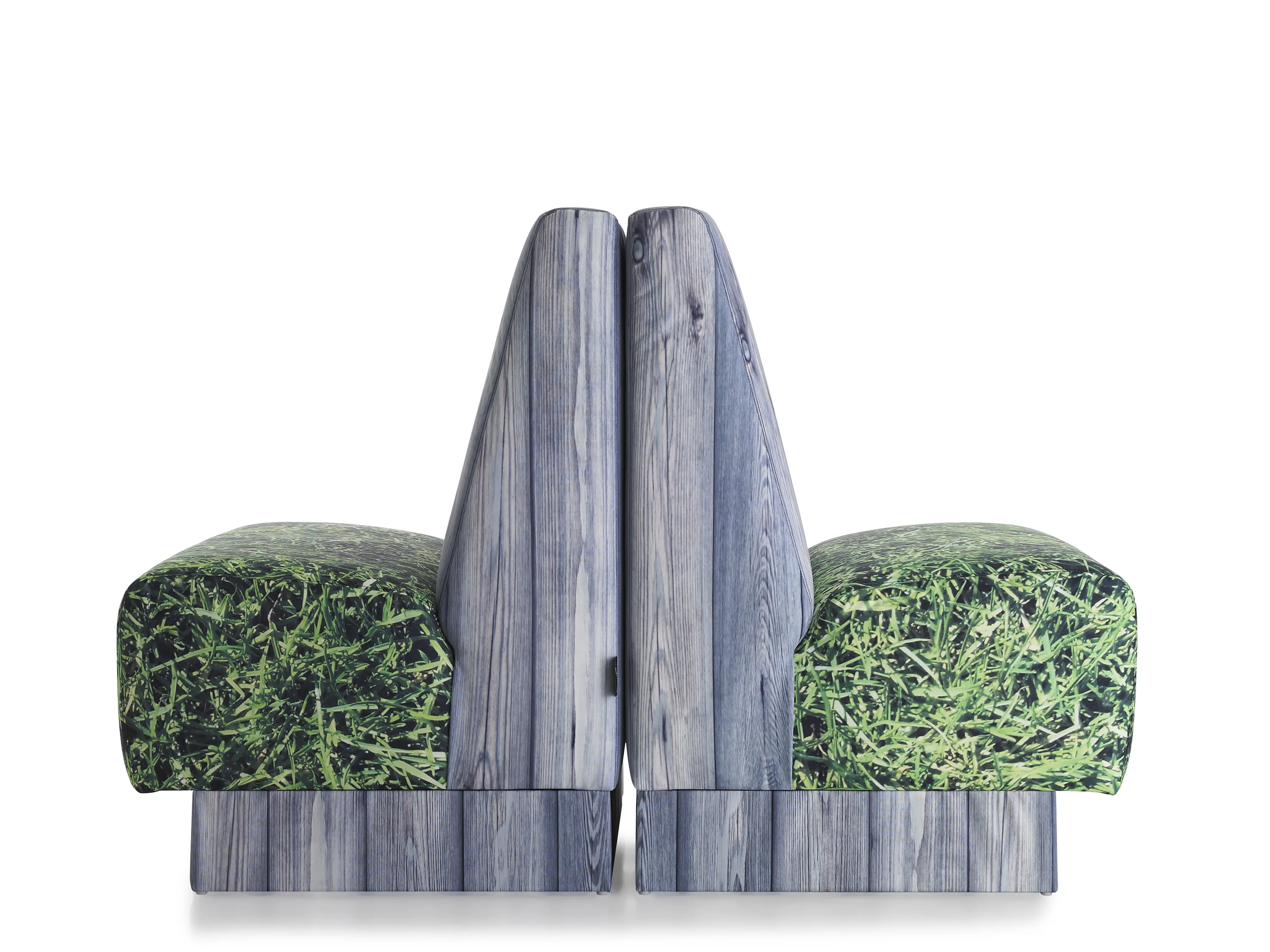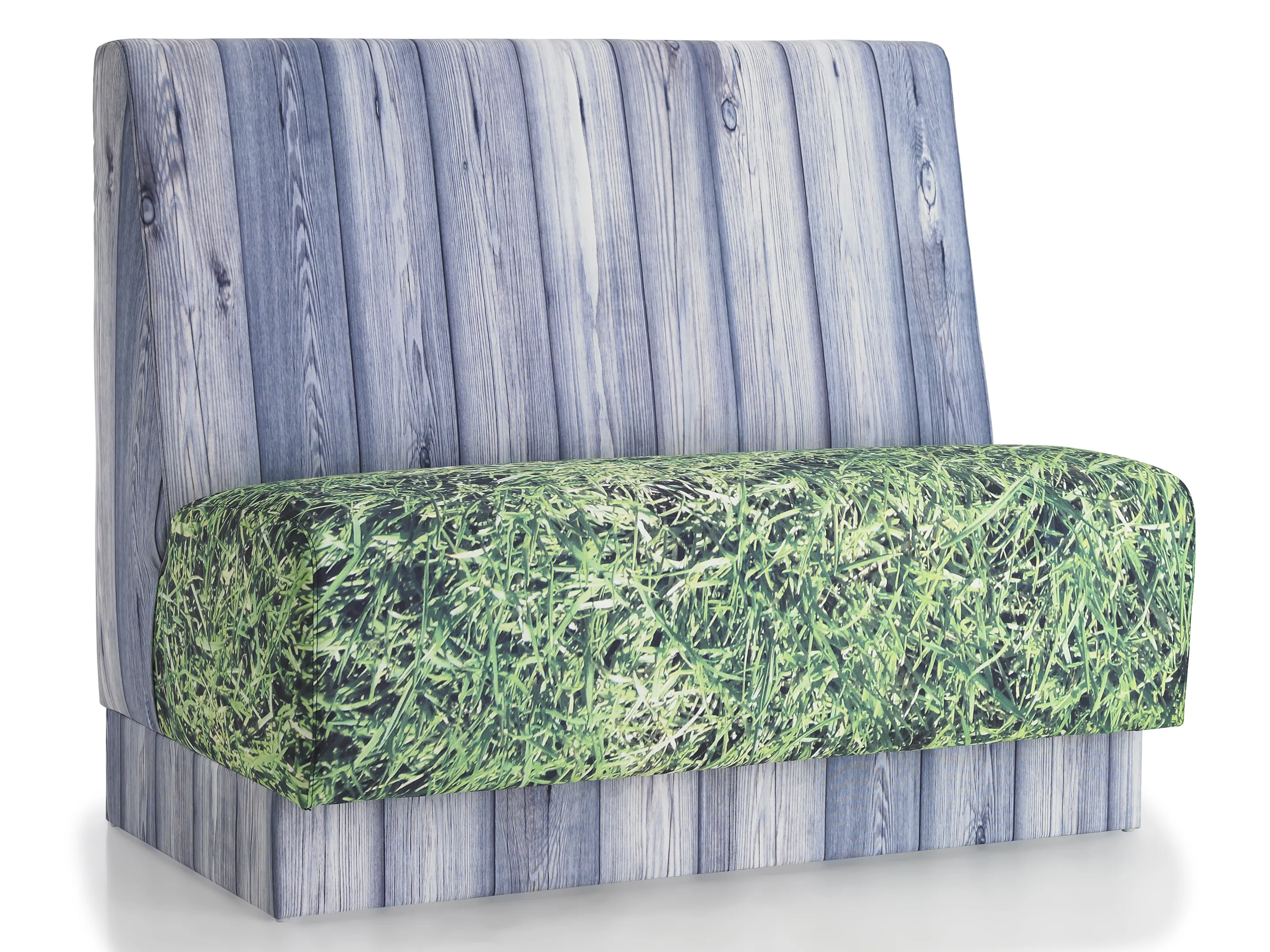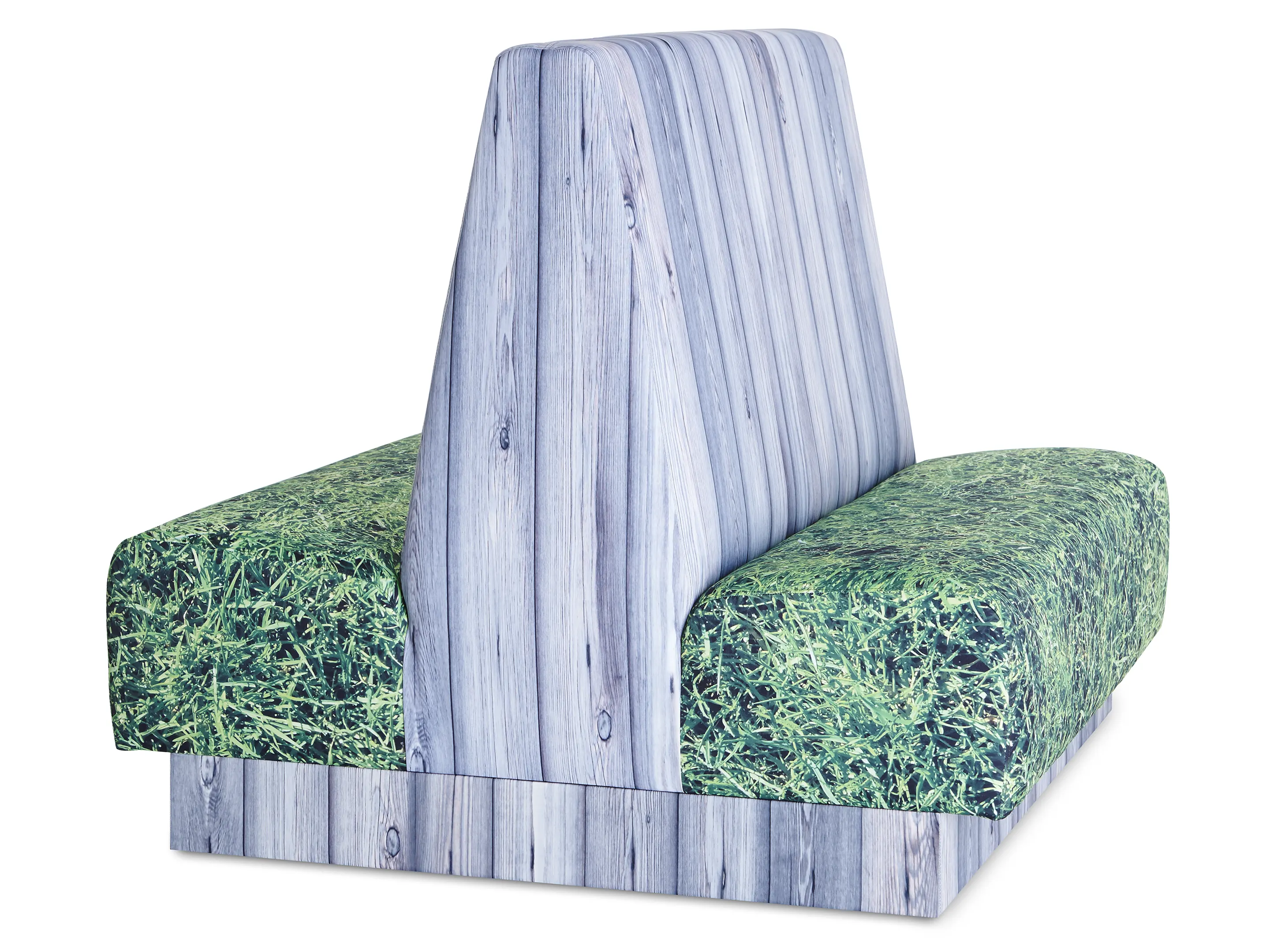 Treinbank in dubbele rug-aan-rug uitvoering met sokkel in afmeting : 1200 x 1000 x 1500mm (BxHxD). Standaard zithoogte is 460mm.