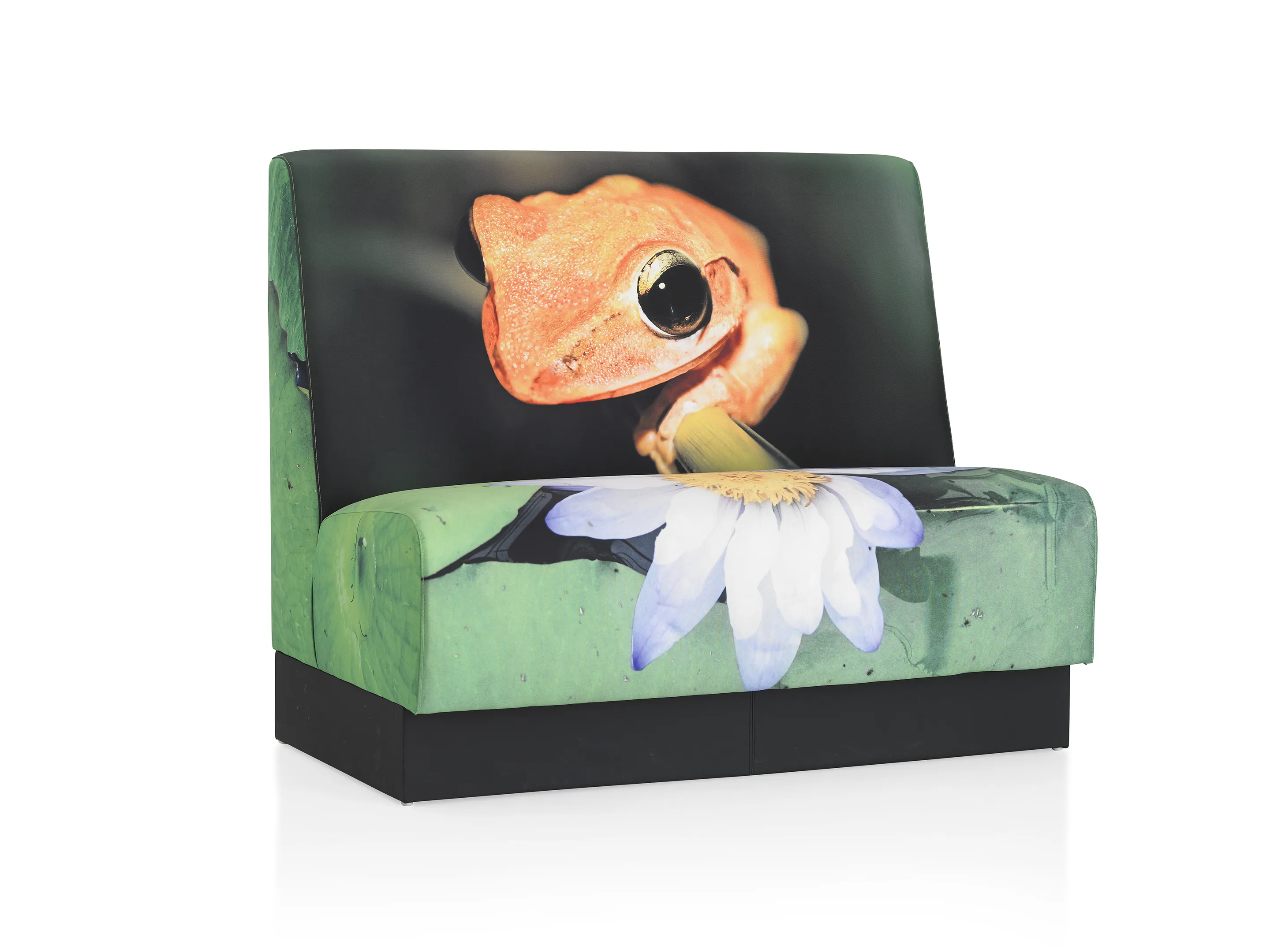 Treinbank in dubbele rug-aan-rug uitvoering met sokkel in afmeting : breedtemaat is maatwerk, x 1400 x 1500mm (BxHxD). Standaard zithoogte is 460mm.
