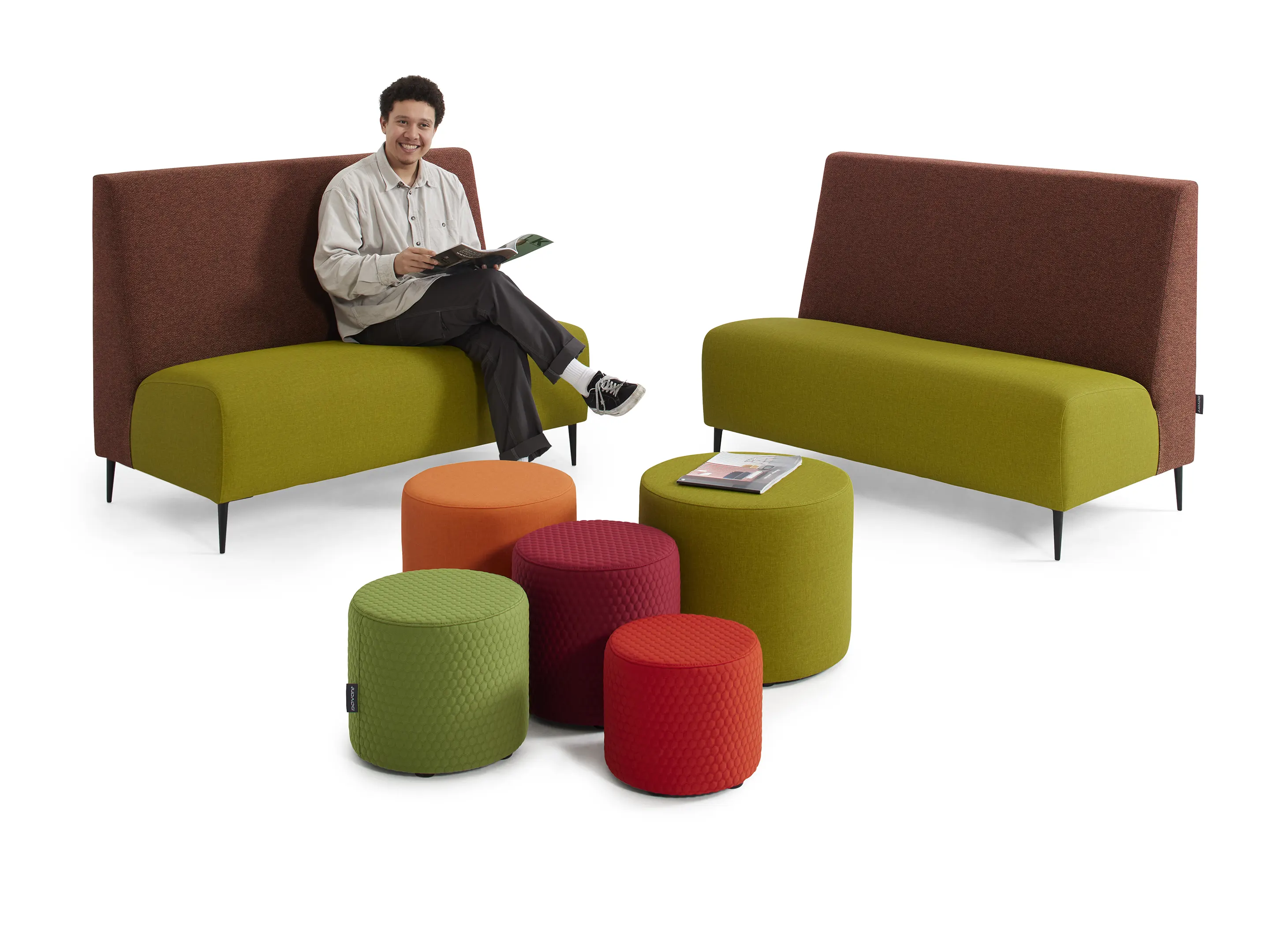 Treinbank in dubbele rug-aan-rug uitvoering met sokkel in afmeting : 1400 x 1000 x 1500mm (BxHxD). Standaard zithoogte is 460mm.