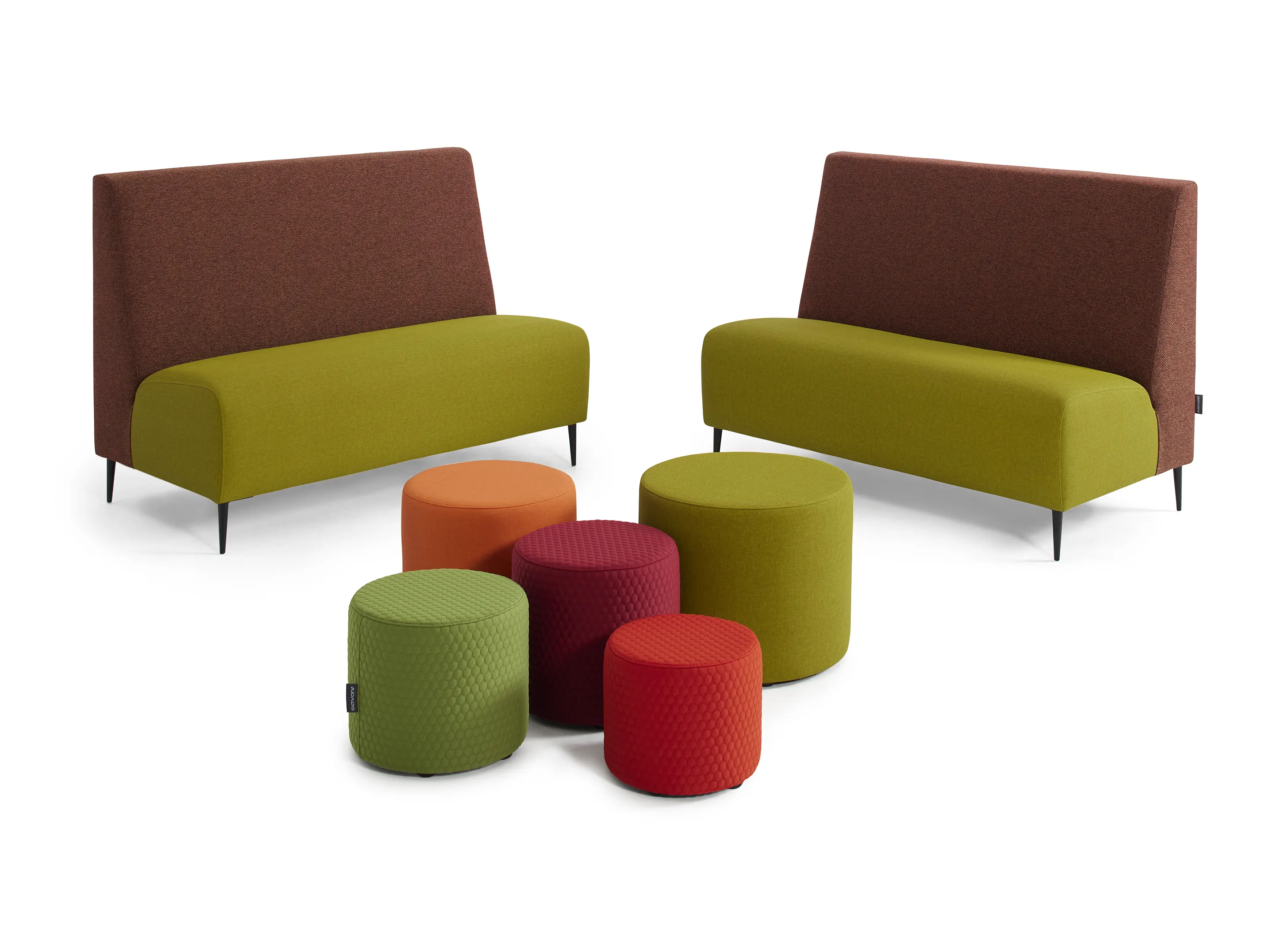 Treinbank in dubbele rug-aan-rug uitvoering met sokkel in afmeting : 1200 x 1200 x 1500mm (BxHxD). Standaard zithoogte is 460mm.