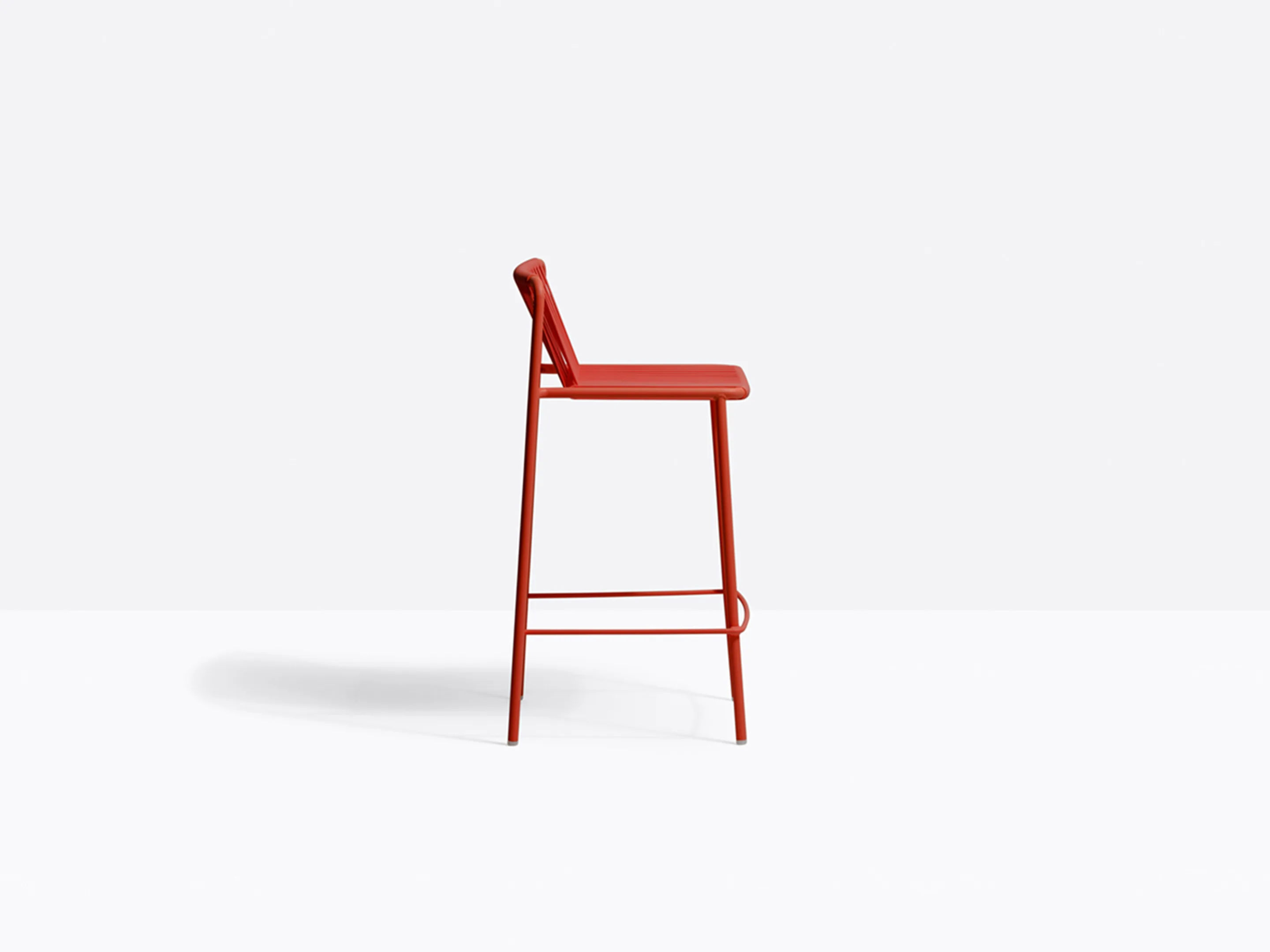 Frame uit staal, zitting en rug uit gespannen PVC draad.